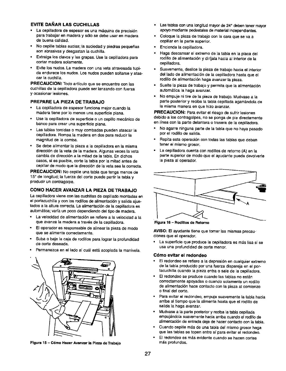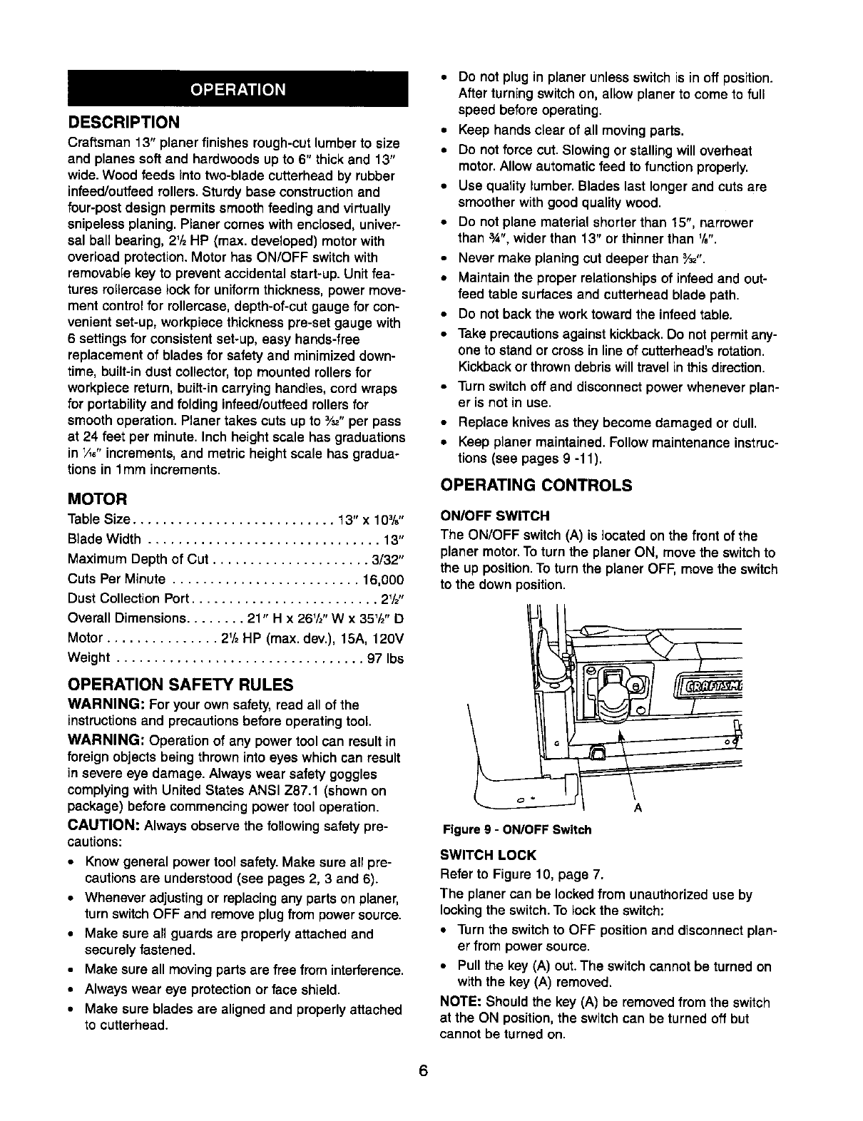 Craftsman 351217430 User Manual PLANER Manuals And Guides L0408455