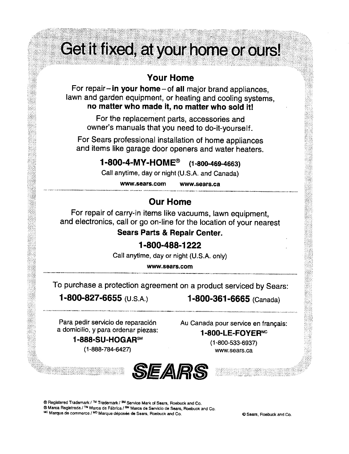 ® Marca Registrada /TMMarca de Fdbrica /s_ Marca de Servicio de Sears, Roebuck and Co.