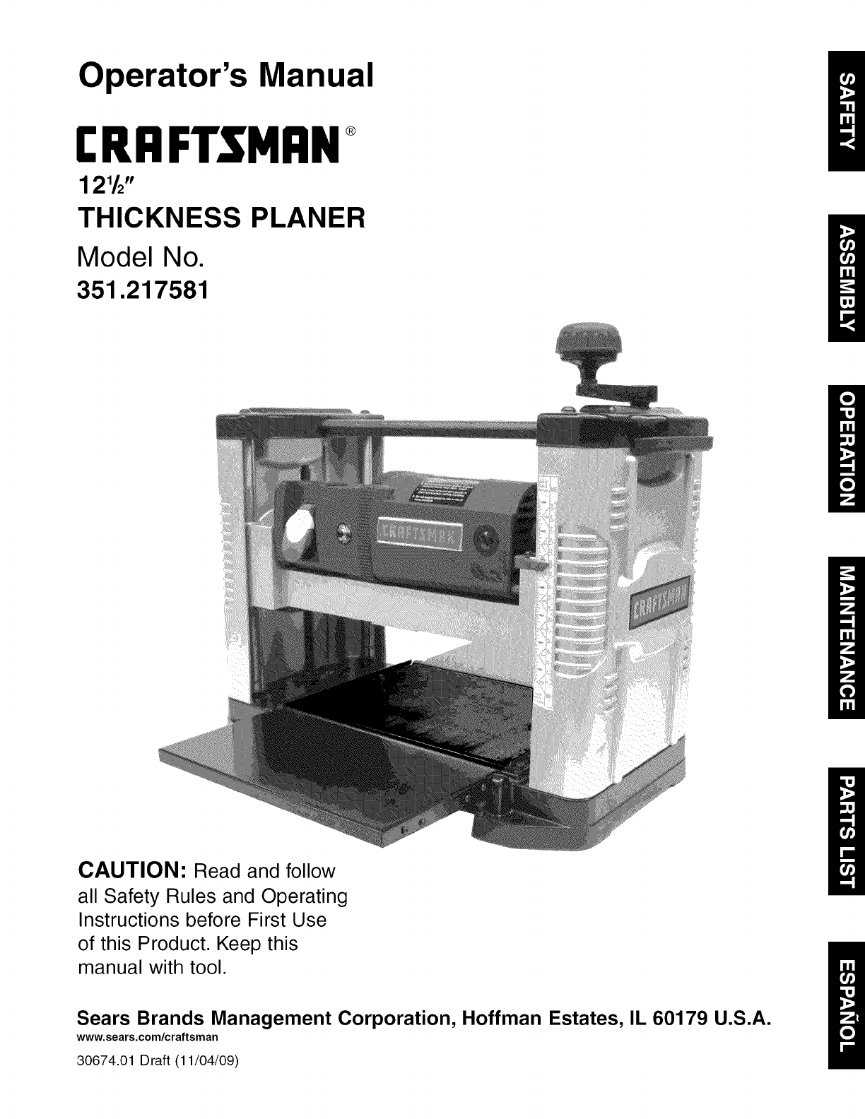 User Manual: Craftsman 351217581 351217581 CRAFTSMAN PLANER - Manuals and Guides View the owners manual for your CRAFTSMAN PLANER #351217581. Home:Tool Parts:Craftsman Parts:Craftsman PLANER Manual
