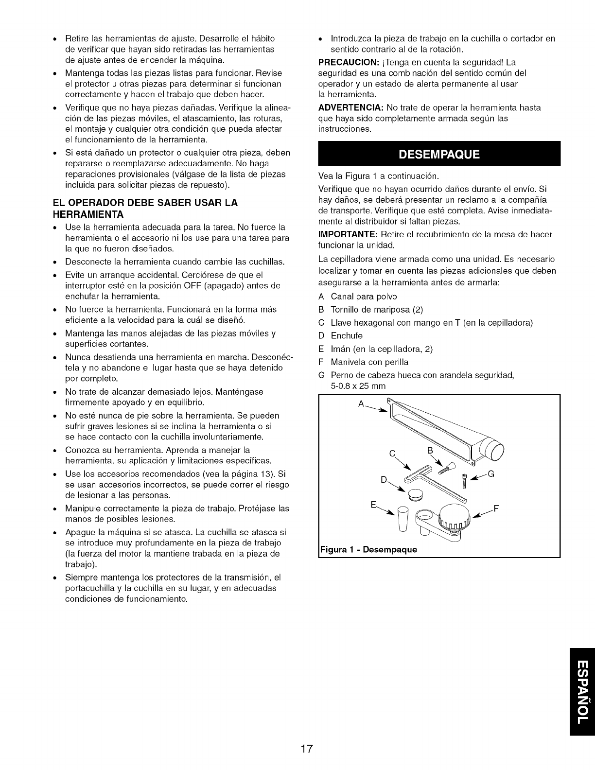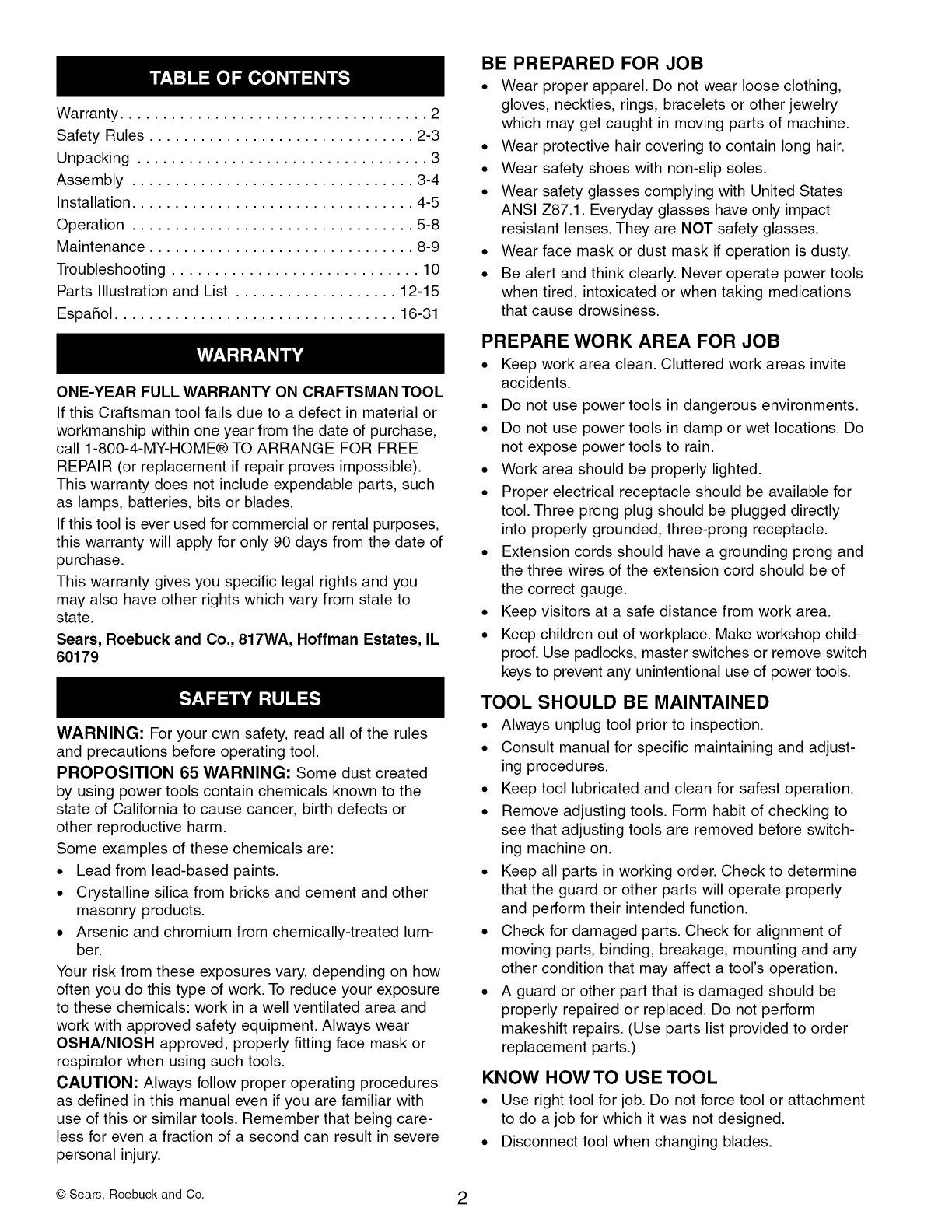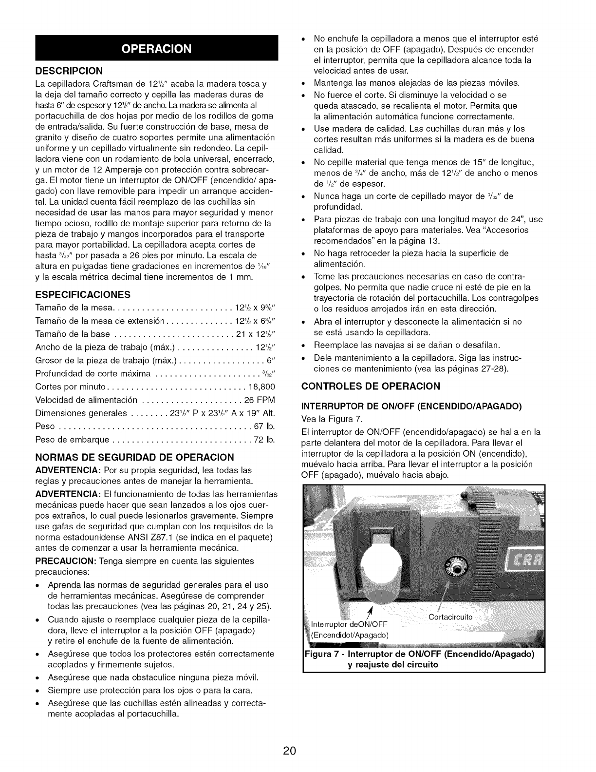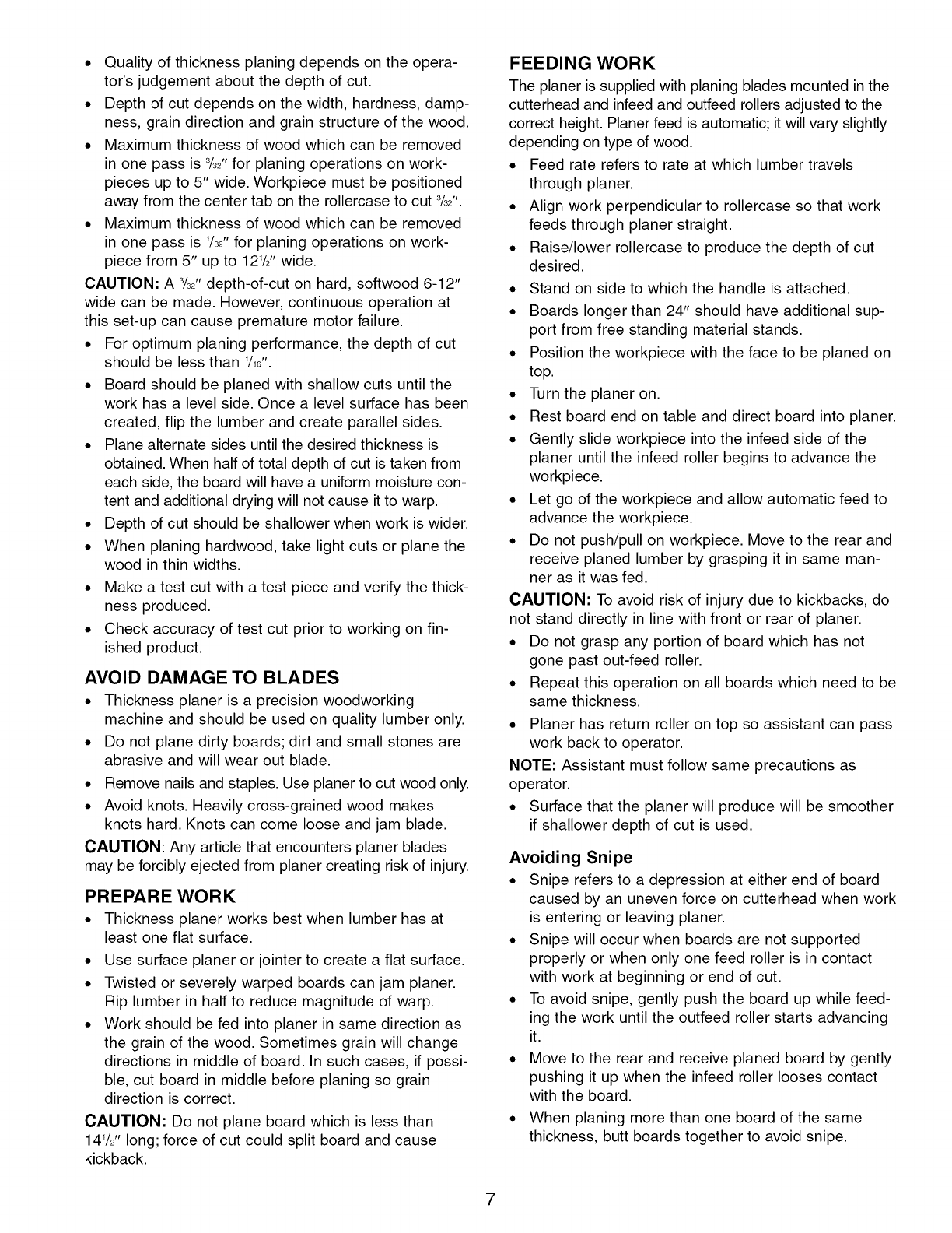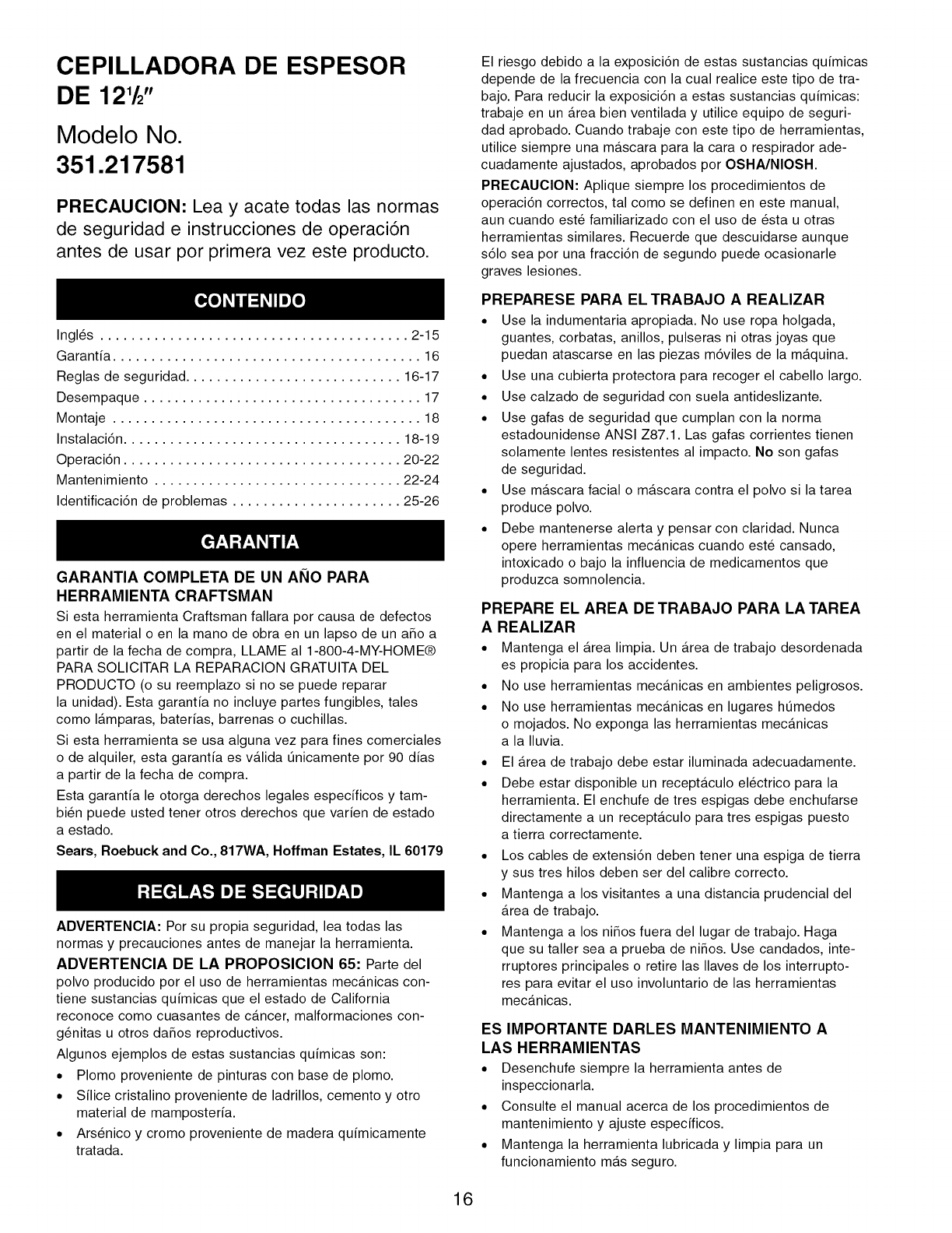 Craftsman 351217581 User Manual PLANER Manuals And Guides L1003048