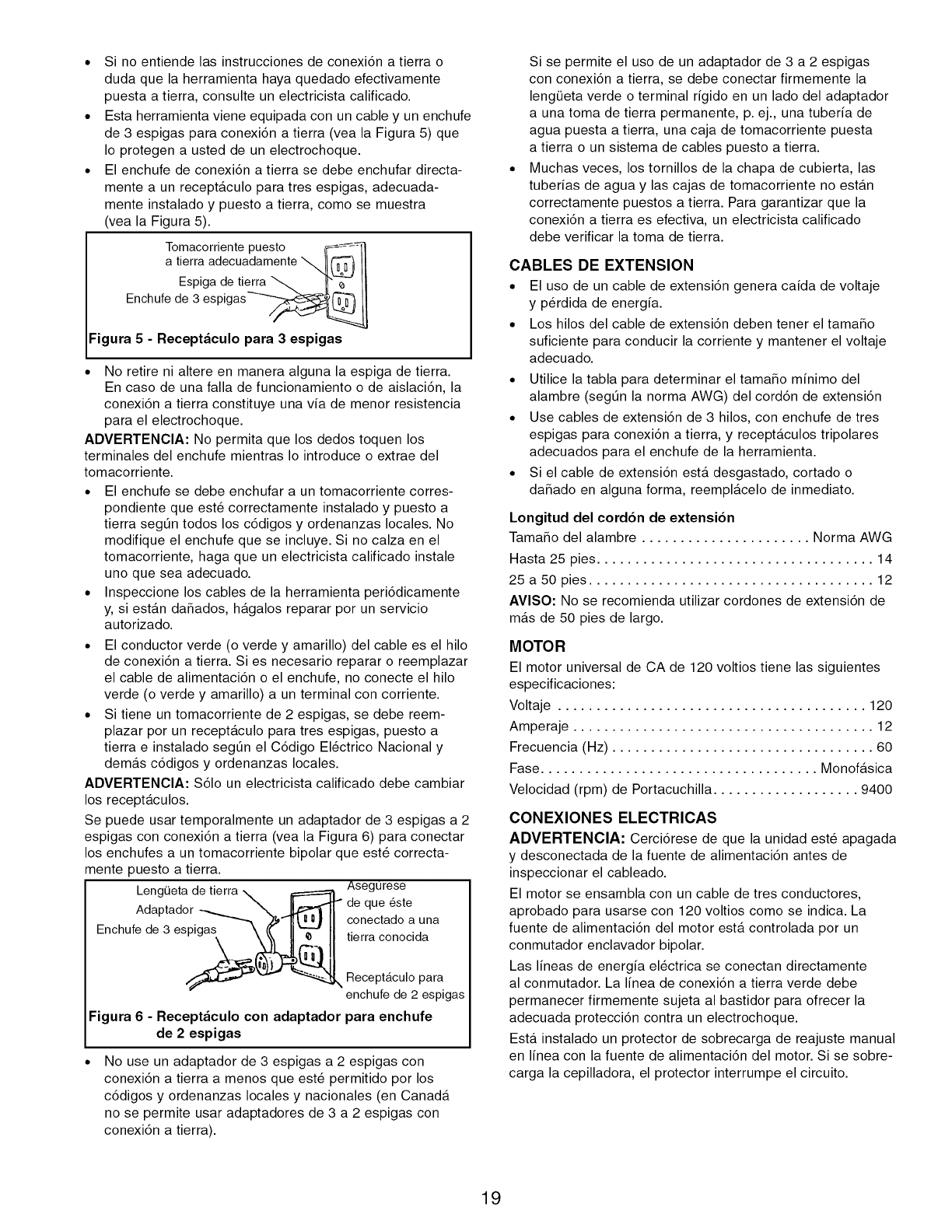 • Extension cords should have a grounding prong and