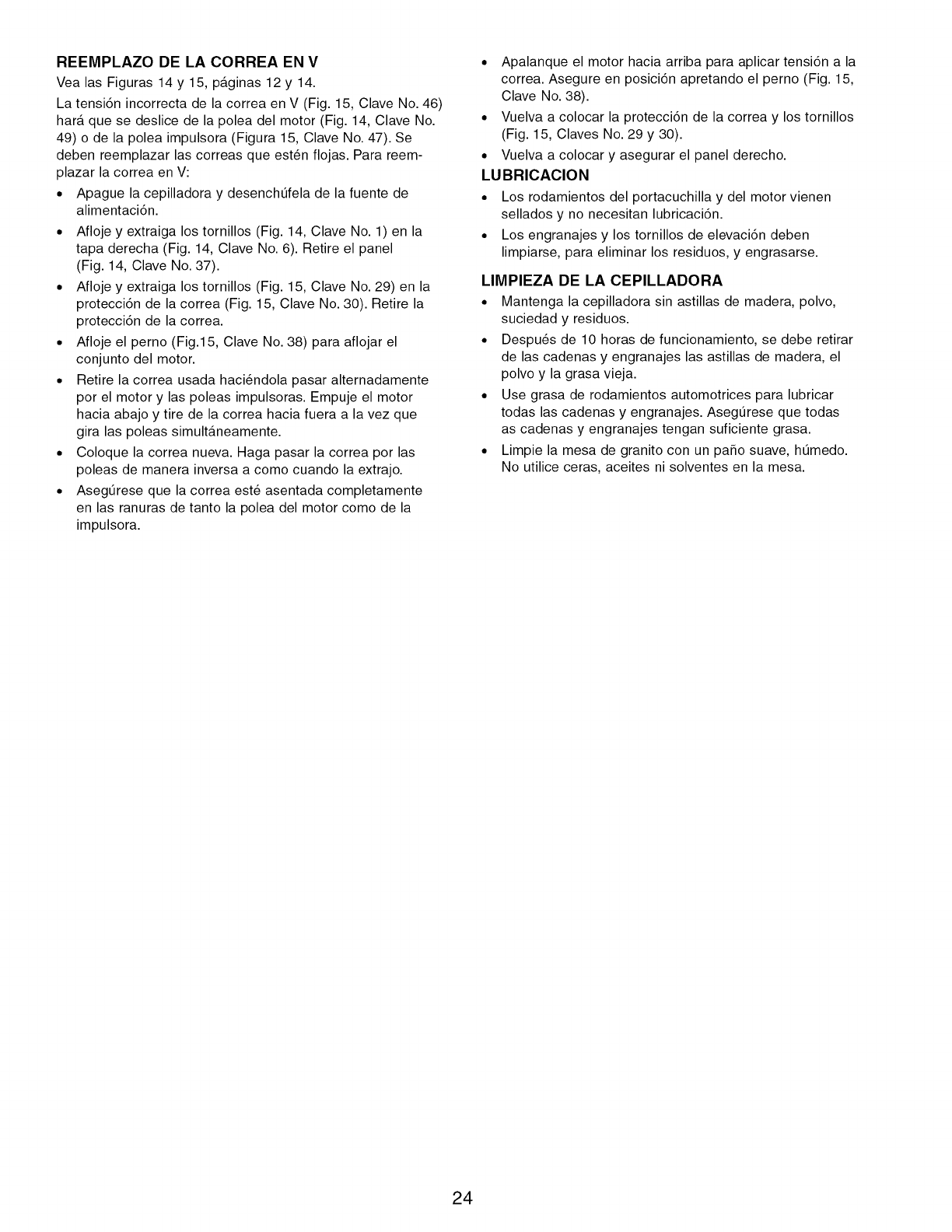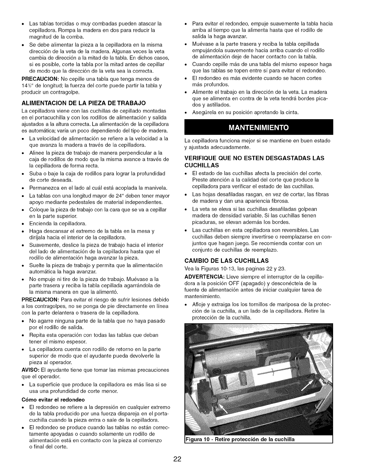 Vea "Limpieza de la Cepilladora"