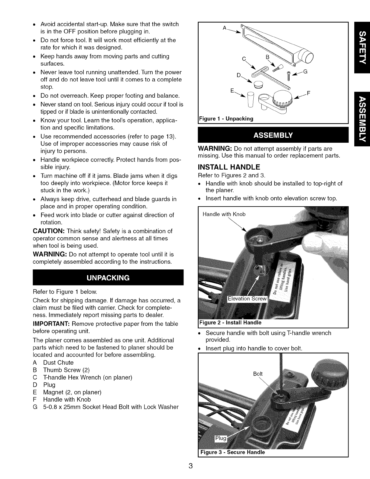 CRAFTSMAN Planer Manual L1003048 CRAFTSMAN Planer Owner's Manual, CRAFTSMAN Planer installation guides