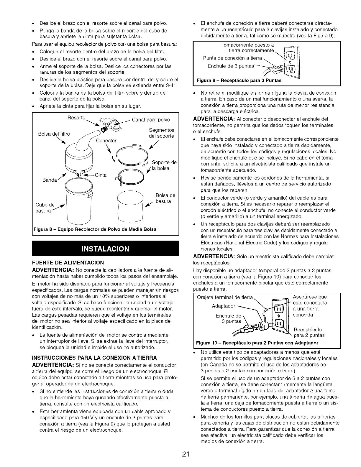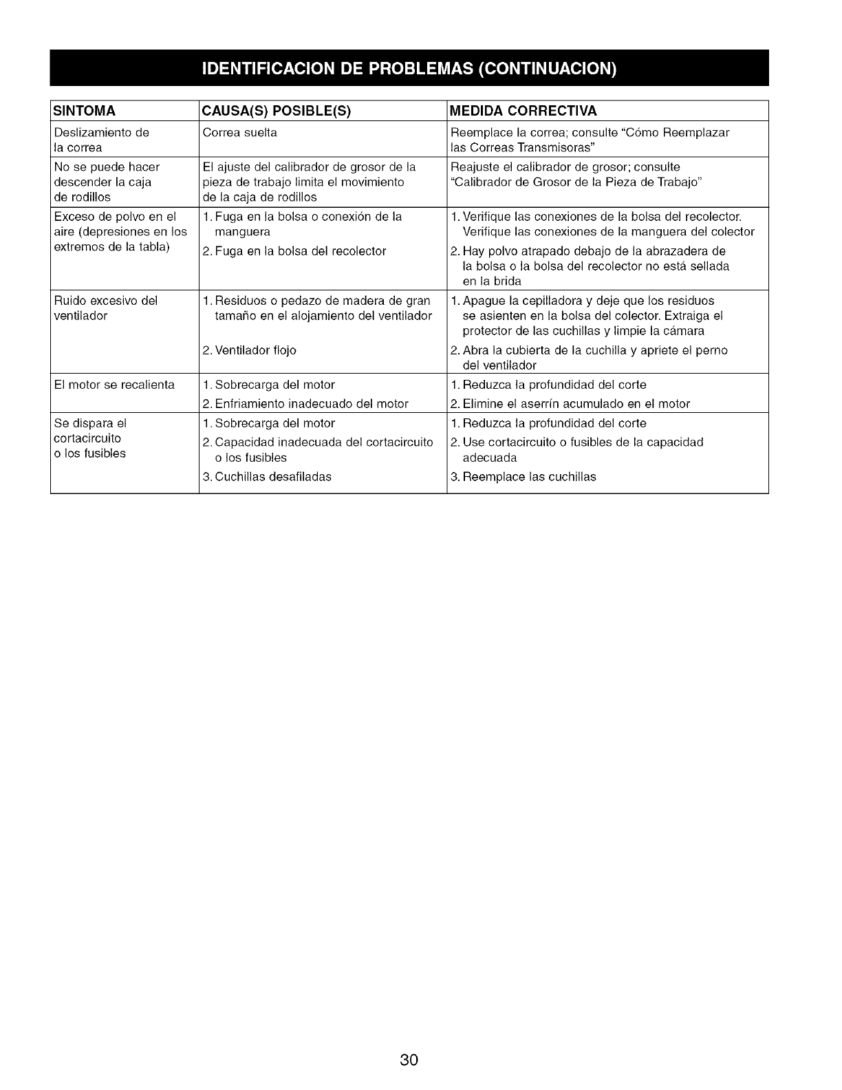extremos de la tabla) 2. Fuga en la bolsa del recolector 2. Hay polvo atrapado debajo de la abrazadera de