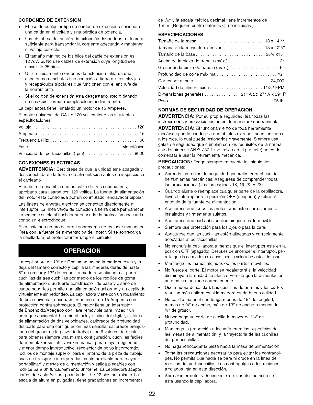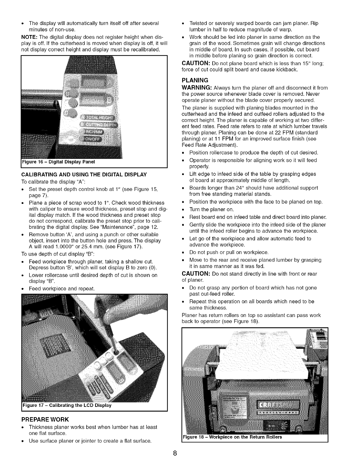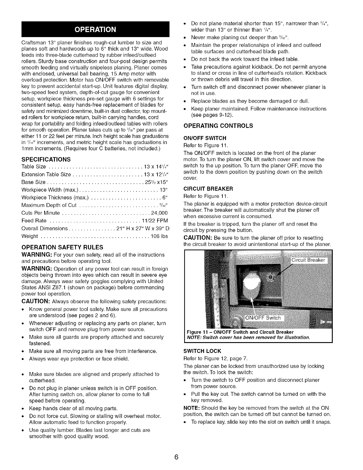 Craftsman 351217590 User Manual PLANER Manuals And Guides L0707158