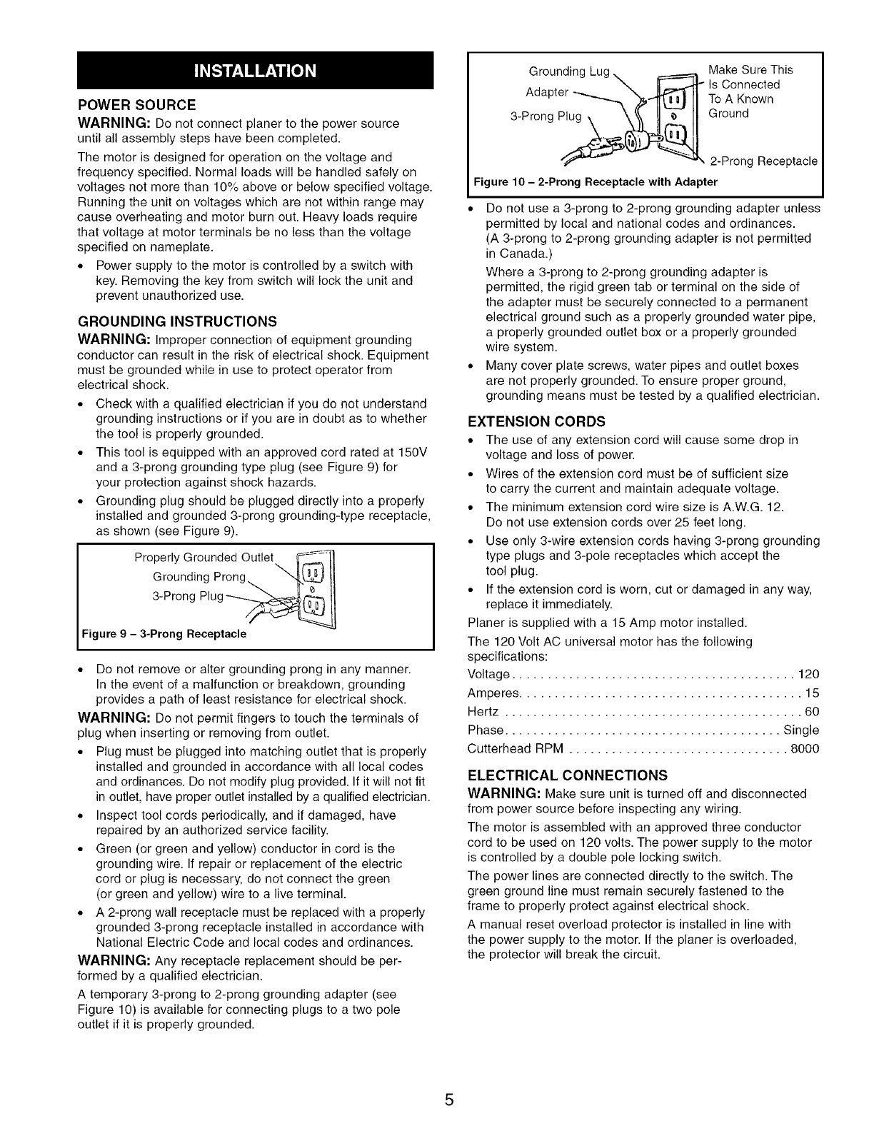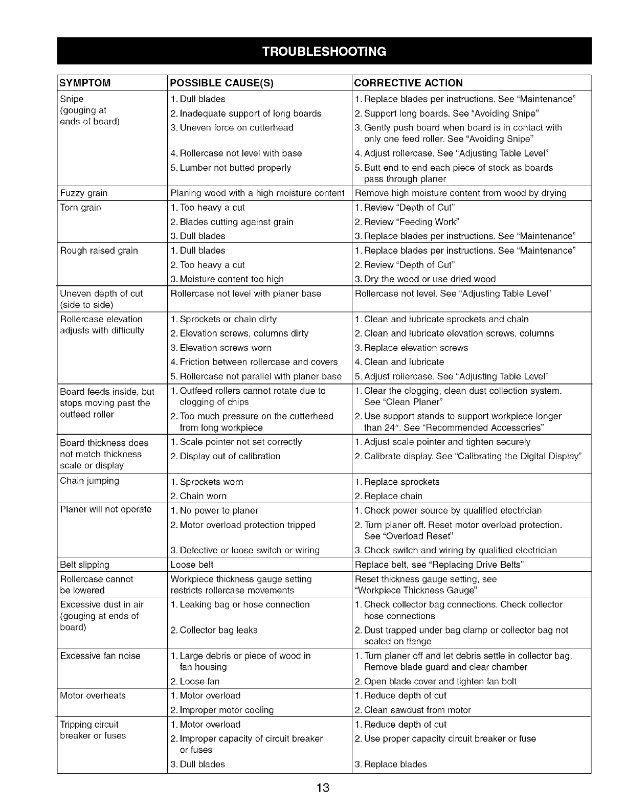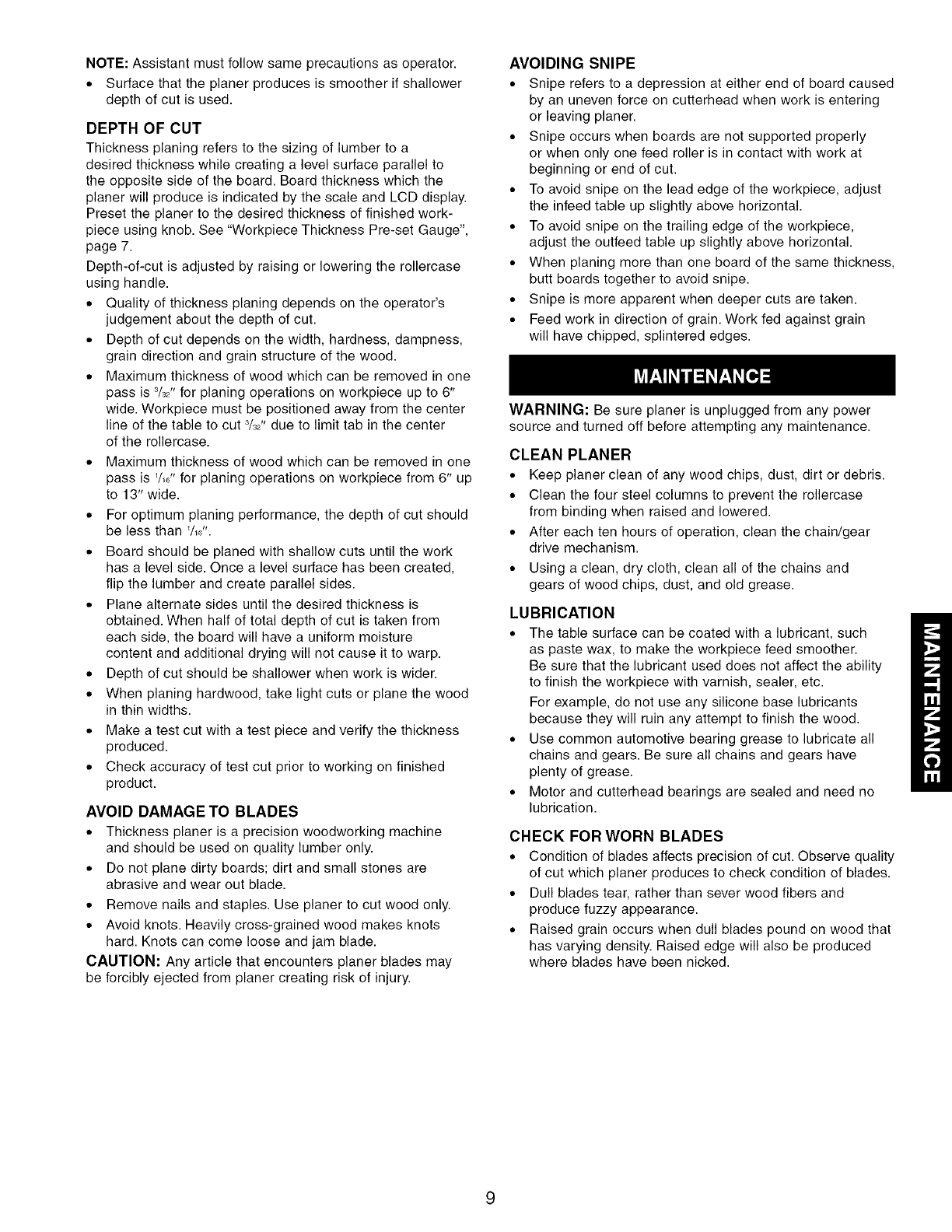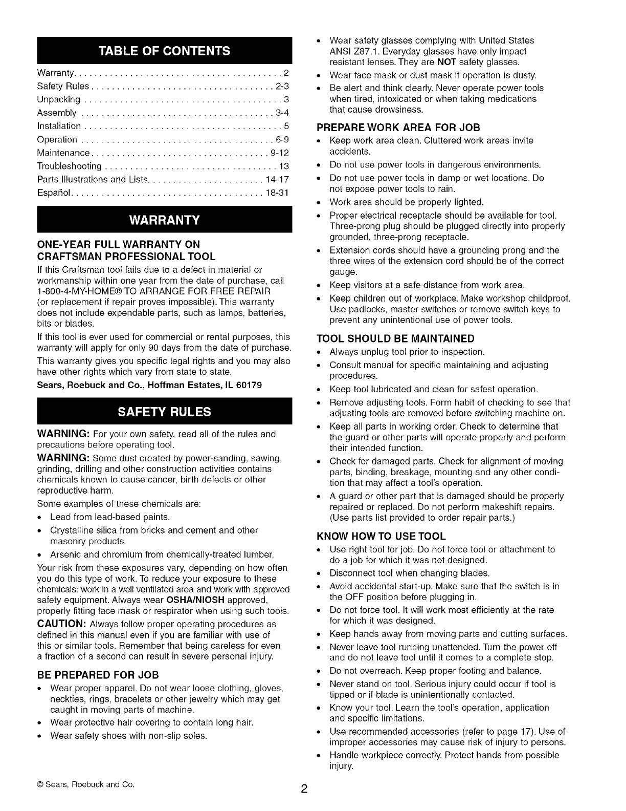 Craftsman 351217590 User Manual PLANER Manuals And Guides L0707158