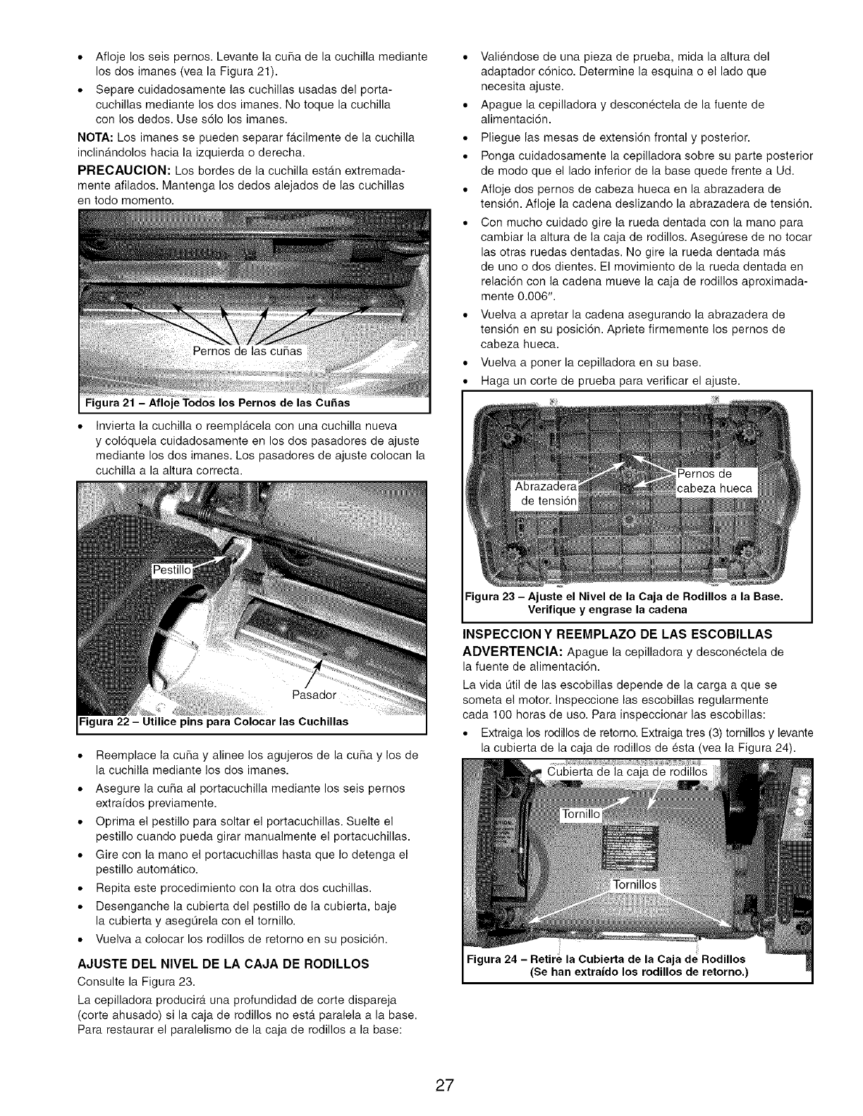 4. Ajuste la caja de rodillos. Vea "Ajuste del Nivel