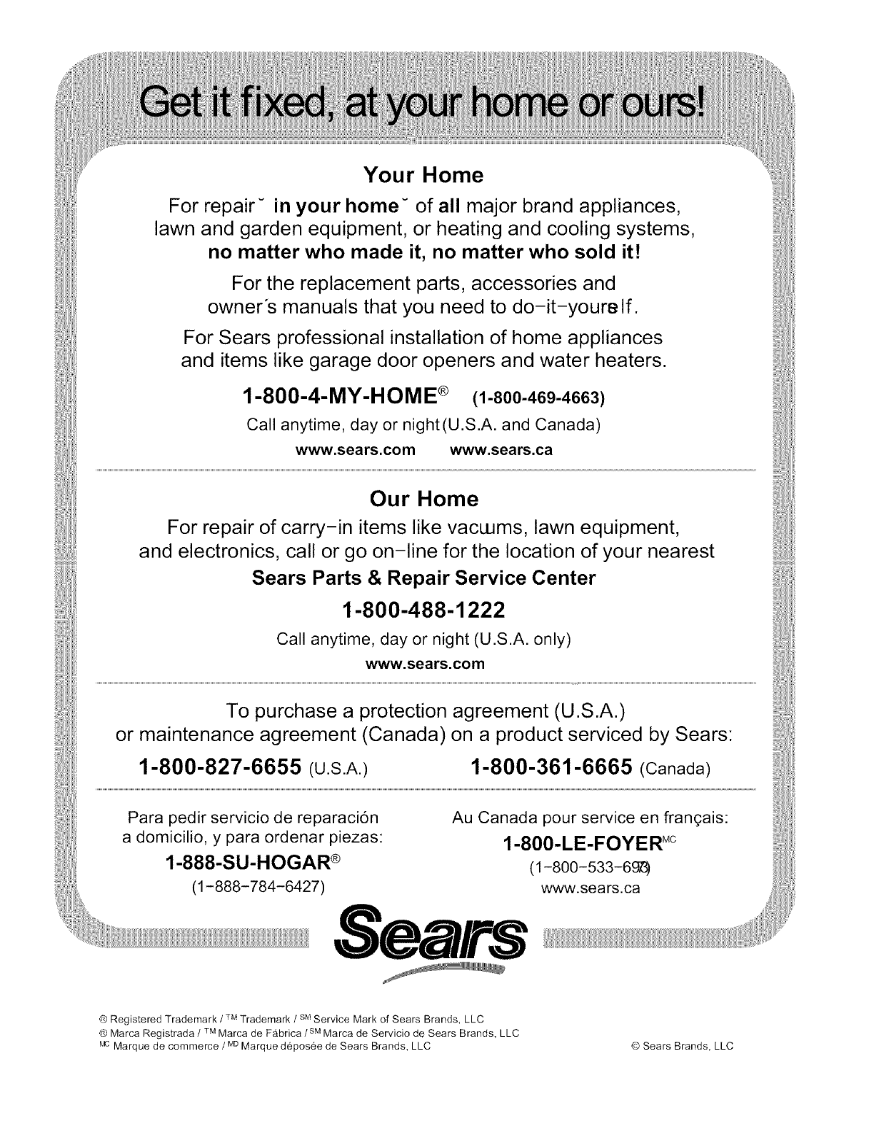 ® Registered Trademark /Trademark /SM Service Mark of Sears Brands, LLC