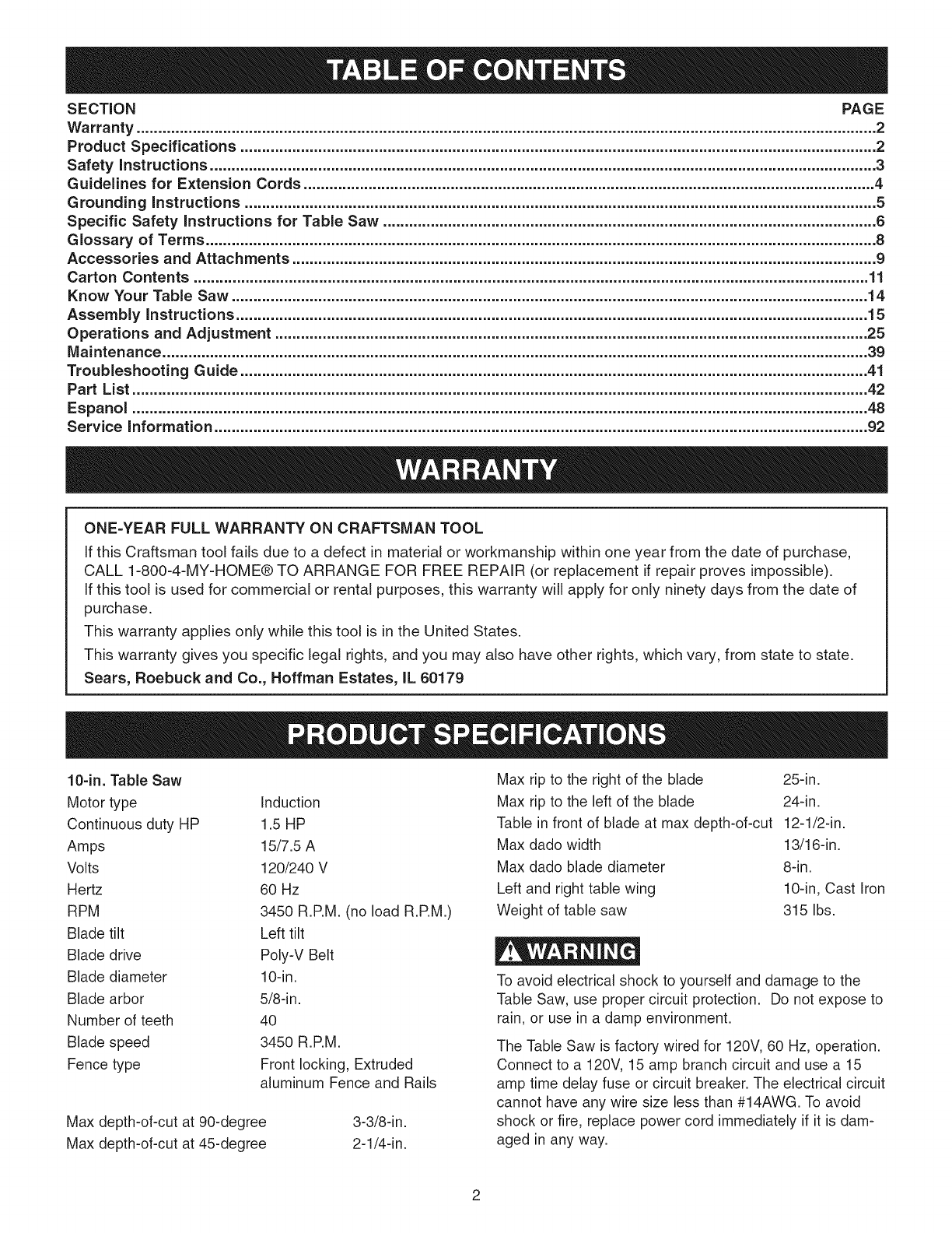Craftsman 351221140 User Manual TABLE Manuals And Guides L1002108