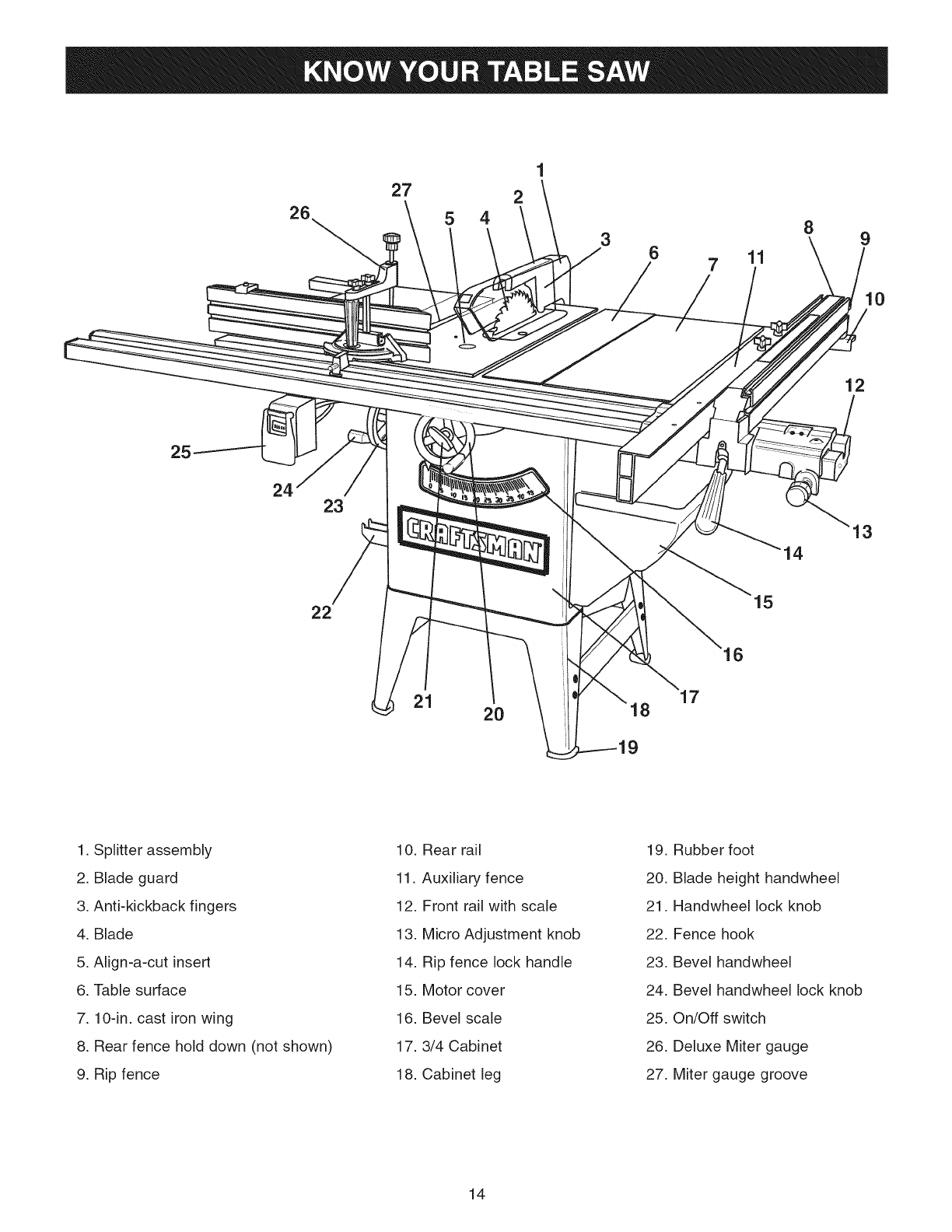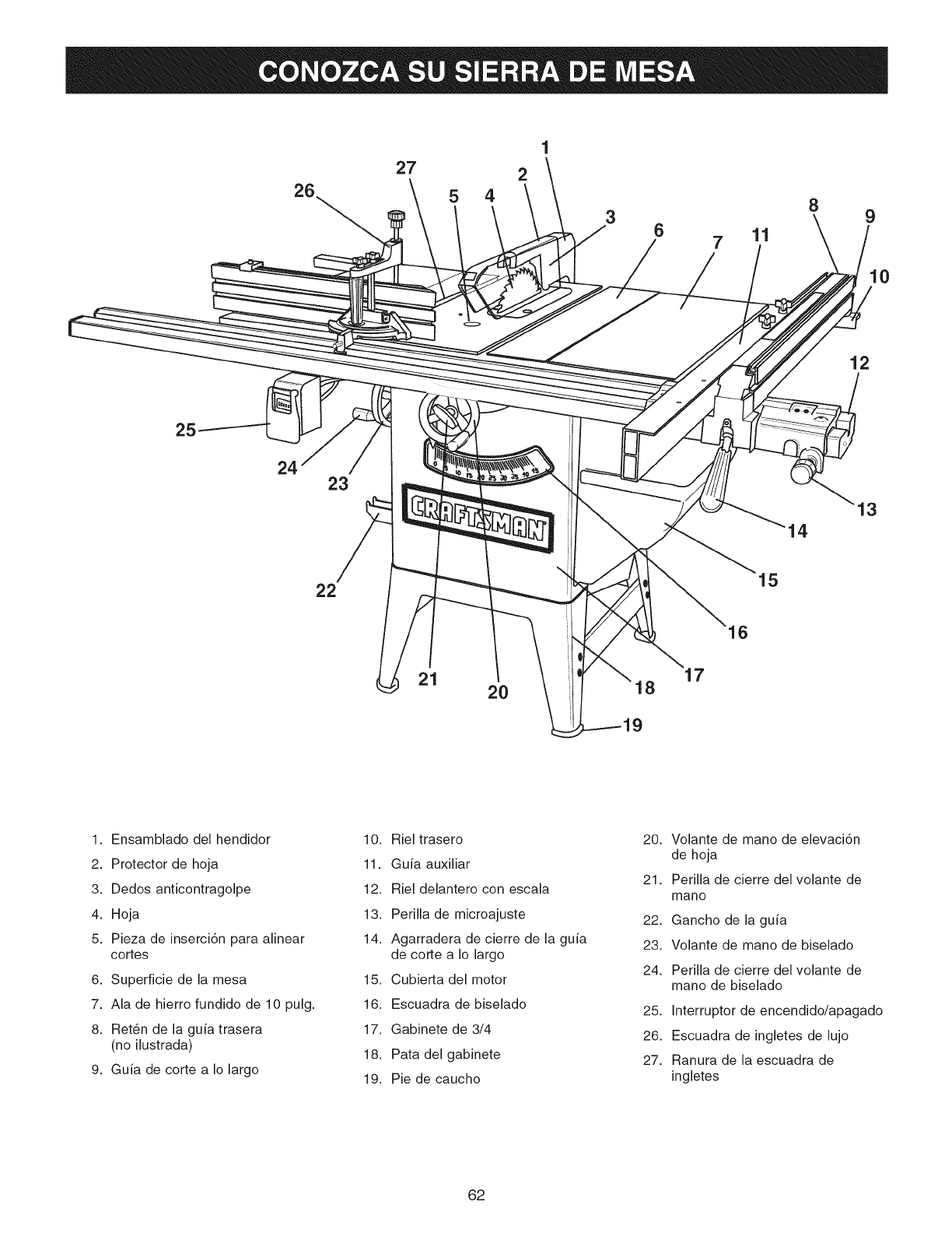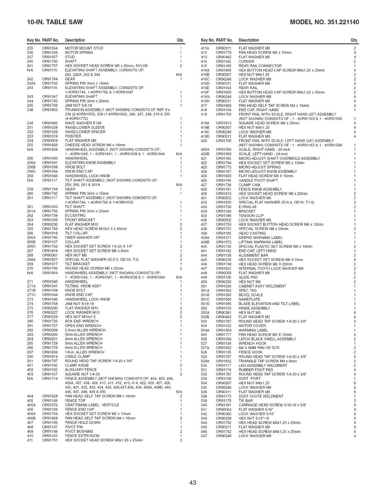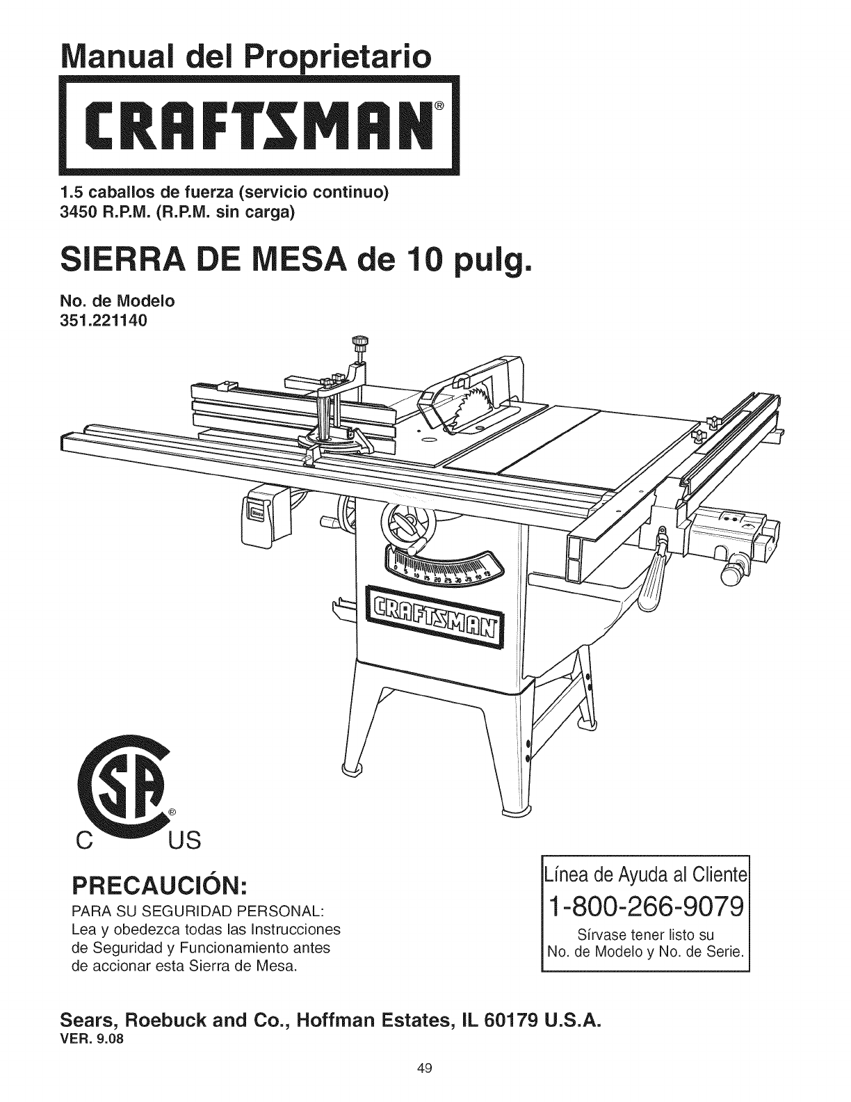 User Manual: Craftsman 351221140 351221140 CRAFTSMAN TABLE - Manuals and Guides View the owners manual for your CRAFTSMAN TABLE #351221140. Home:Tool Parts:Craftsman Parts:Craftsman TABLE Manual