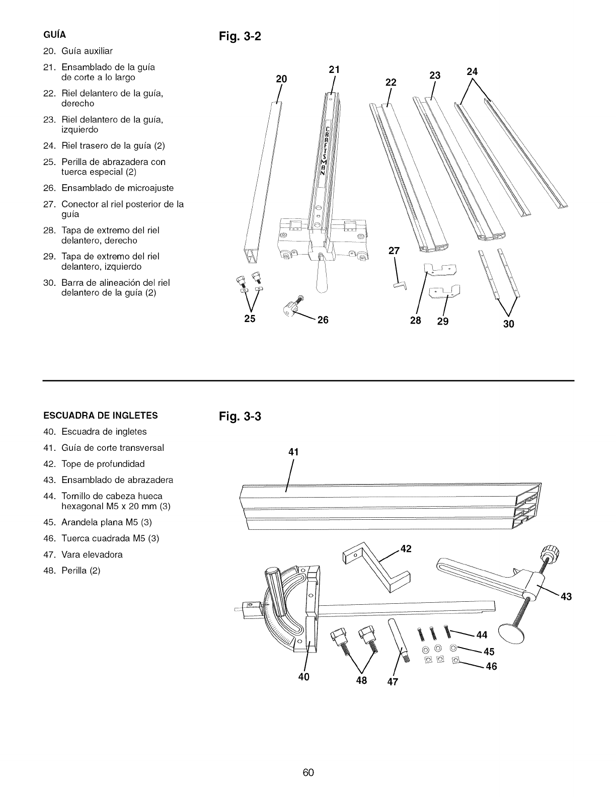 1. Limpie la ranura y la barra de la escuadra de ingletes.
