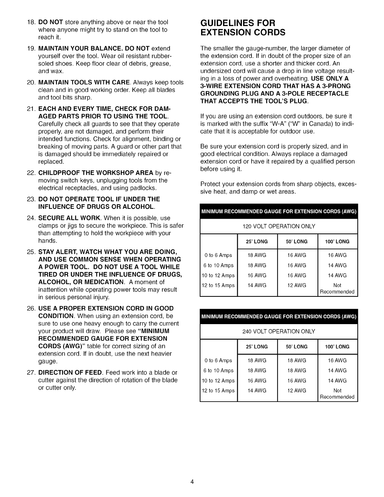 Guidelines for Extension Cords .................................................................................................................................... 4