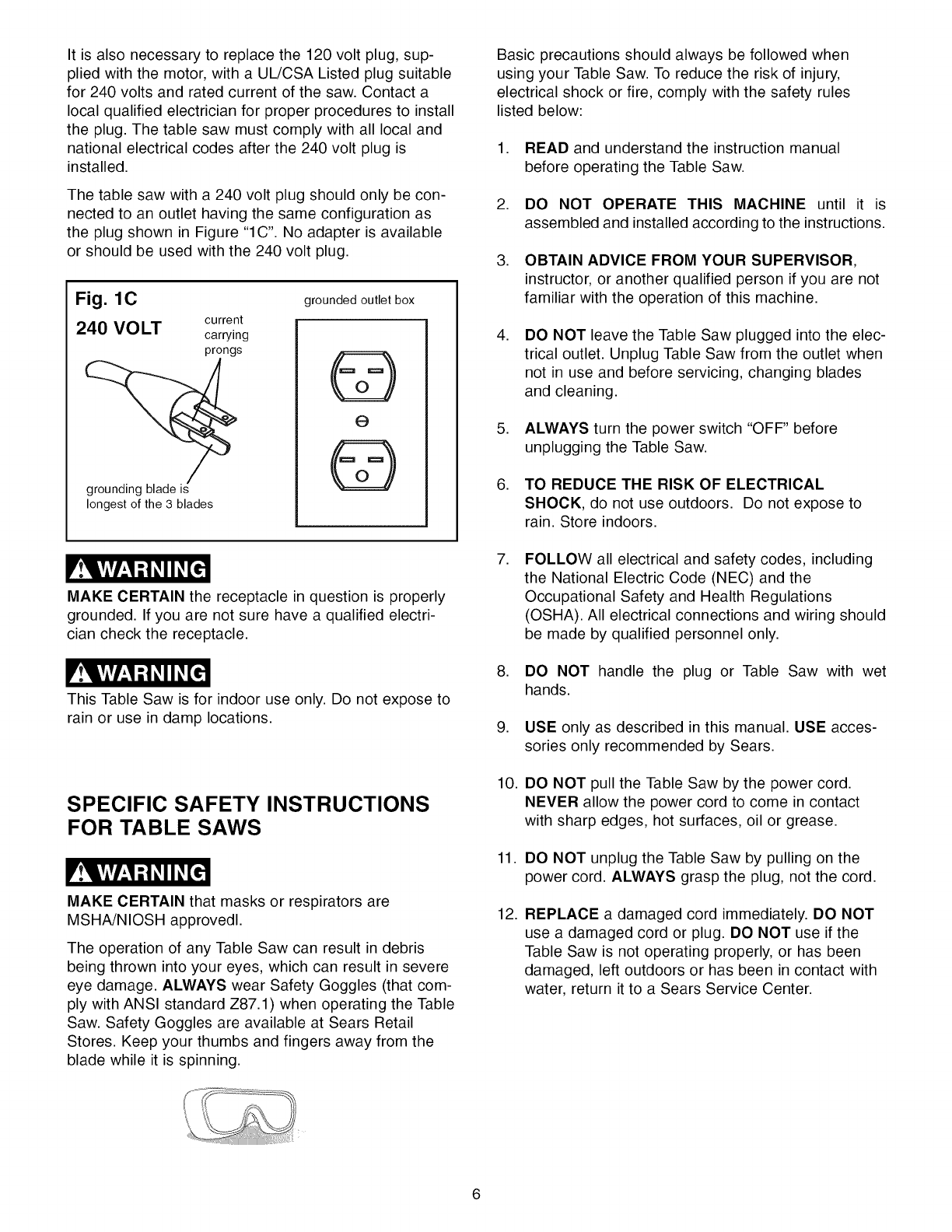 Specific Safety Instructions for Table Saw .................................................................................................................. 6