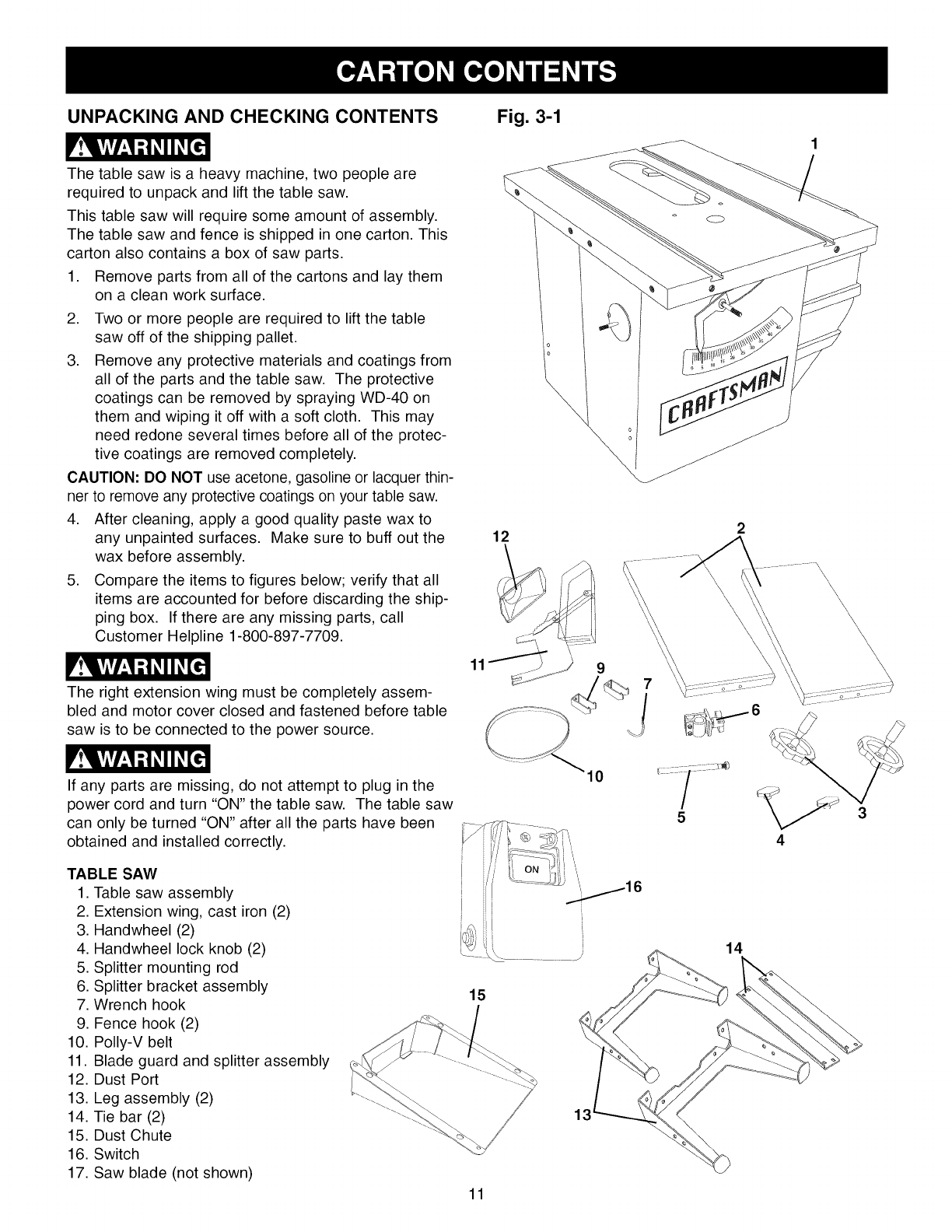 CRAFTSMAN Saw Table Manual L1002108 CRAFTSMAN Saw Table Owner's Manual, CRAFTSMAN Saw Table installation guides