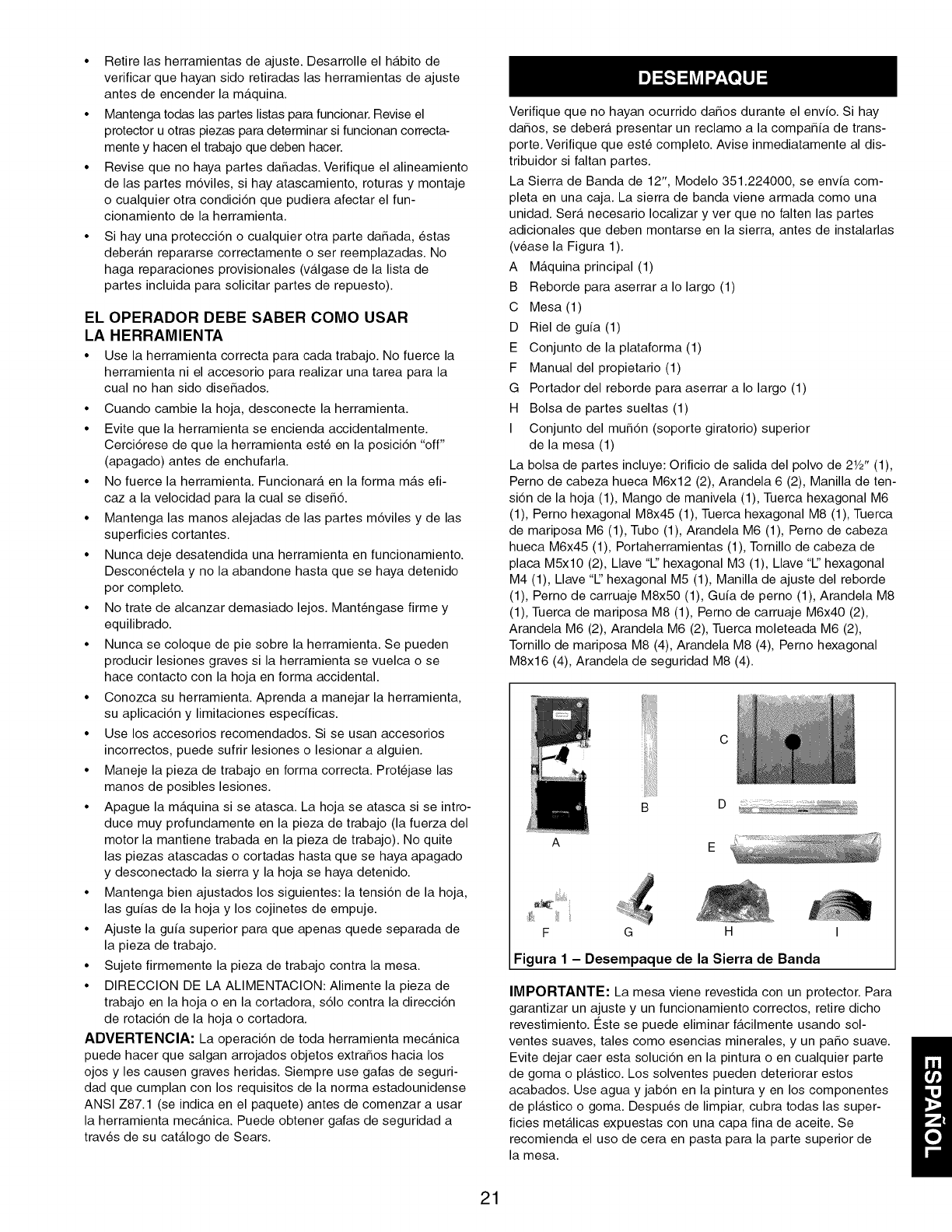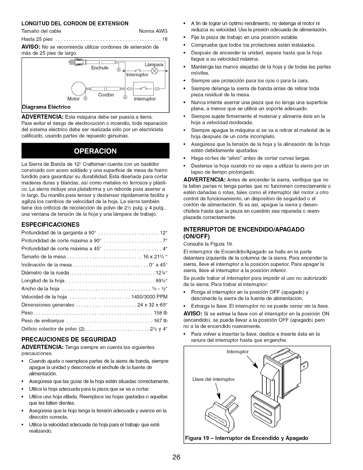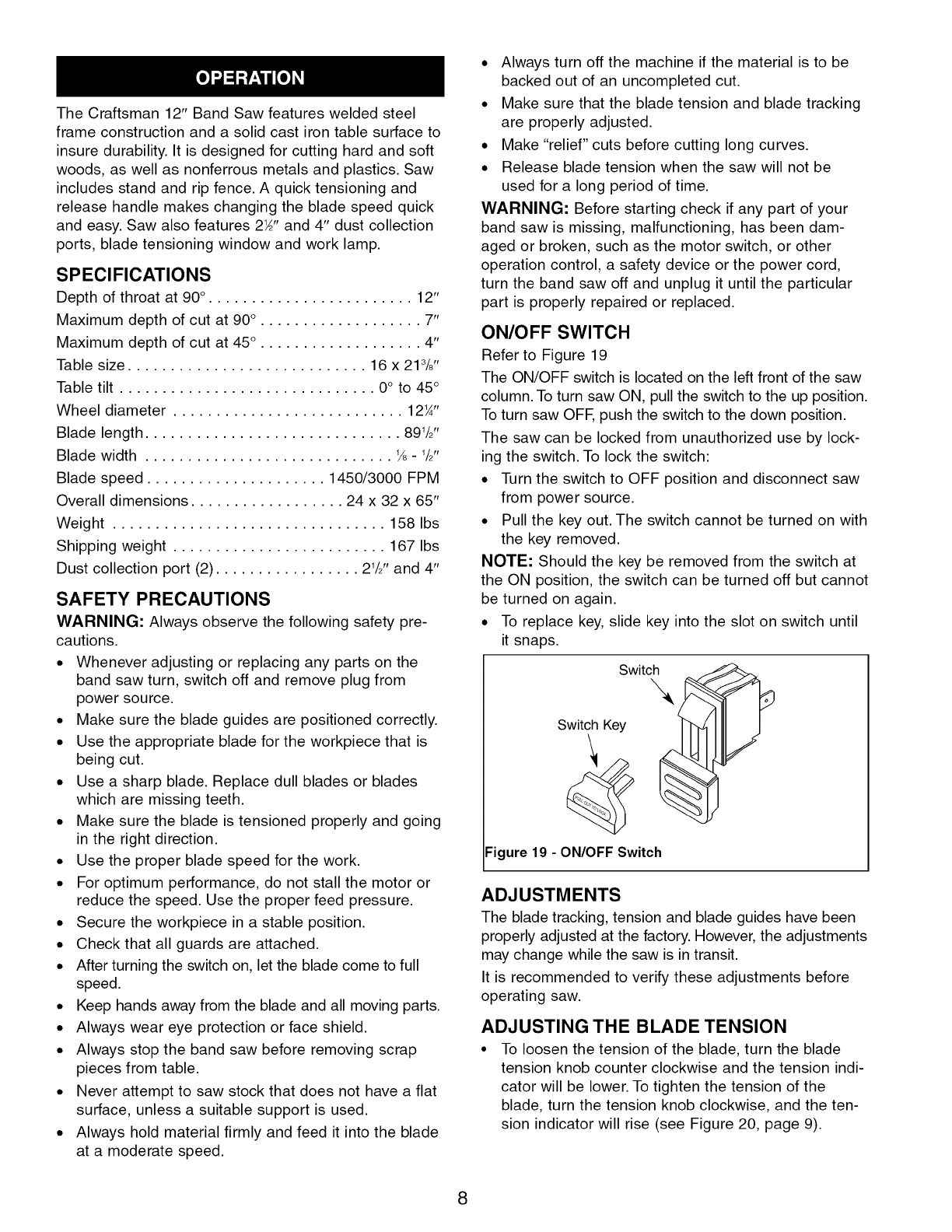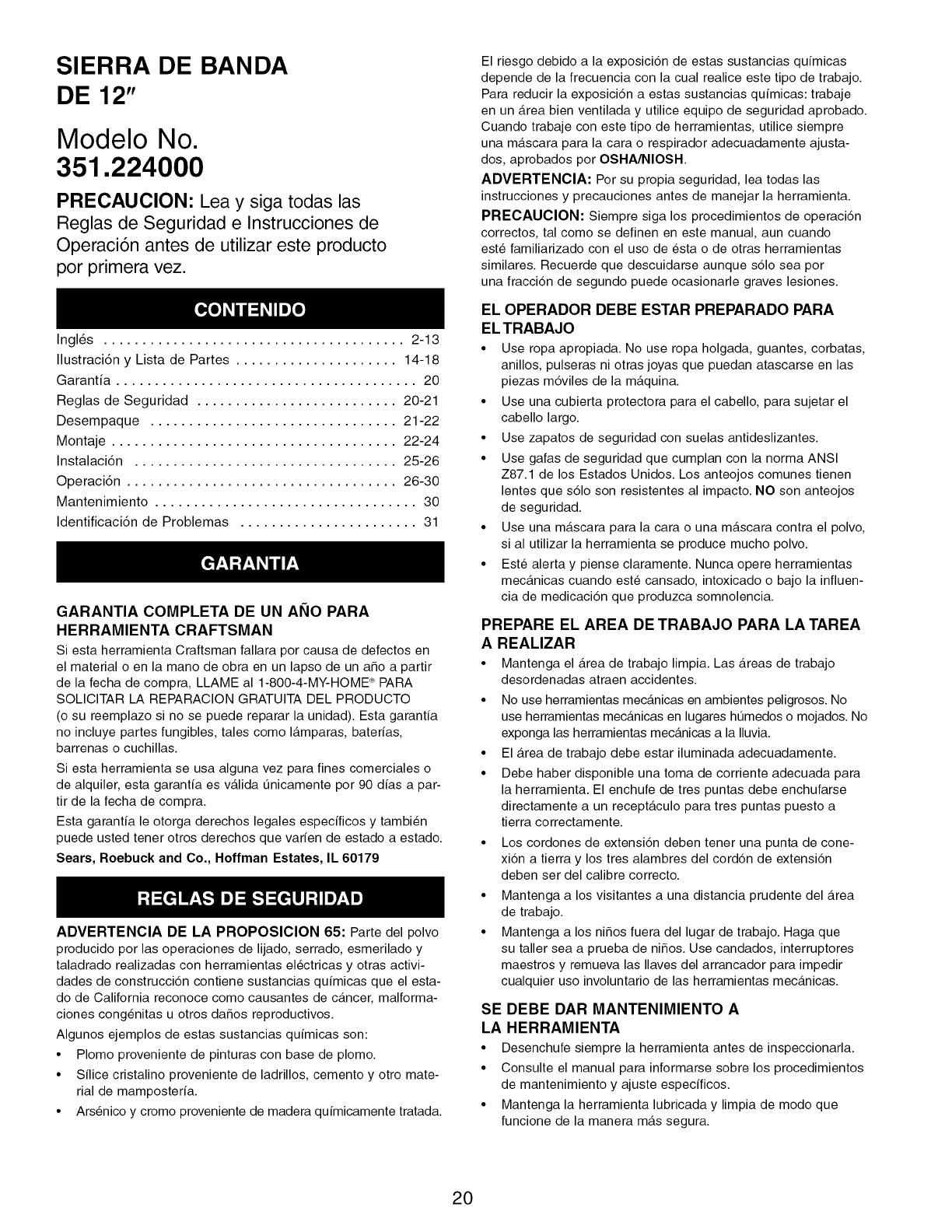 Craftsman 351224000 User Manual BANDSAW Manuals And Guides L0910297