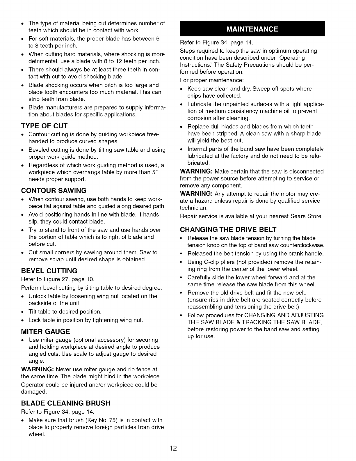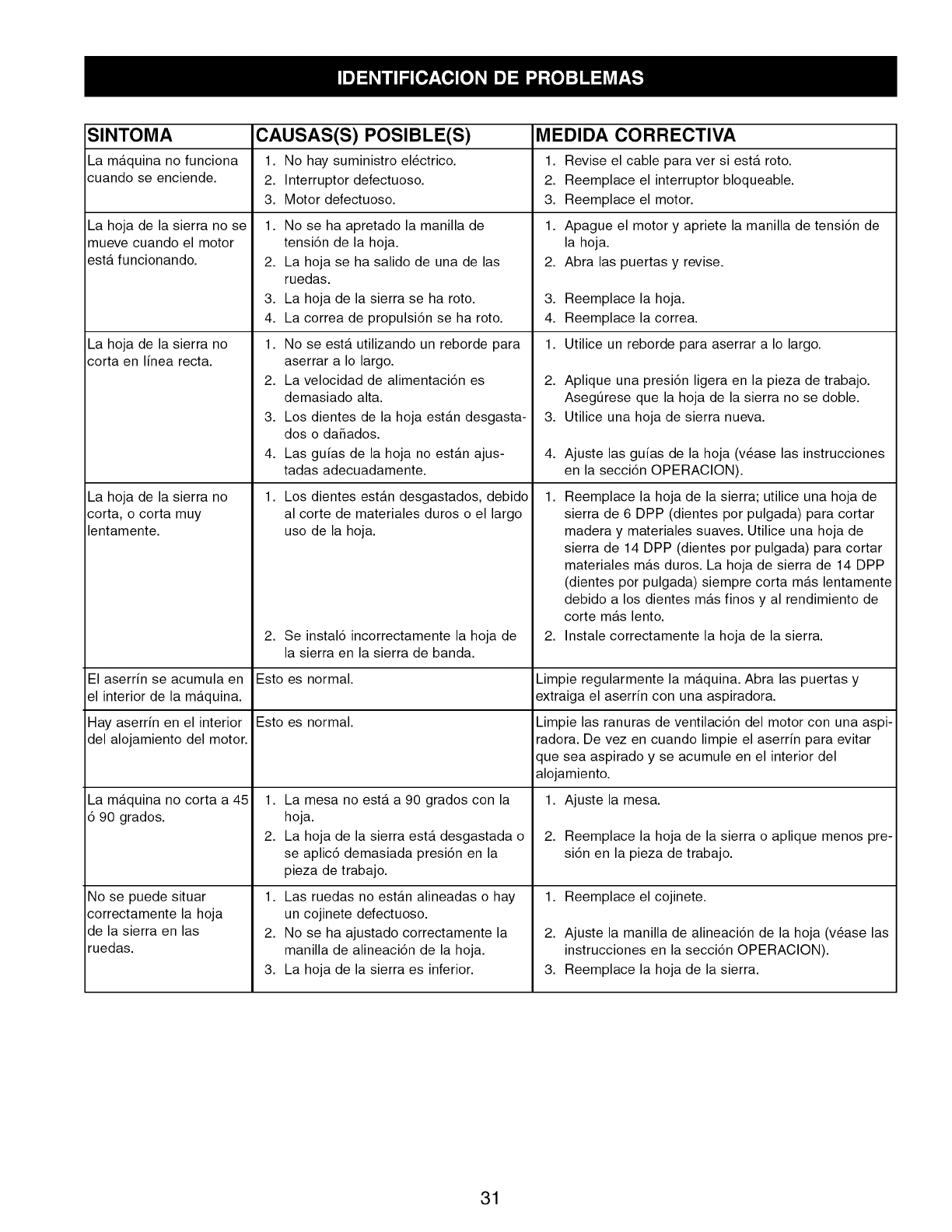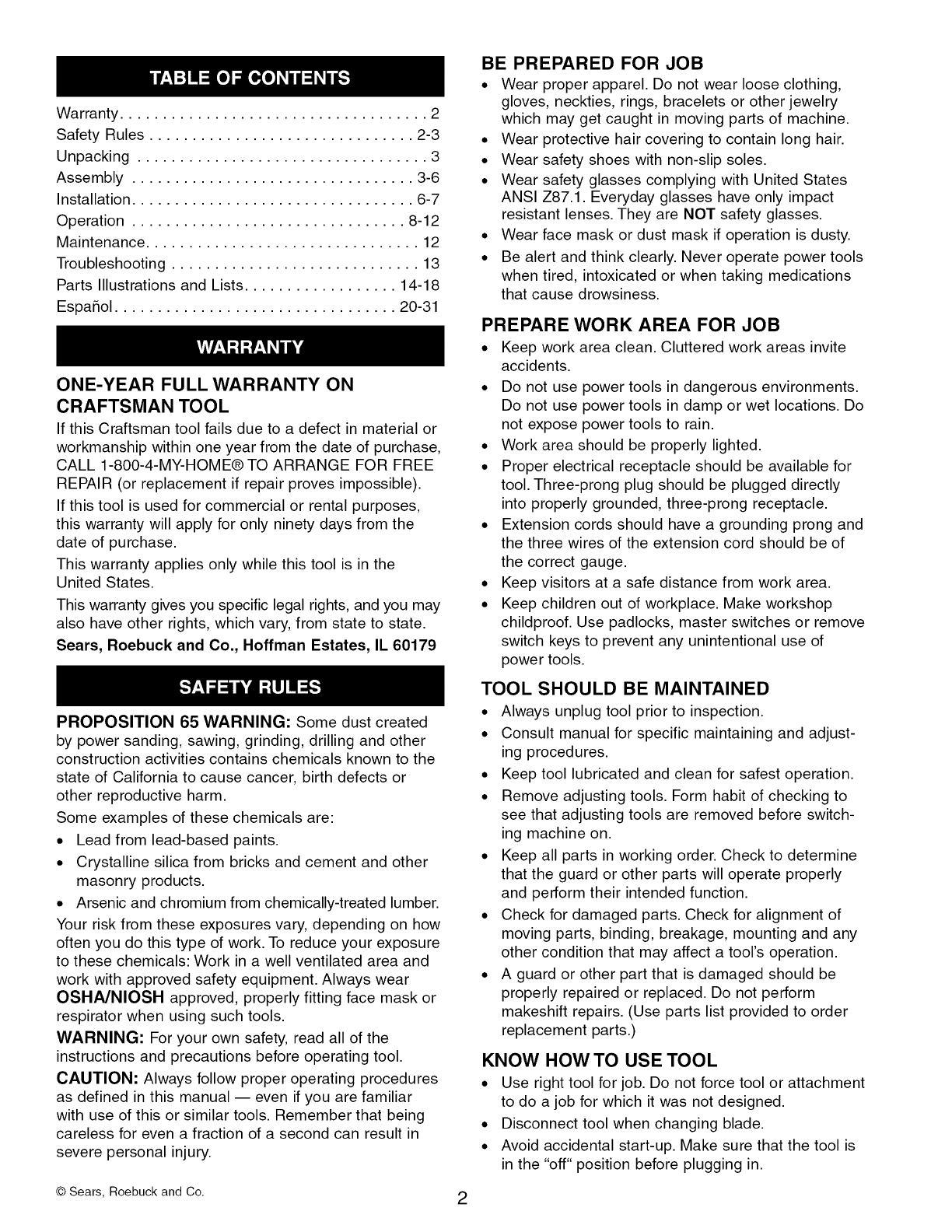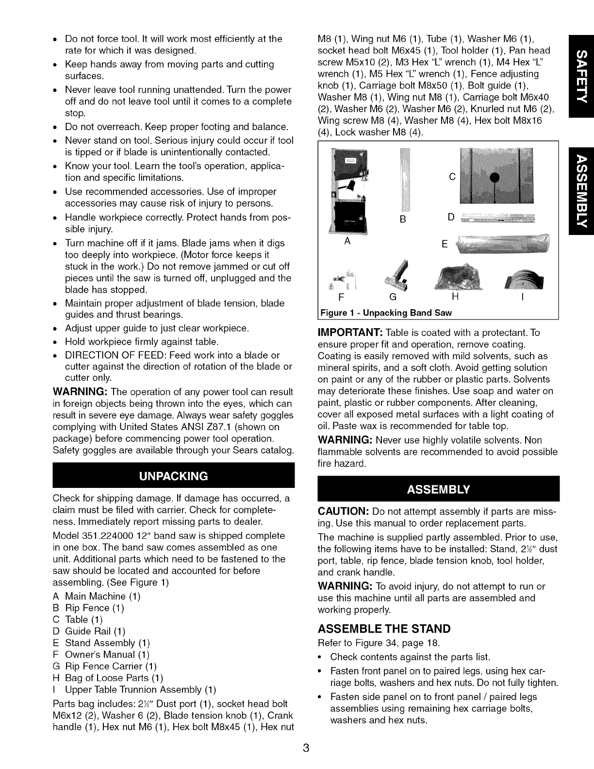 Craftsman 351224000 User Manual BANDSAW Manuals And Guides L0910297