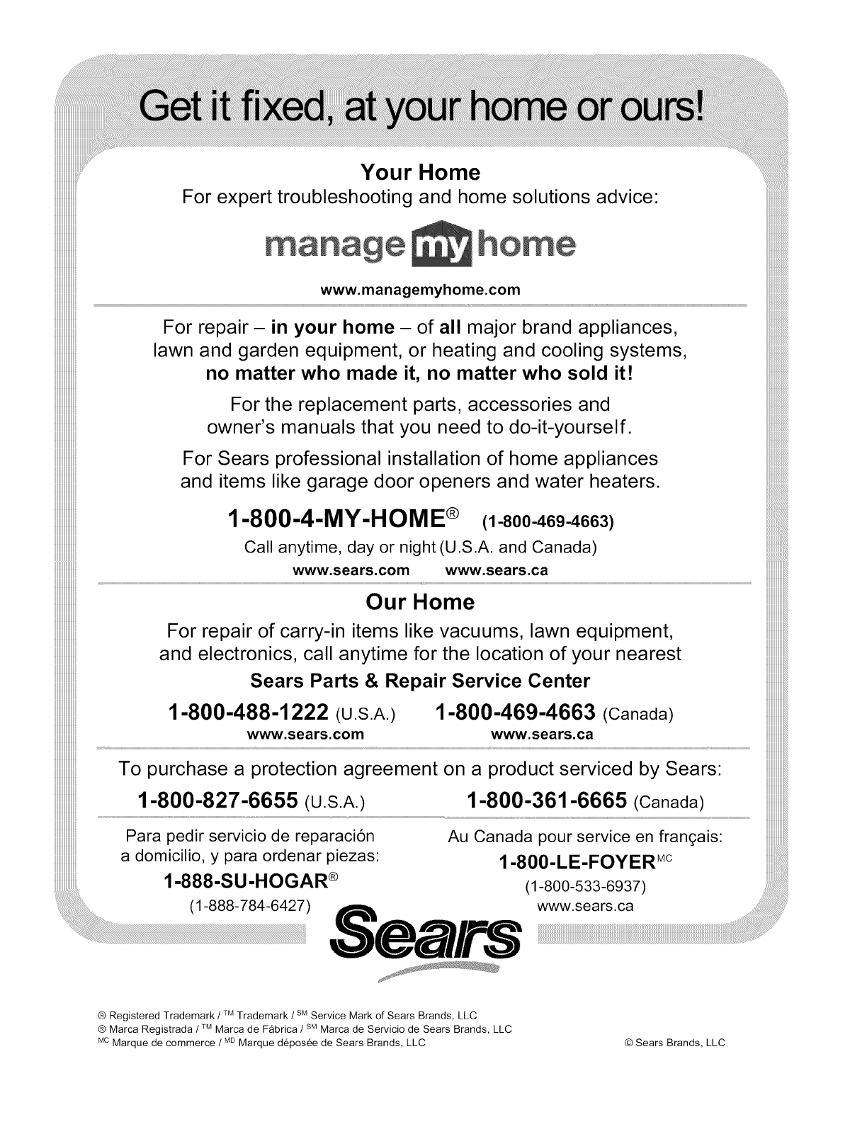 ® Registered Trademark /TM Trademark /SM Service Mark of Sears Brands, LLC