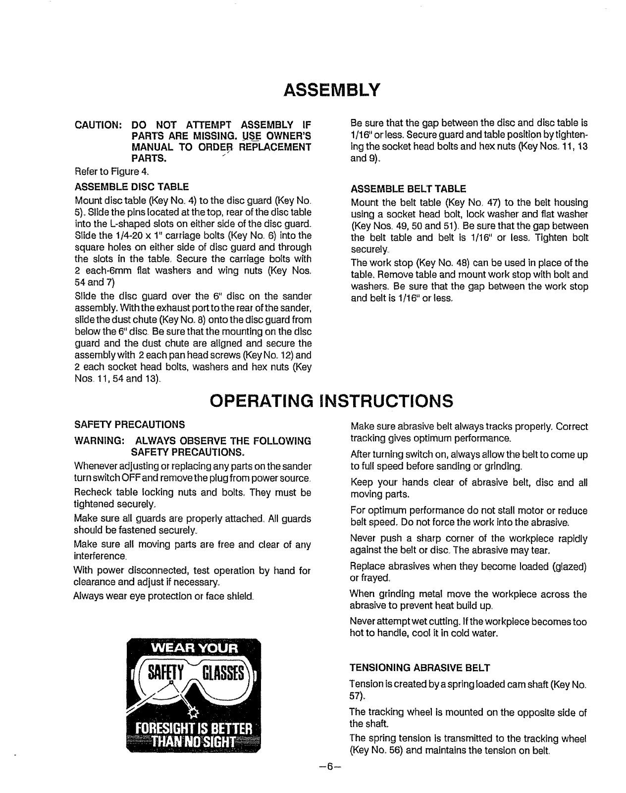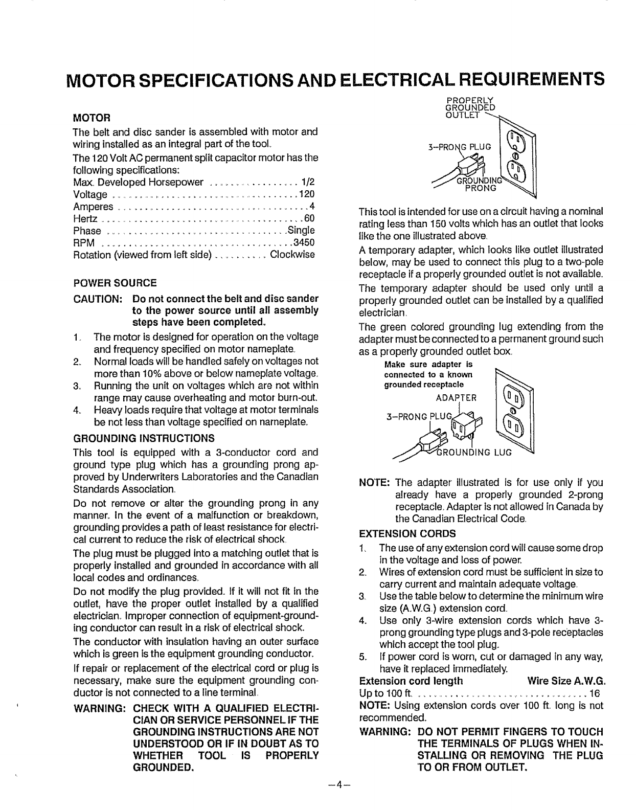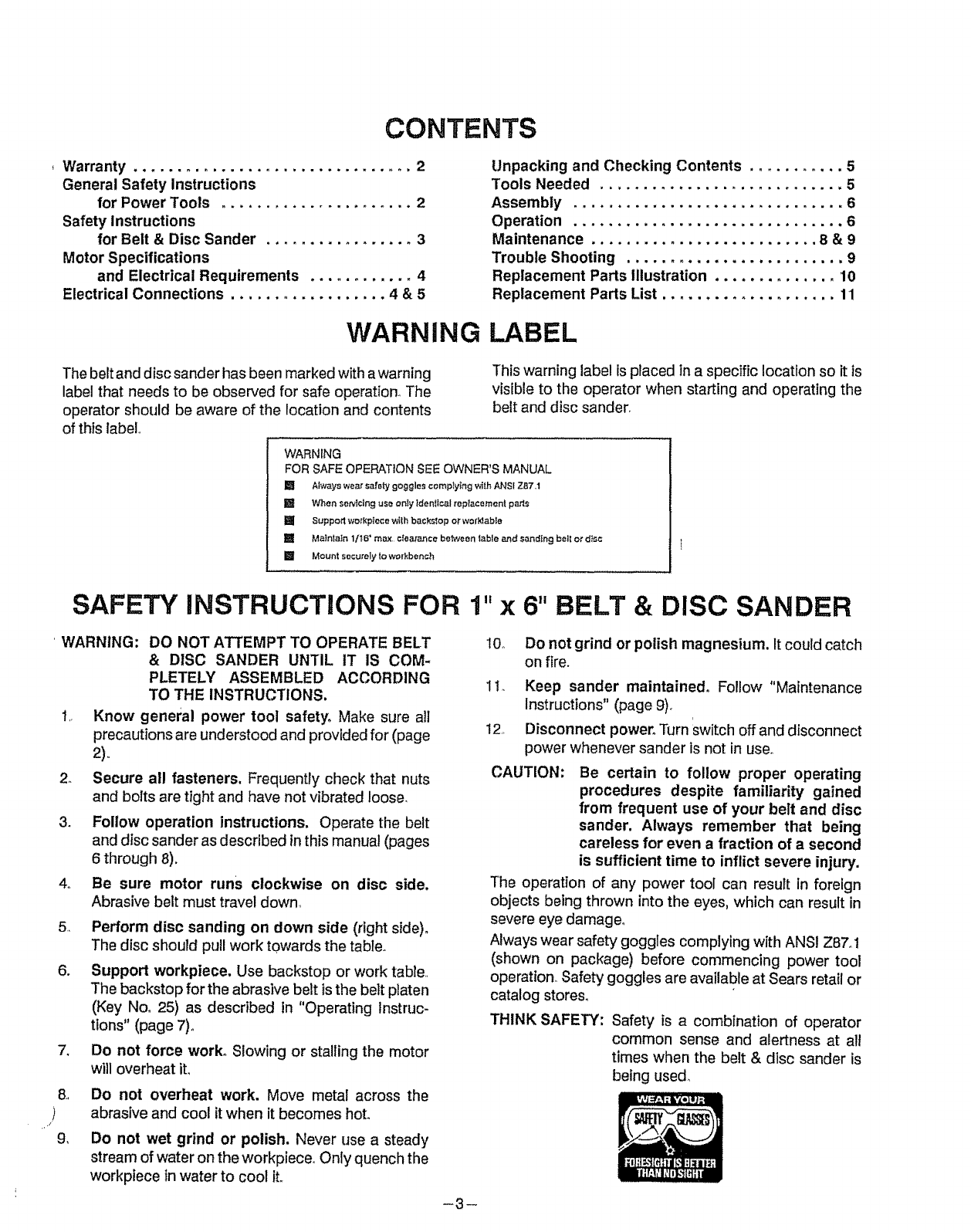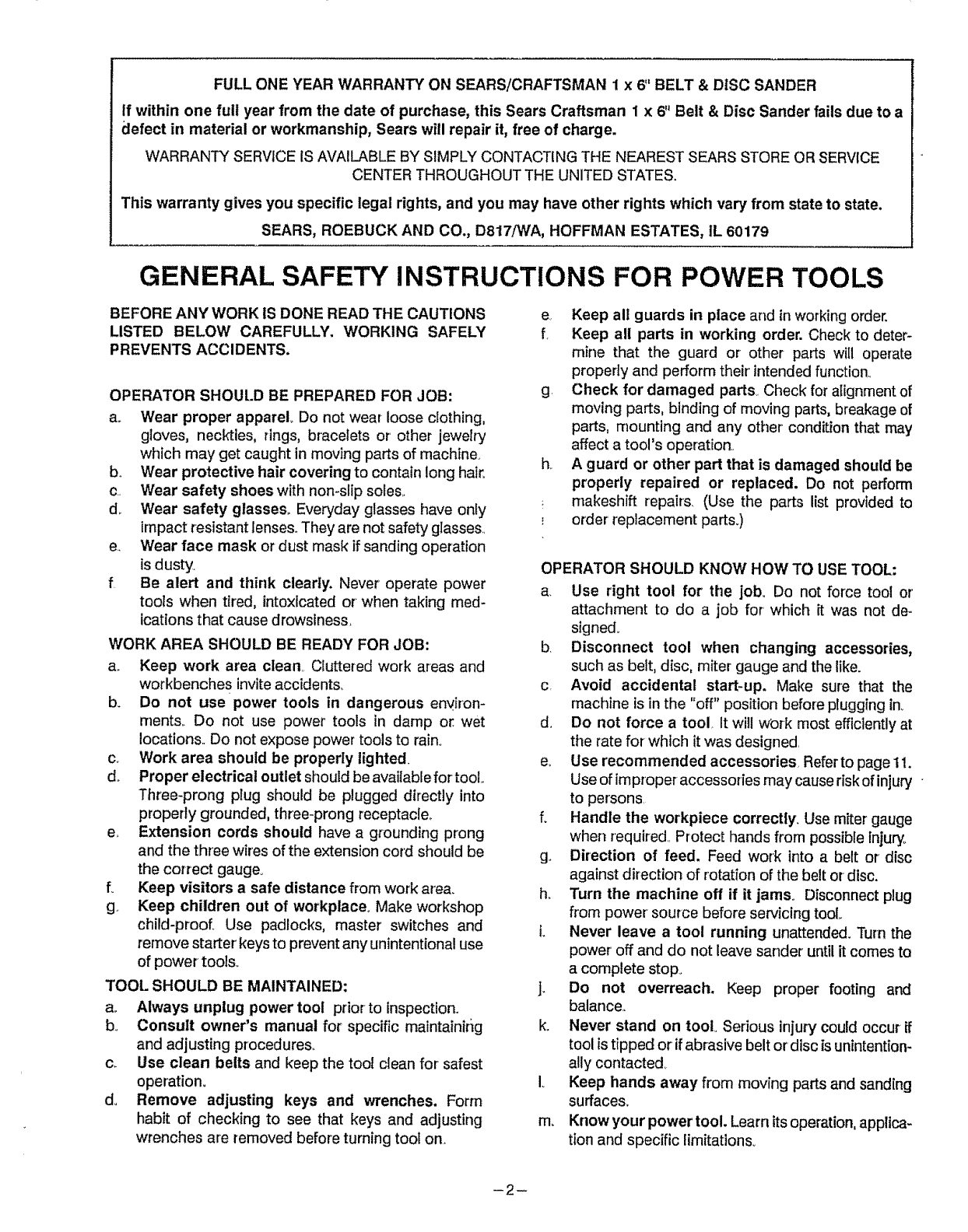 Craftsman 351226712 User Manual BELT AND DISC SANDER Manuals Guides L0910294