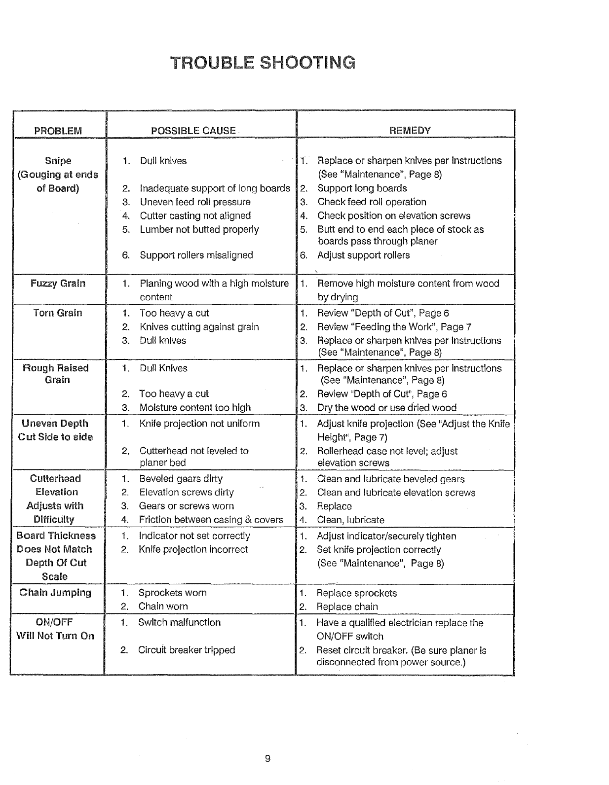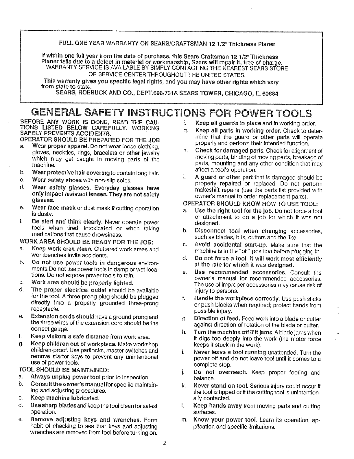 FULL ONE YEAR WARRANTY ON SEARS/CRAFTSMAN 12 1/2" Thickness Planer