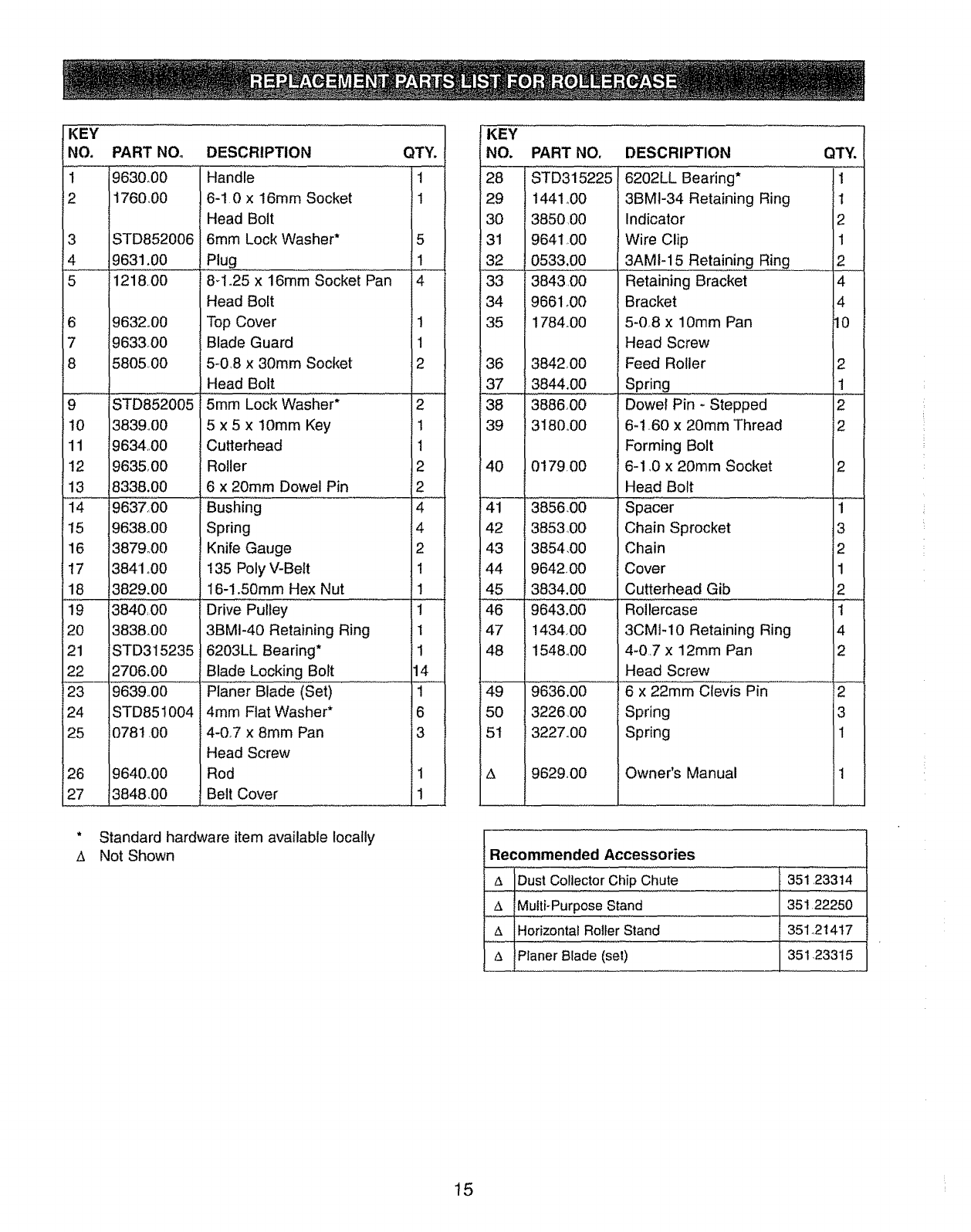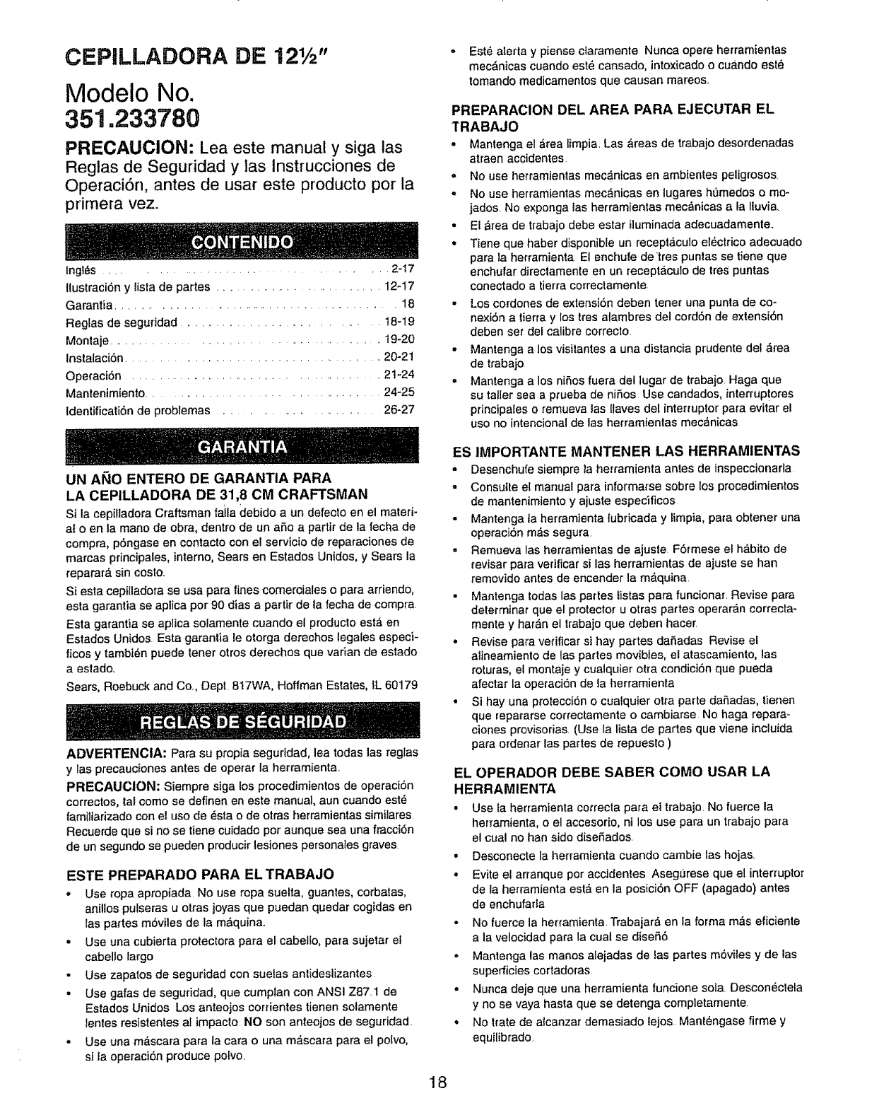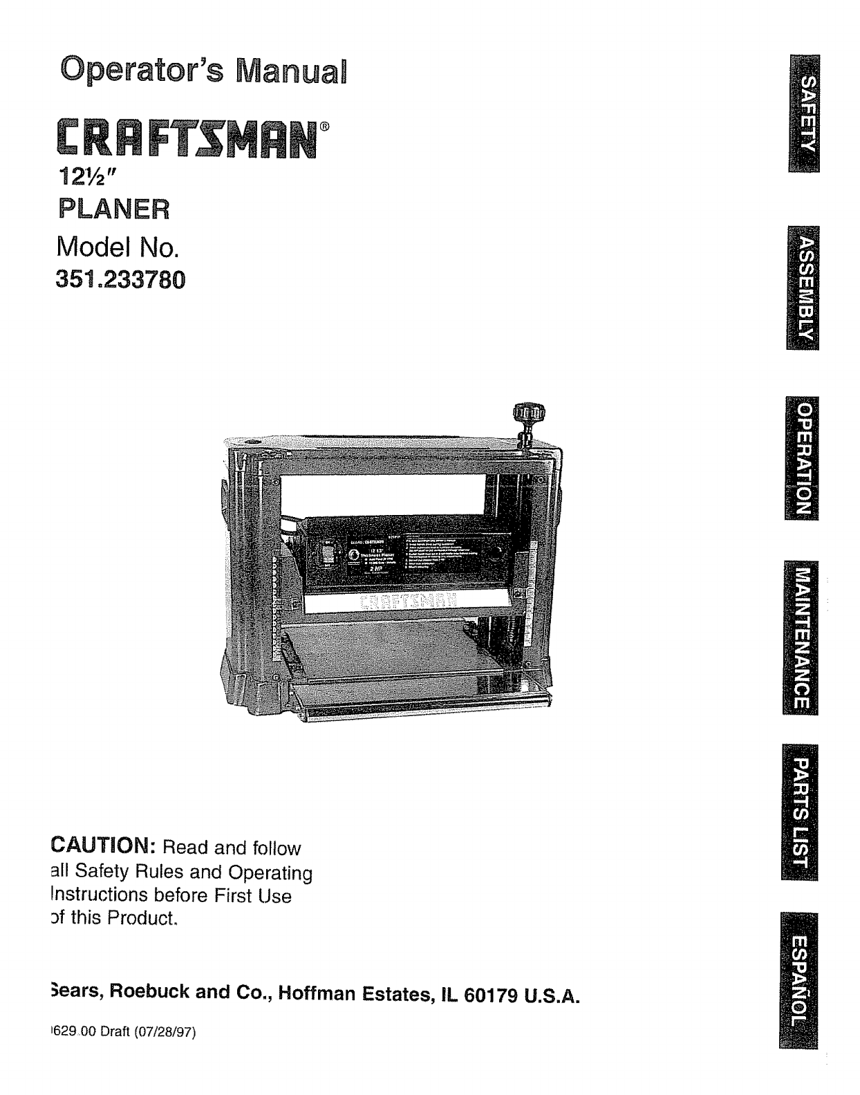 User Manual: Craftsman 351233780 351233780 CRAFTSMAN PLANER - Manuals and Guides View the owners manual for your CRAFTSMAN PLANER #351233780. Home:Tool Parts:Craftsman Parts:Craftsman PLANER Manual