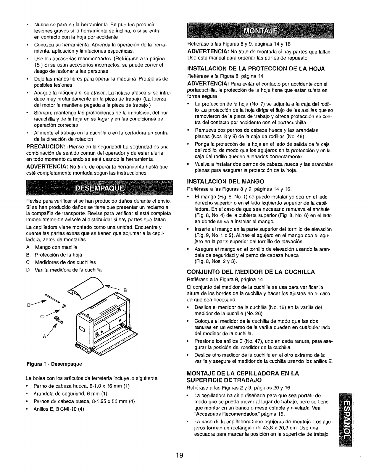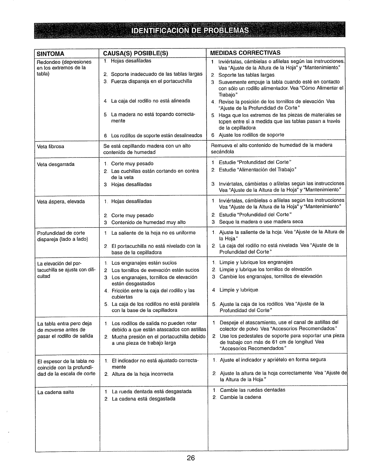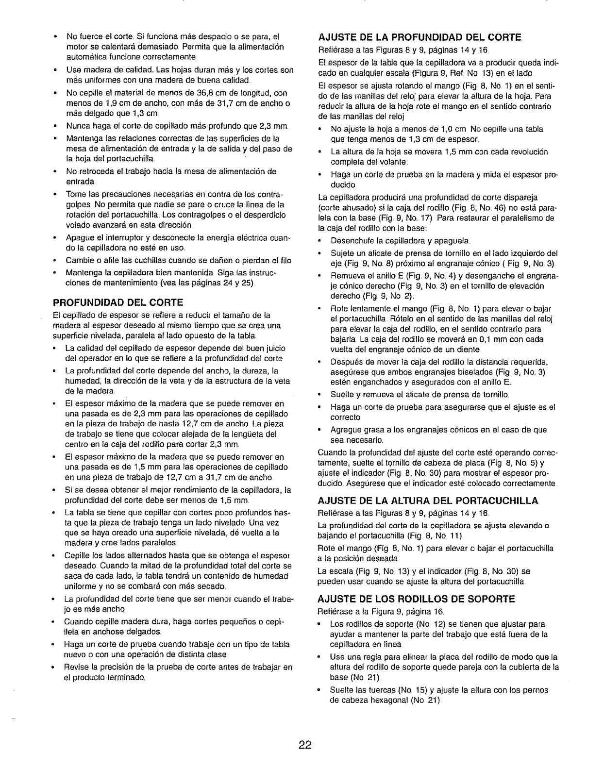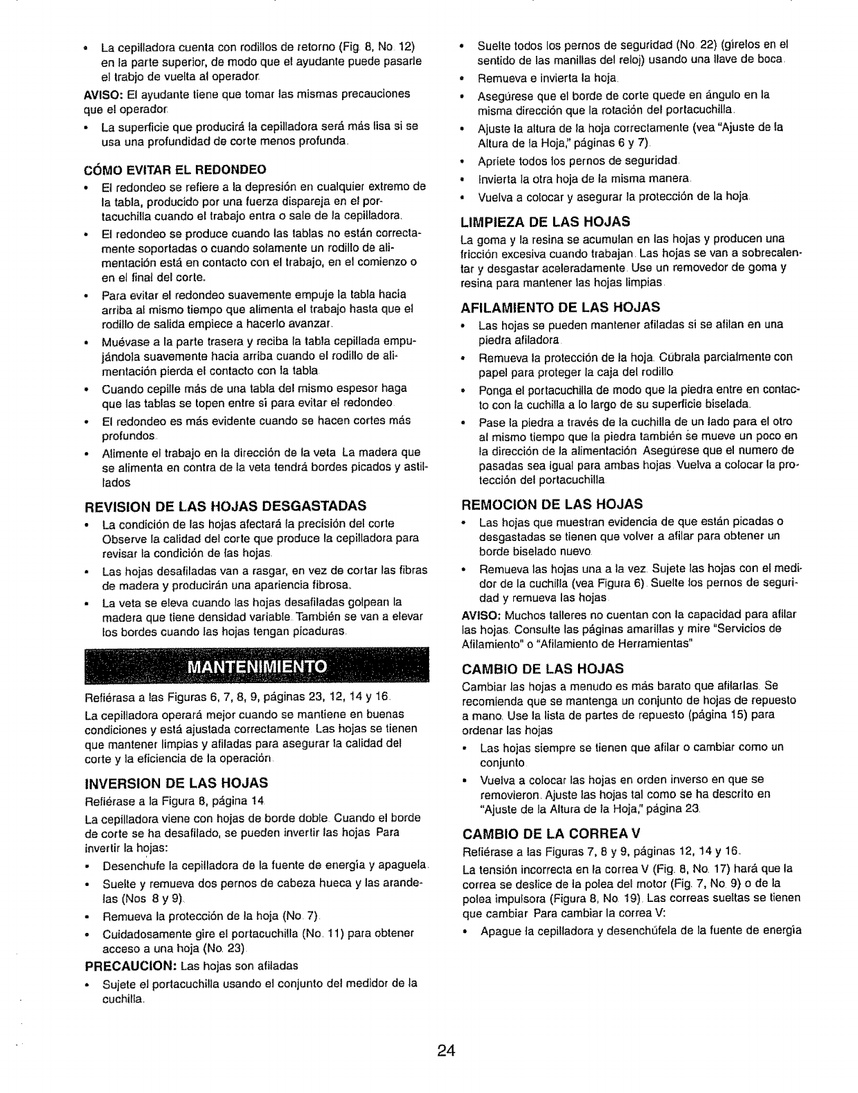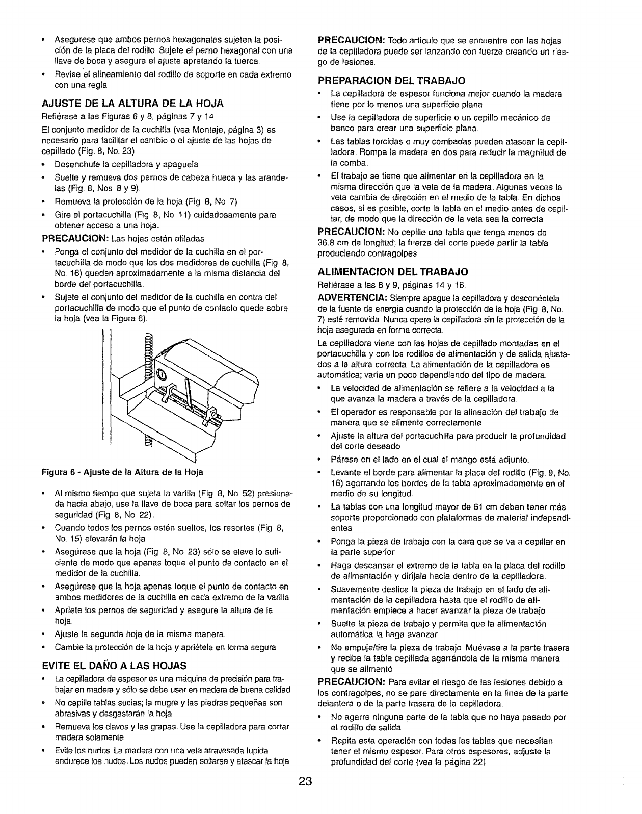 Vea "Ajuste de la Altura de fa Hoja" y "Manlenimiento!'