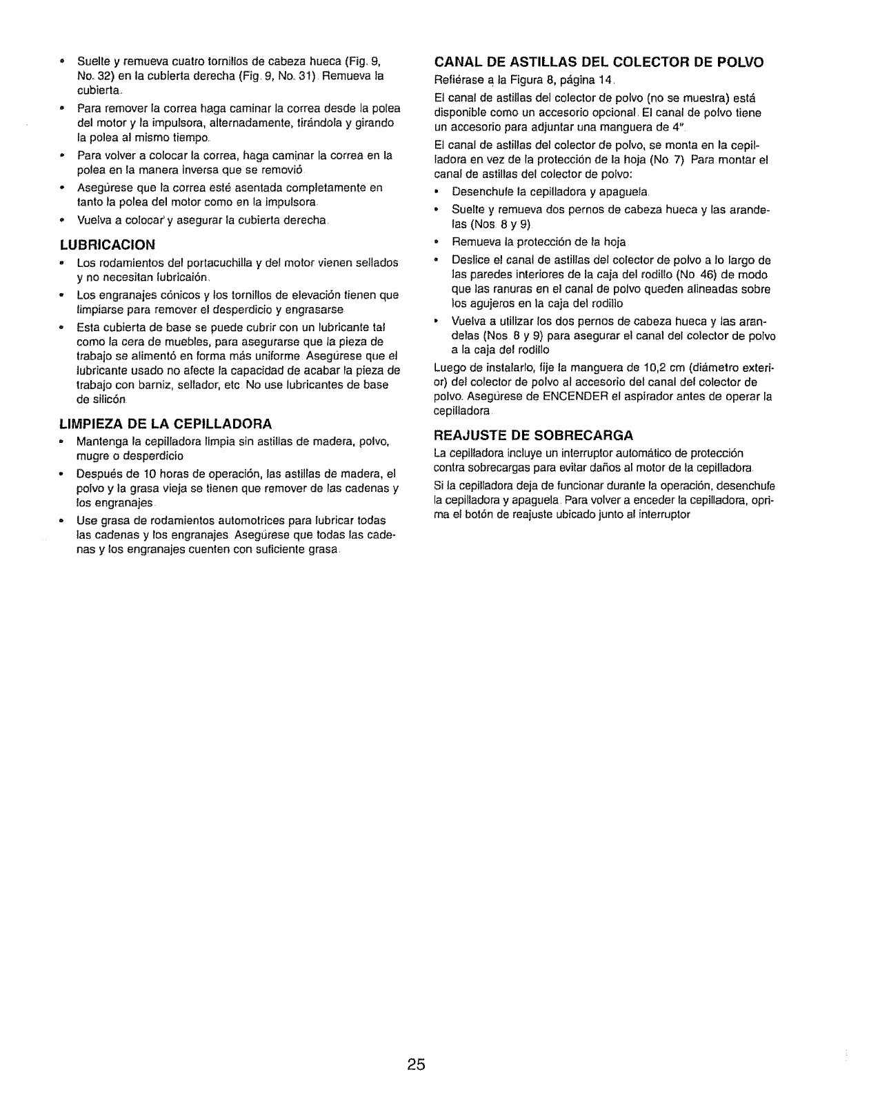 Vea "Ajuste de ]a Altura de la Hoja" y "Mantenimienlo_'