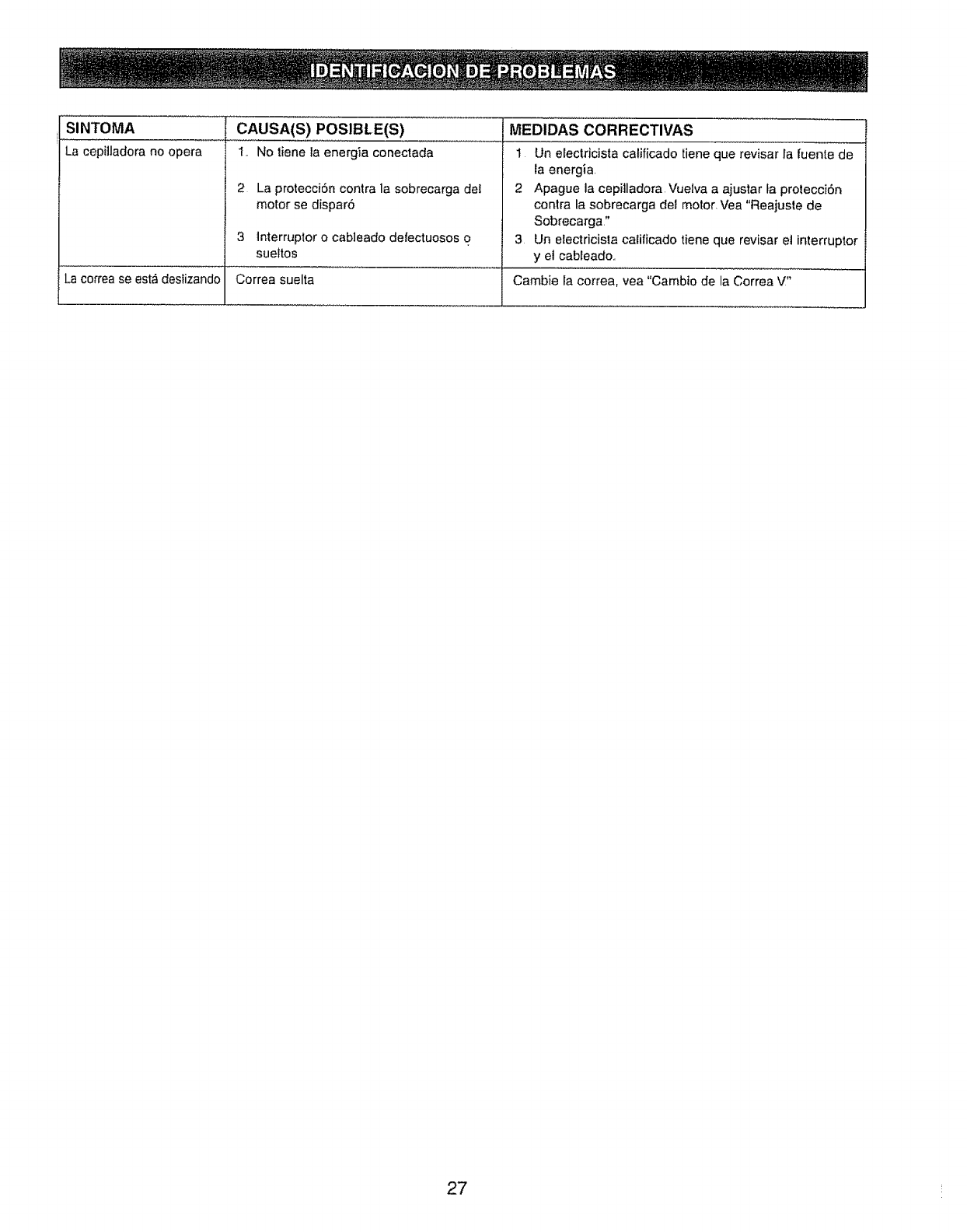 1 La saliente de la heja no es uniforme t Ajuste la satiente de la hoja. Vea "Ajuste de la Aitura de