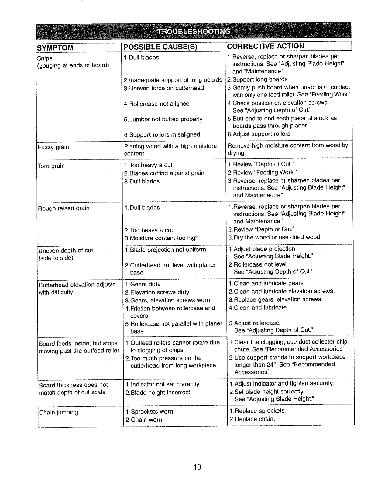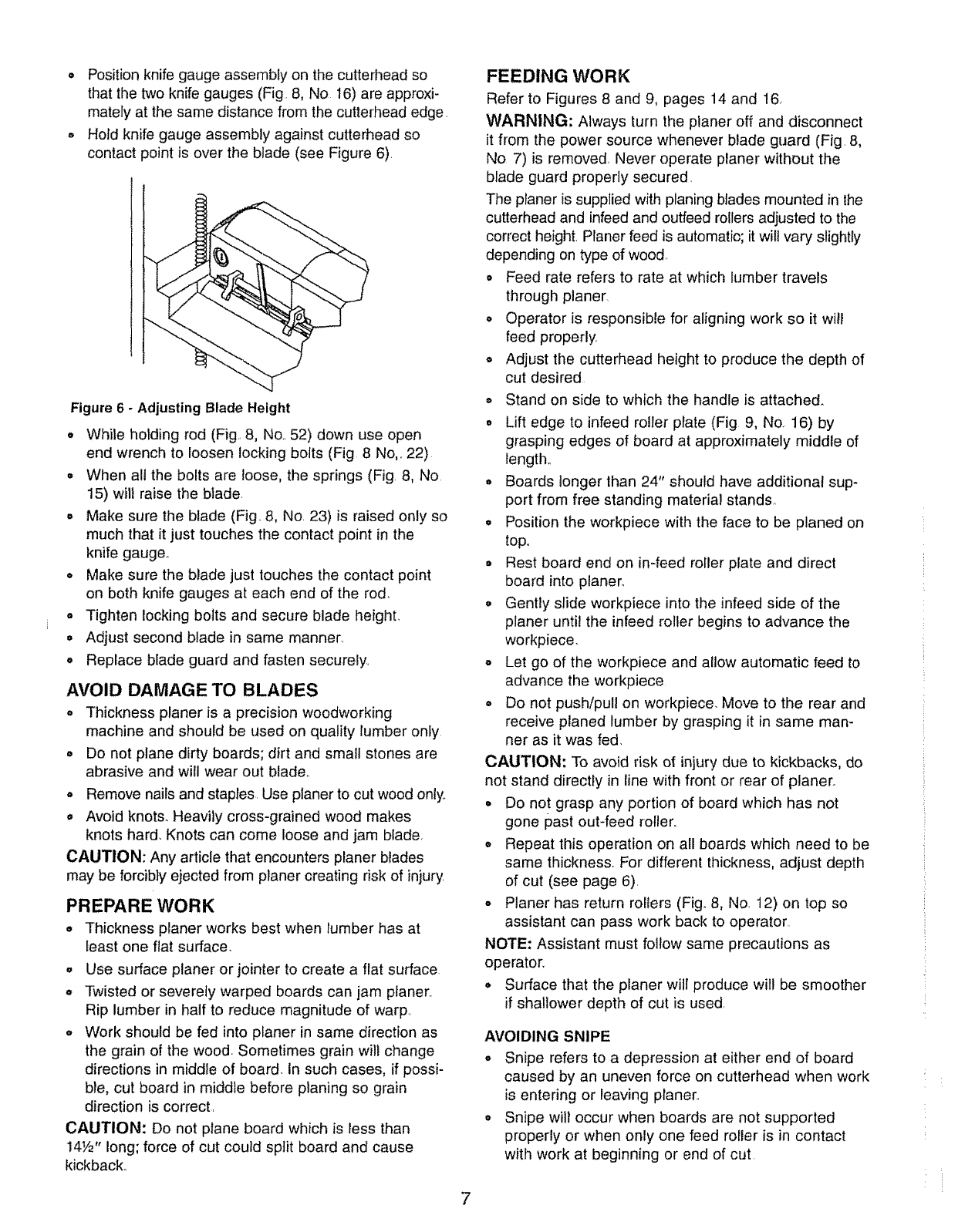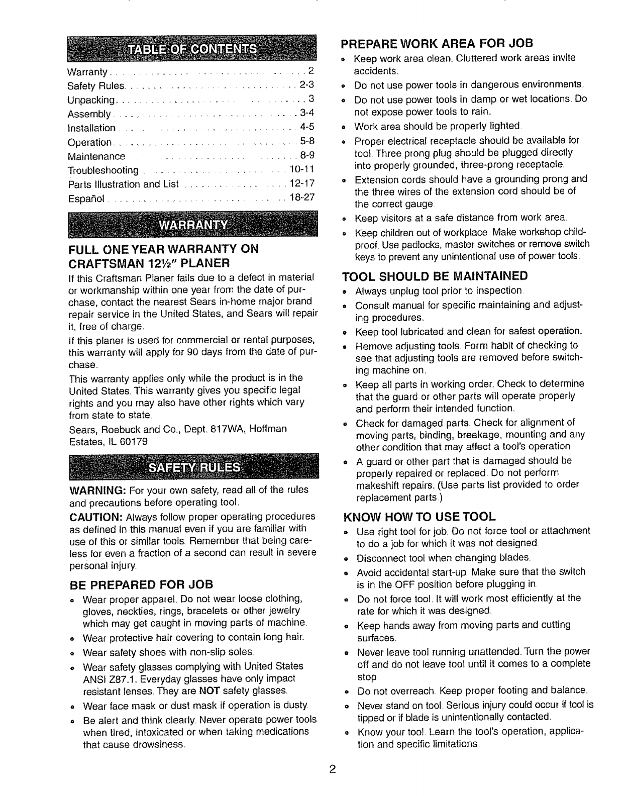 Craftsman 351233780 User Manual PLANER Manuals And Guides L1003343
