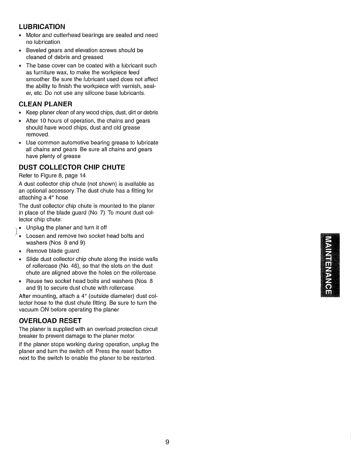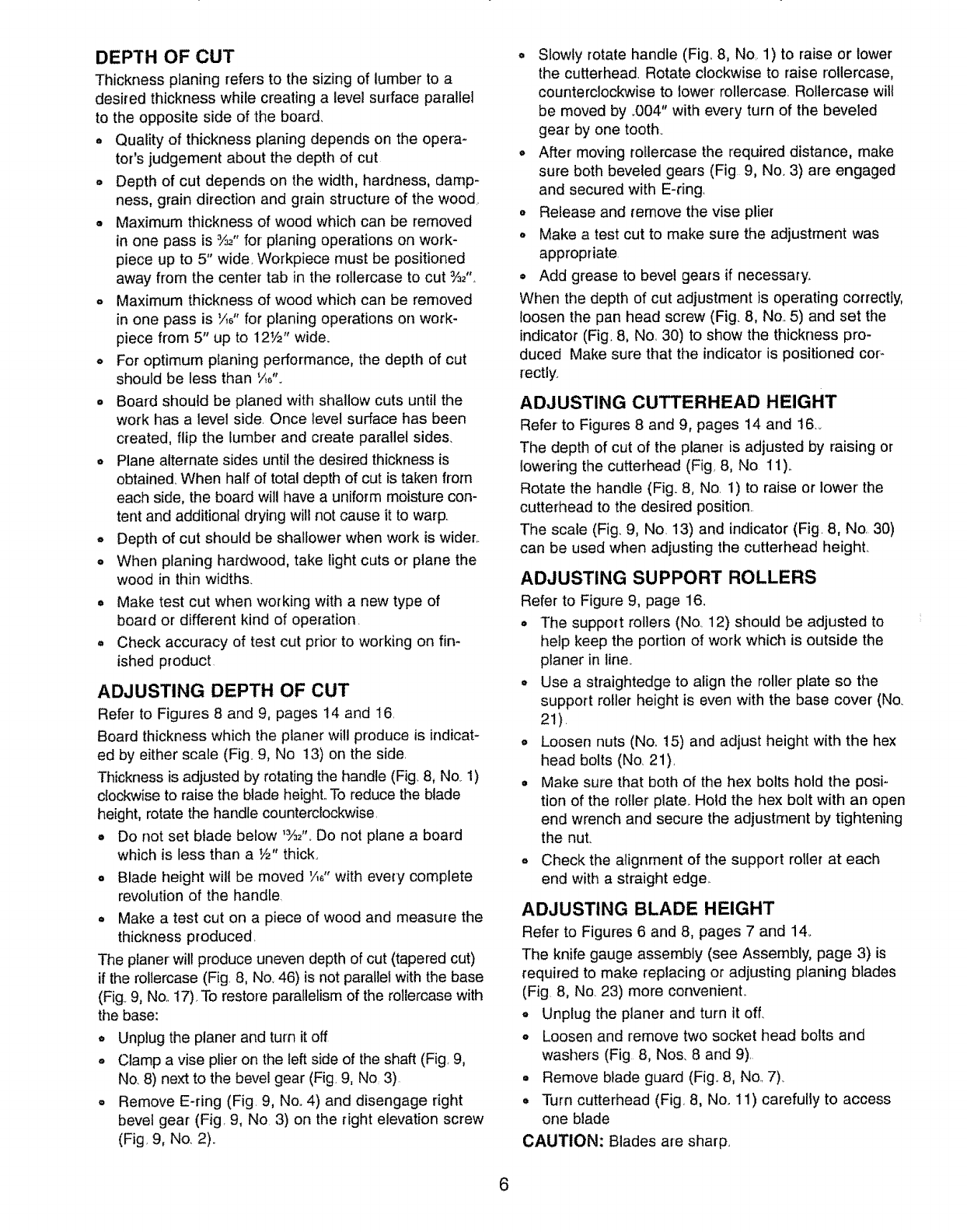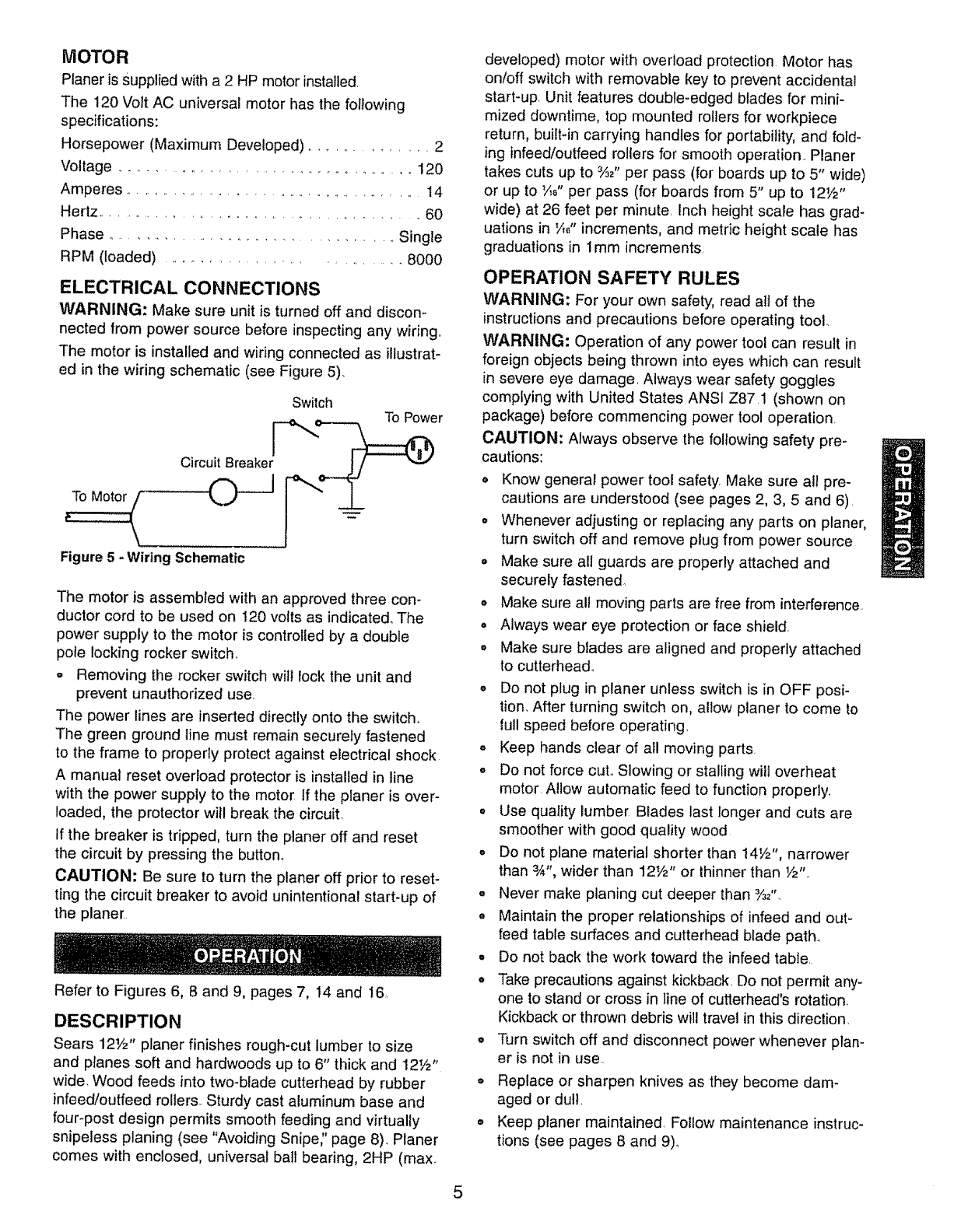 Craftsman 351233780 User Manual PLANER Manuals And Guides L1003343