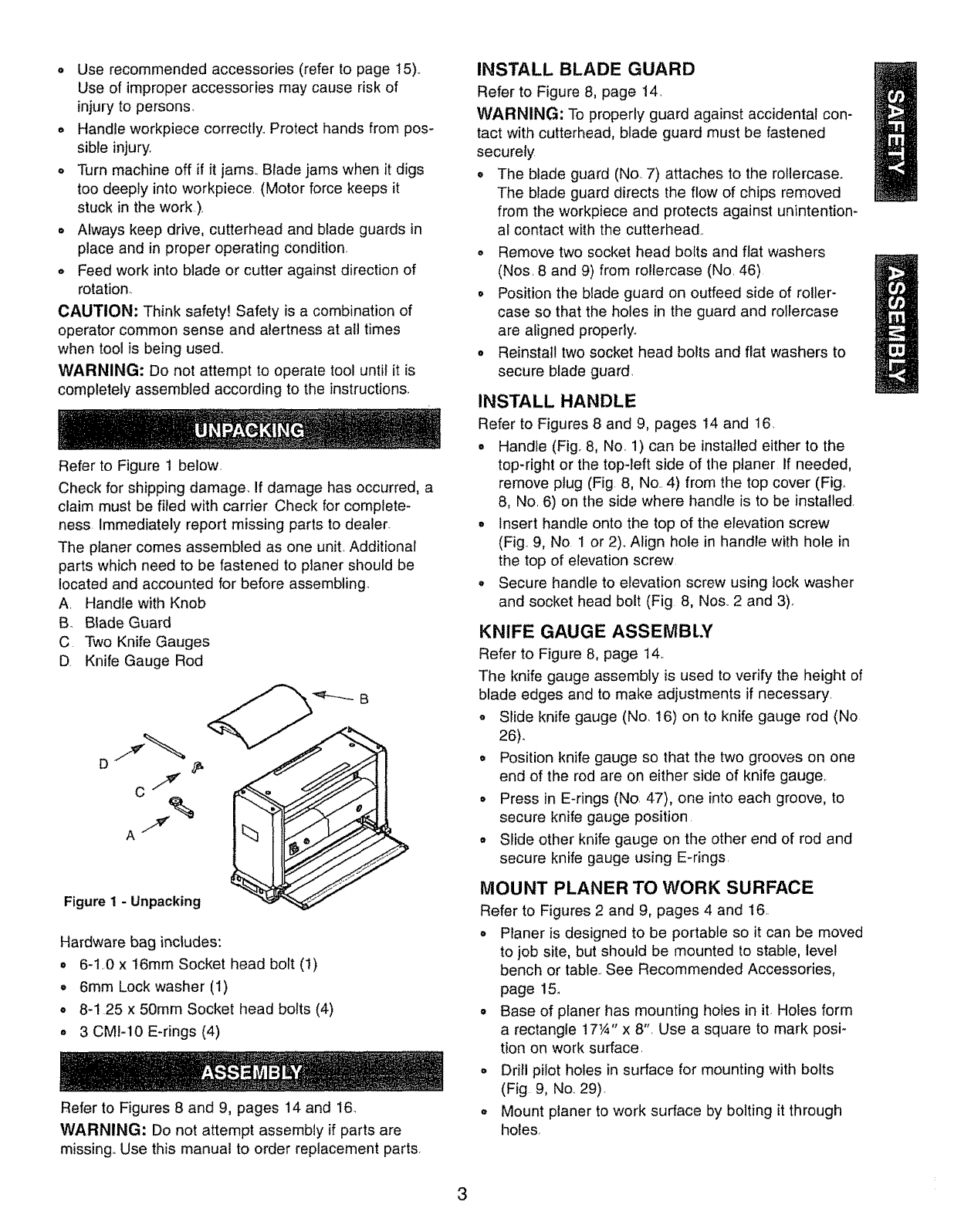 CRAFTSMAN Planer Manual L1003343 CRAFTSMAN Planer Owner's Manual, CRAFTSMAN Planer installation guides