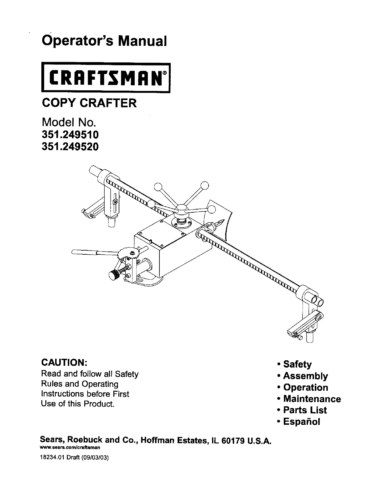User Manual: Craftsman 351249510 351249510 CRAFTSMAN COPY CRAFTER - Manuals and Guides View the owners manual for your CRAFTSMAN COPY CRAFTER #351249510. Home:Tool Parts:Craftsman Parts:Craftsman COPY CRAFTER Manual