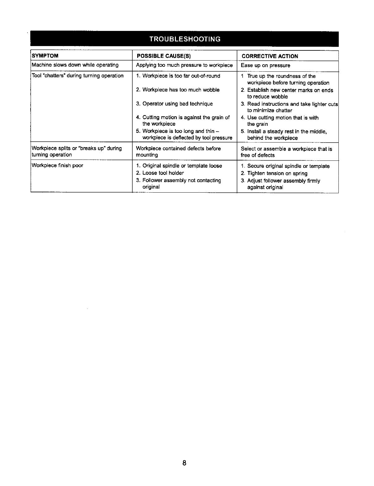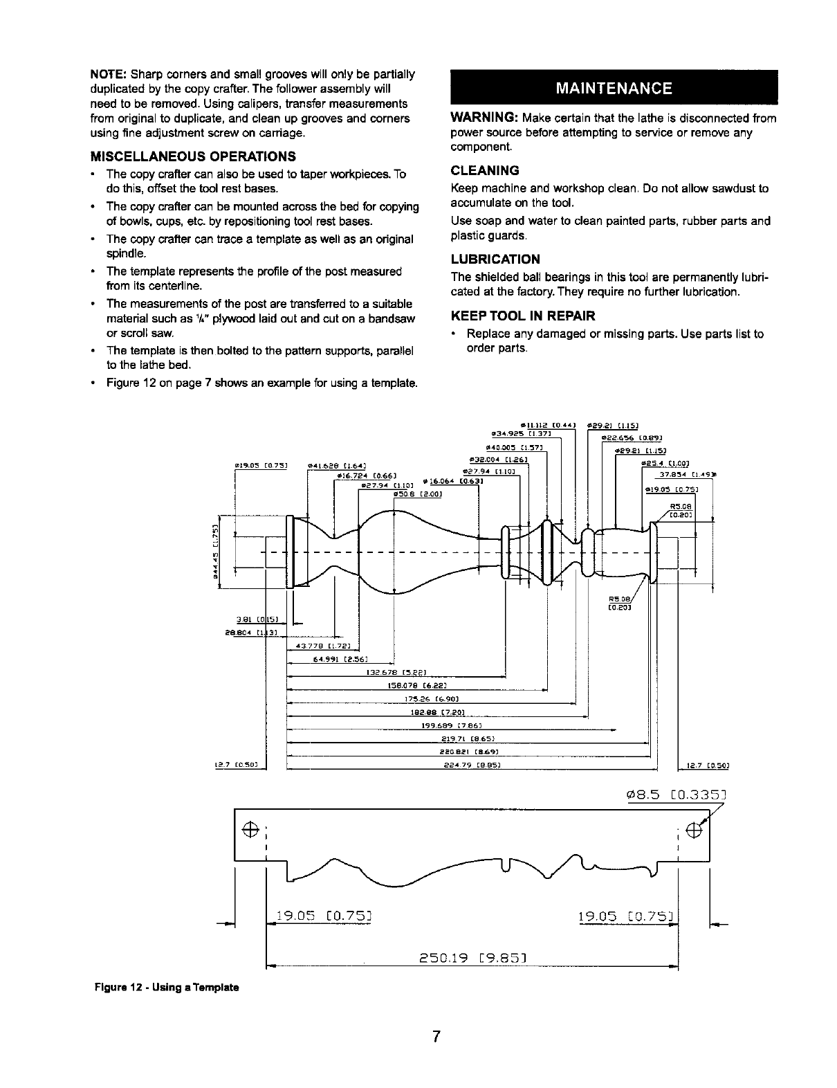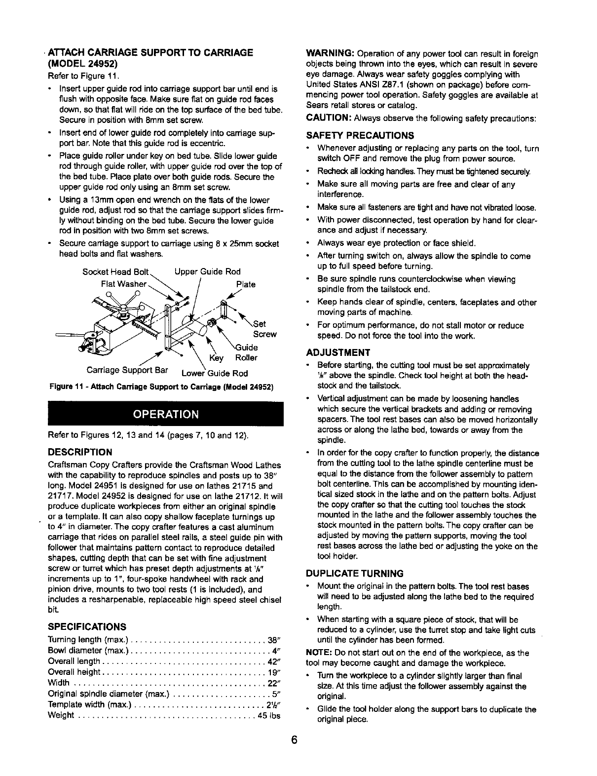 •Never adjust copy crafter while lathe is running. Disconnect