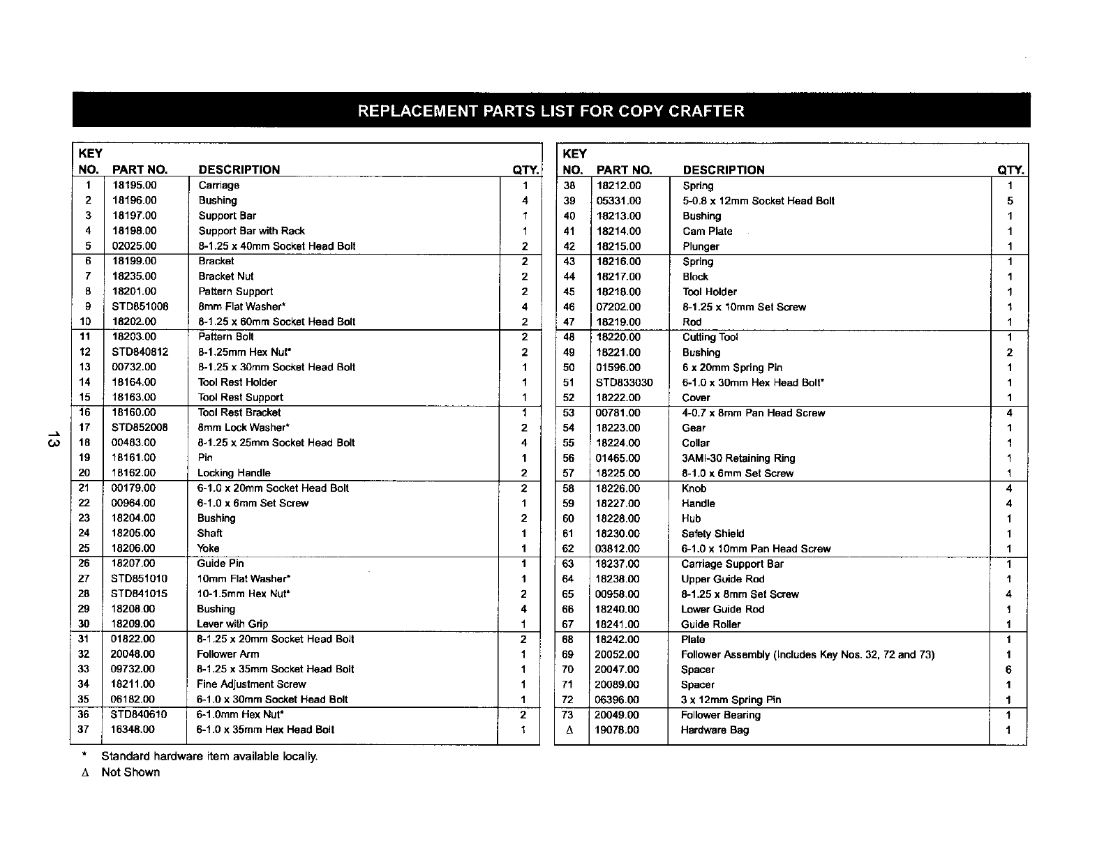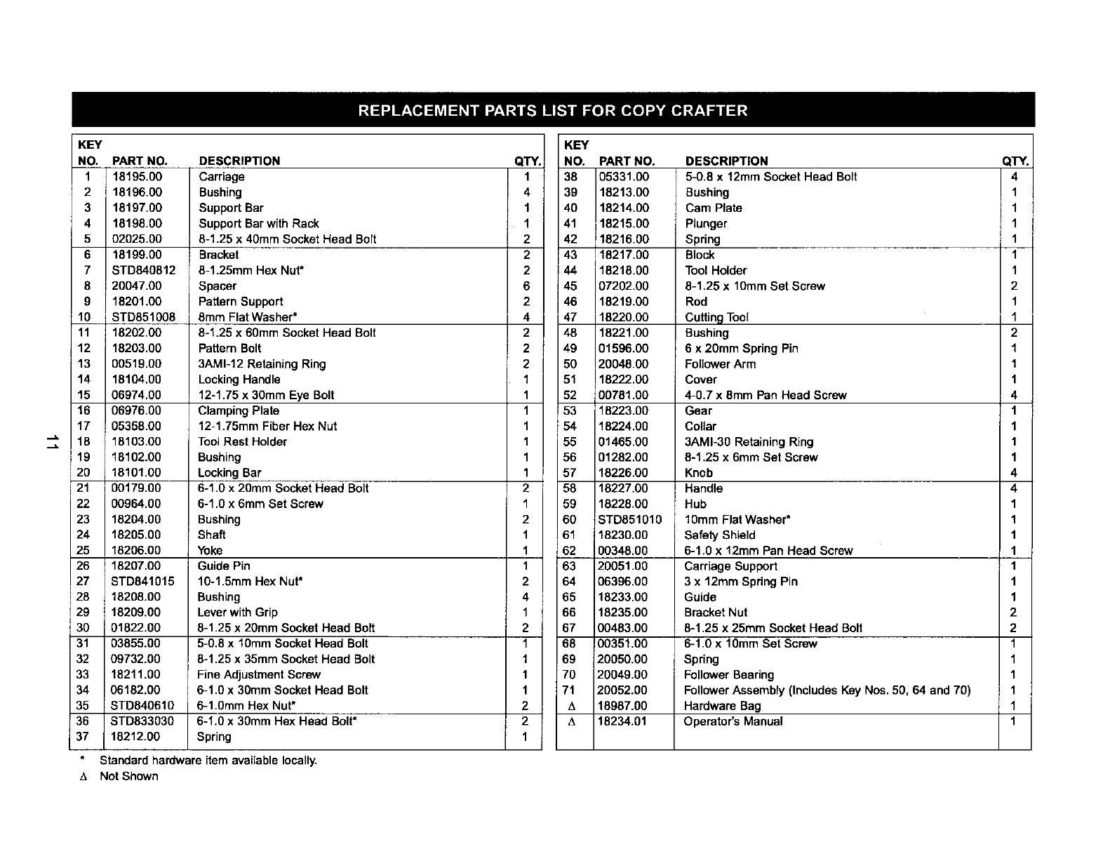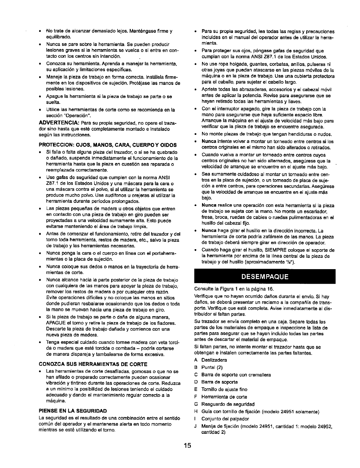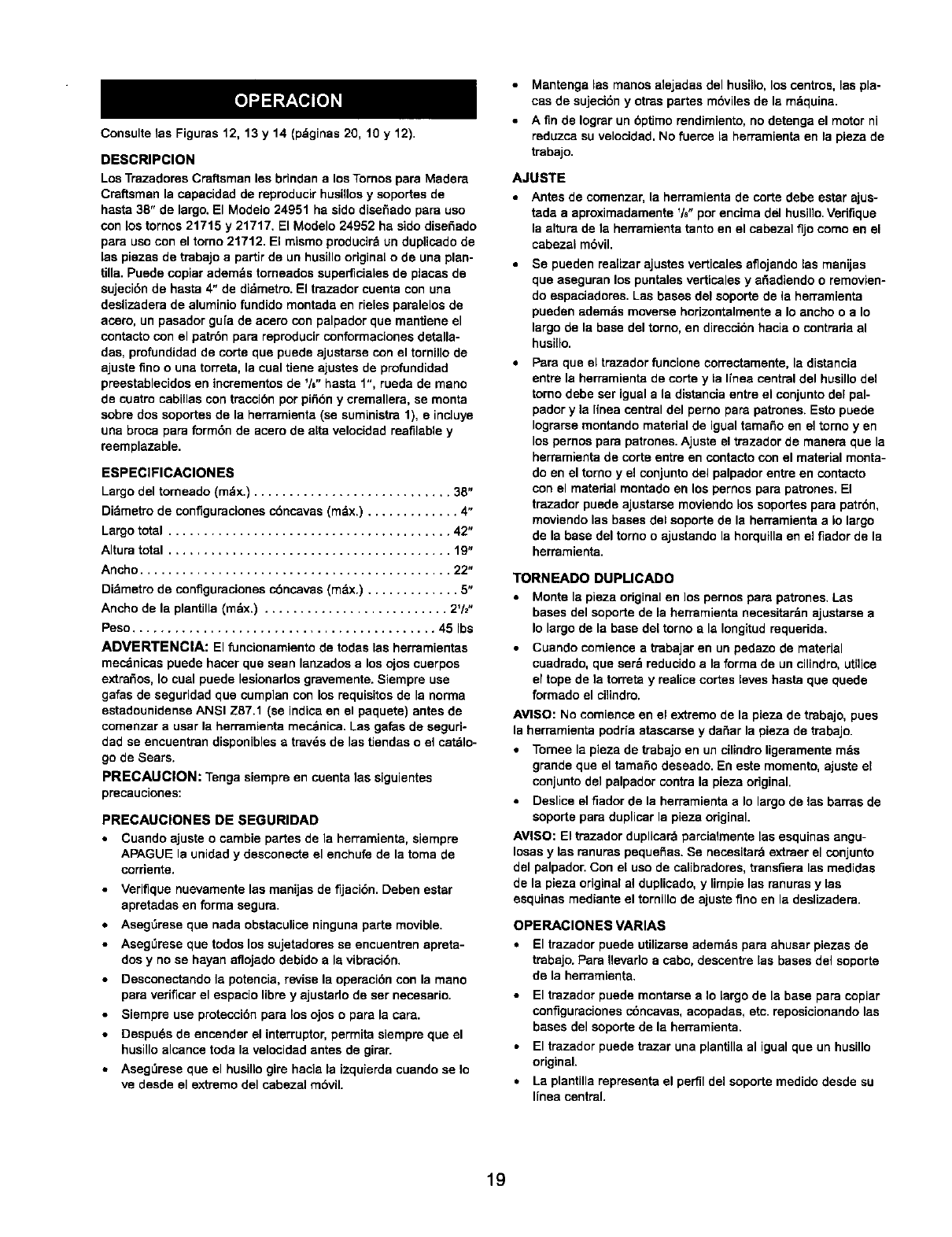 •Never adjust copy crafter while lathe is running. Disconnect