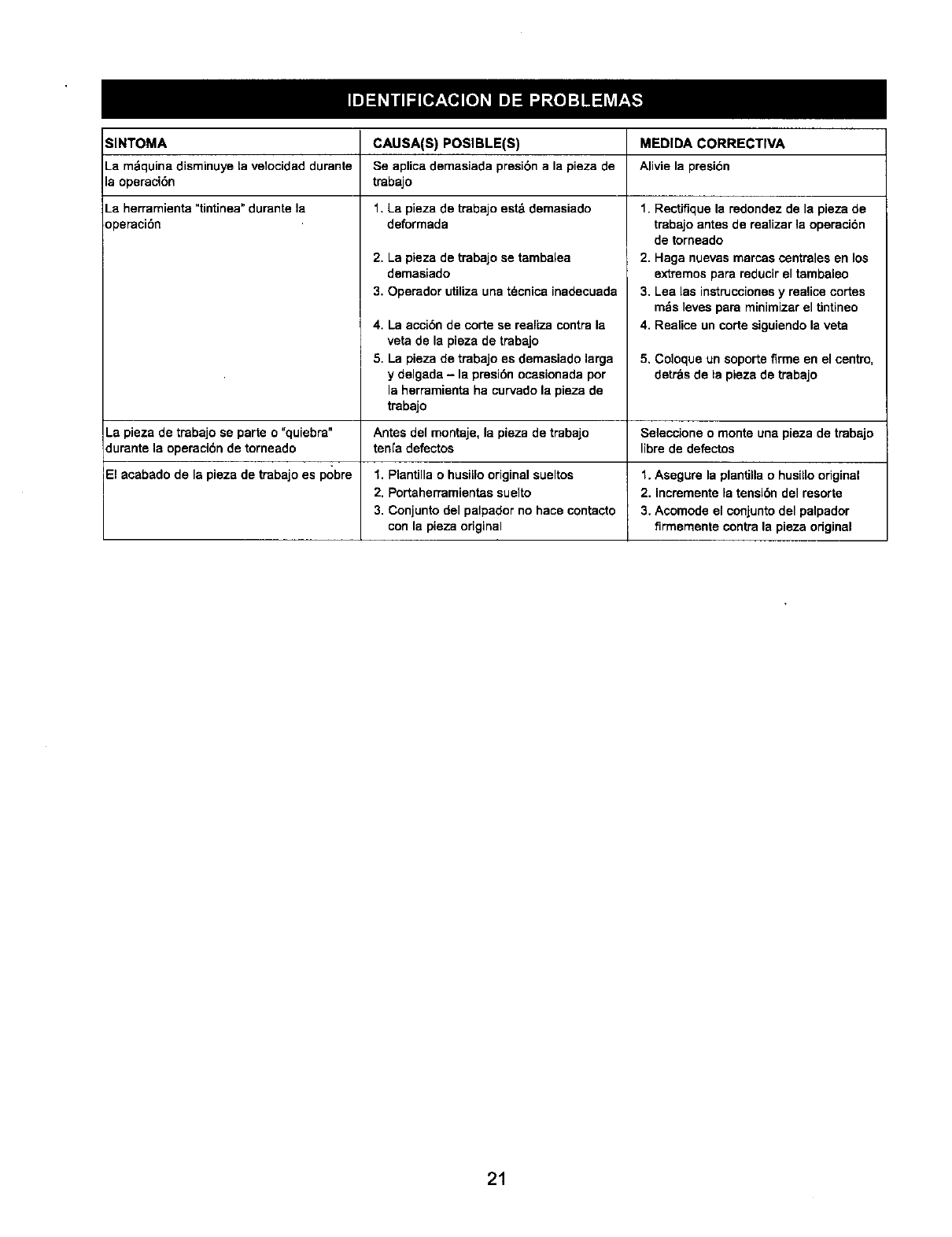 1. La pieza de trabajo est_ demasiado