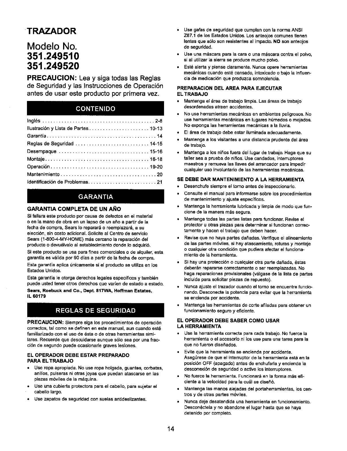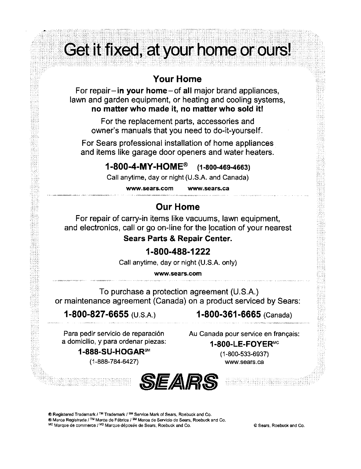 ®Marca Registrada /TM Marca de Fabrica /su Marca de Servicio de Sears, Roebuck and Co.