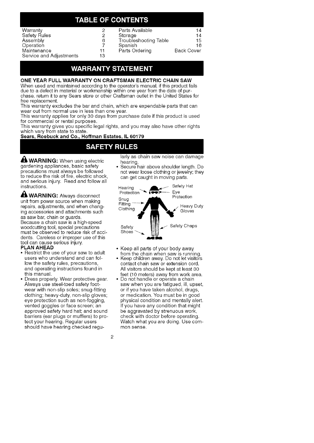 ONEYEARFULL WARRANTY ON CRAFTSMAN ELECTRIC CHAIN SAW