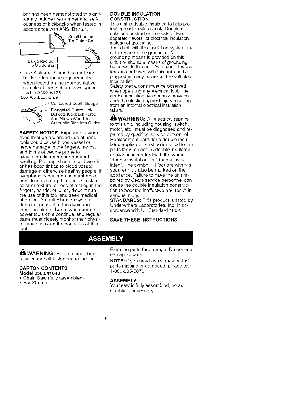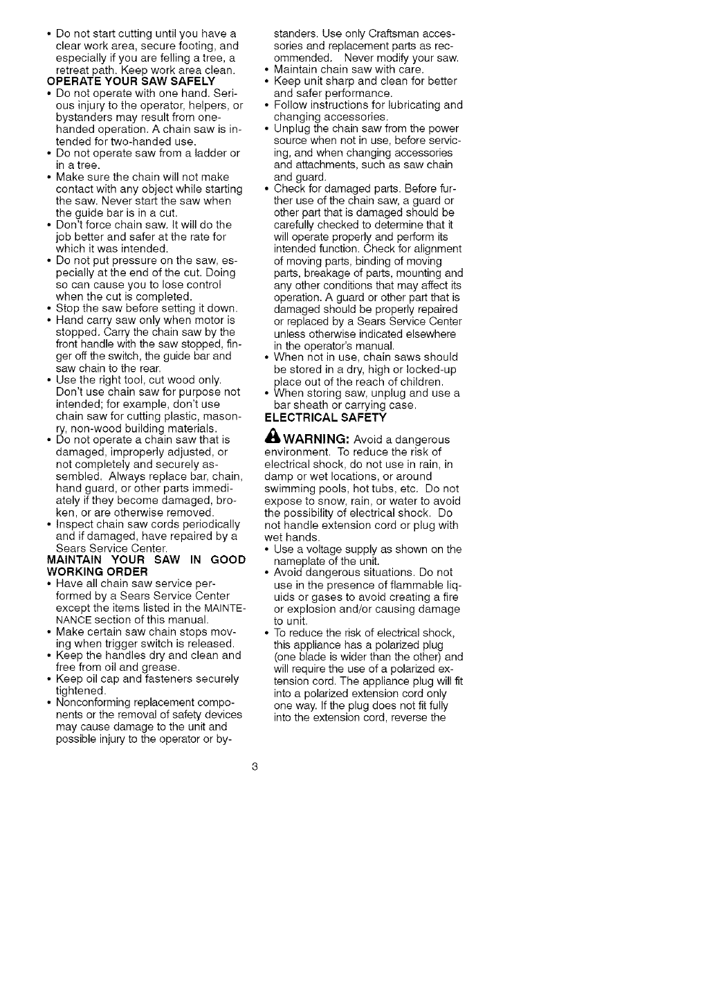 Craftsman 358341040 User Manual ELECTRIC CHAINSAW Manuals And Guides L0609406