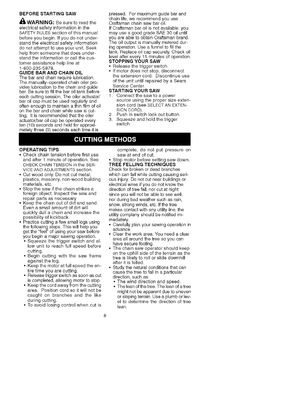 CRAFTSMAN Chainsaw, Electric Manual L0609406 CRAFTSMAN Chainsaw, Electric Owner's Manual, CRAFTSMAN Chainsaw, Electric installation guides