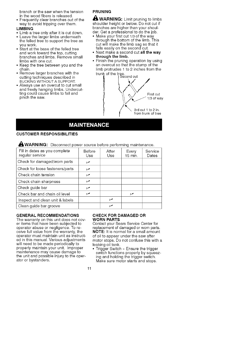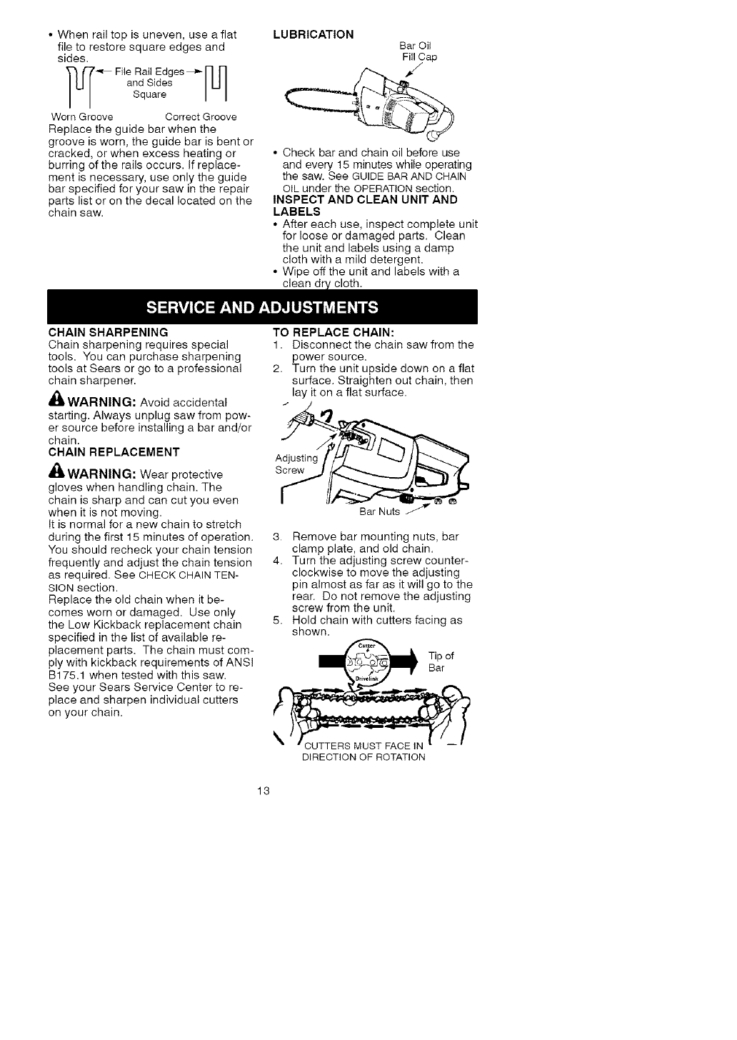 User Manual: Craftsman 358341040 358341040 CRAFTSMAN ELECTRIC CHAINSAW - Manuals and Guides View the owners manual for your CRAFTSMAN ELECTRIC CHAINSAW #358341040. Home:Lawn & Garden Parts:Craftsman Parts:Craftsman ELECTRIC CHAINSAW Manual