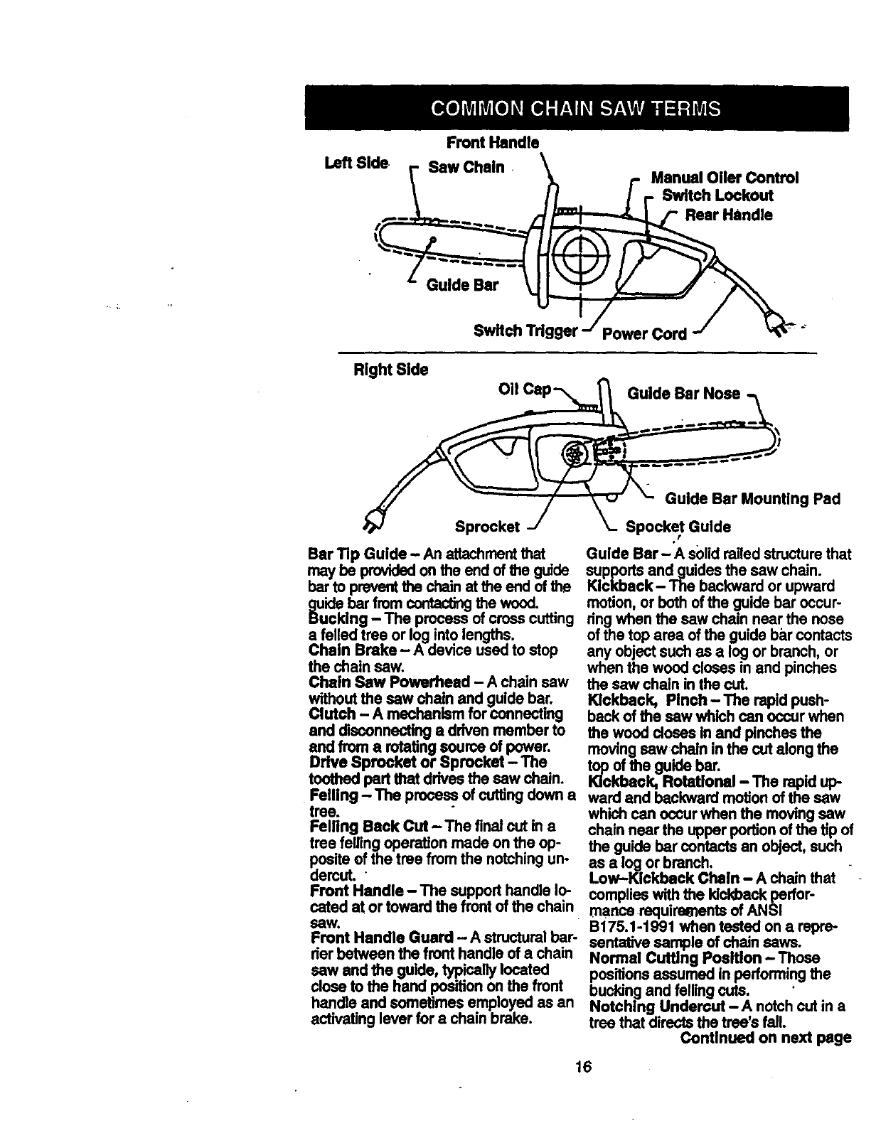 handed operation. A chain saw is in-