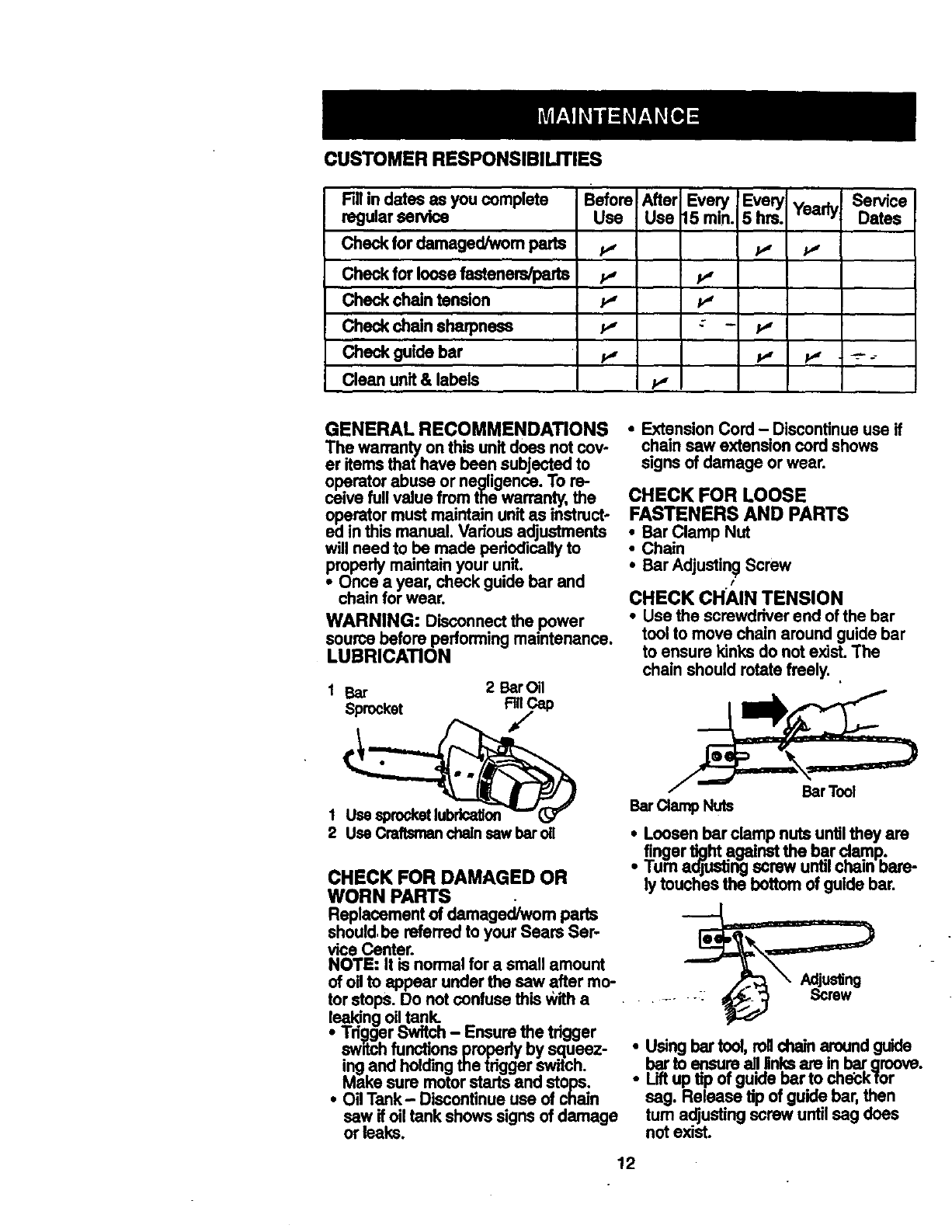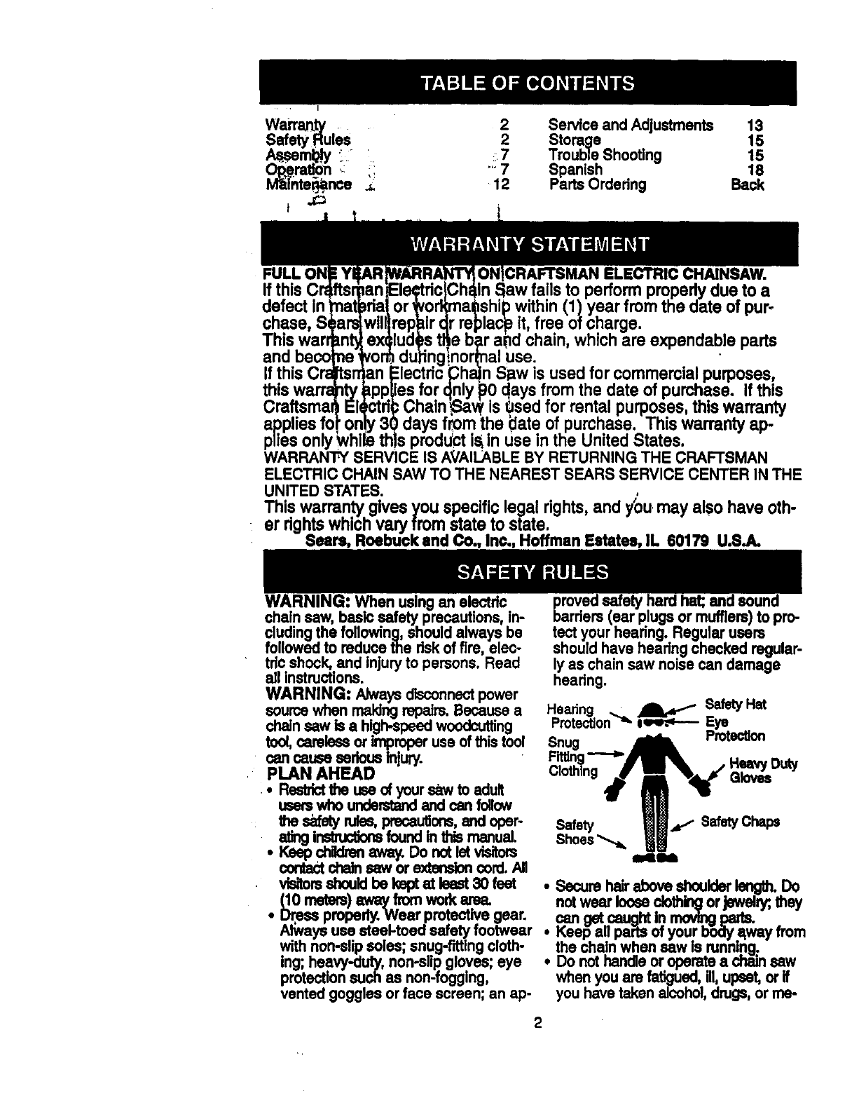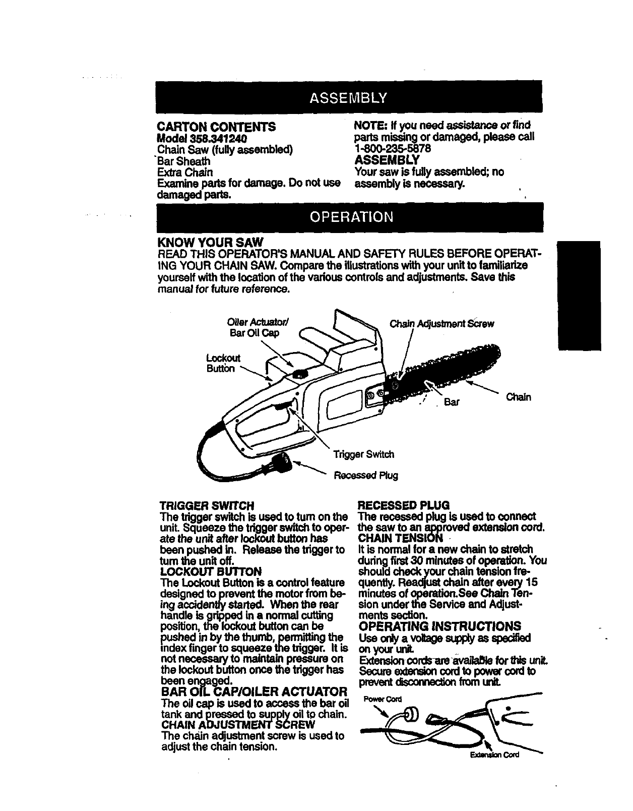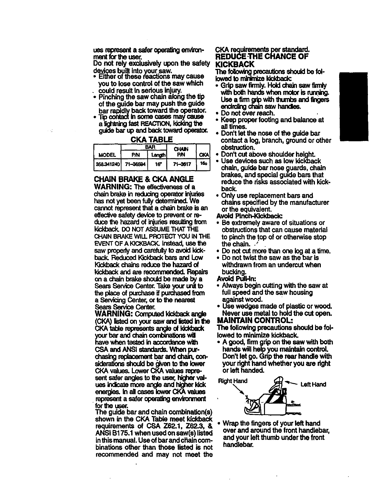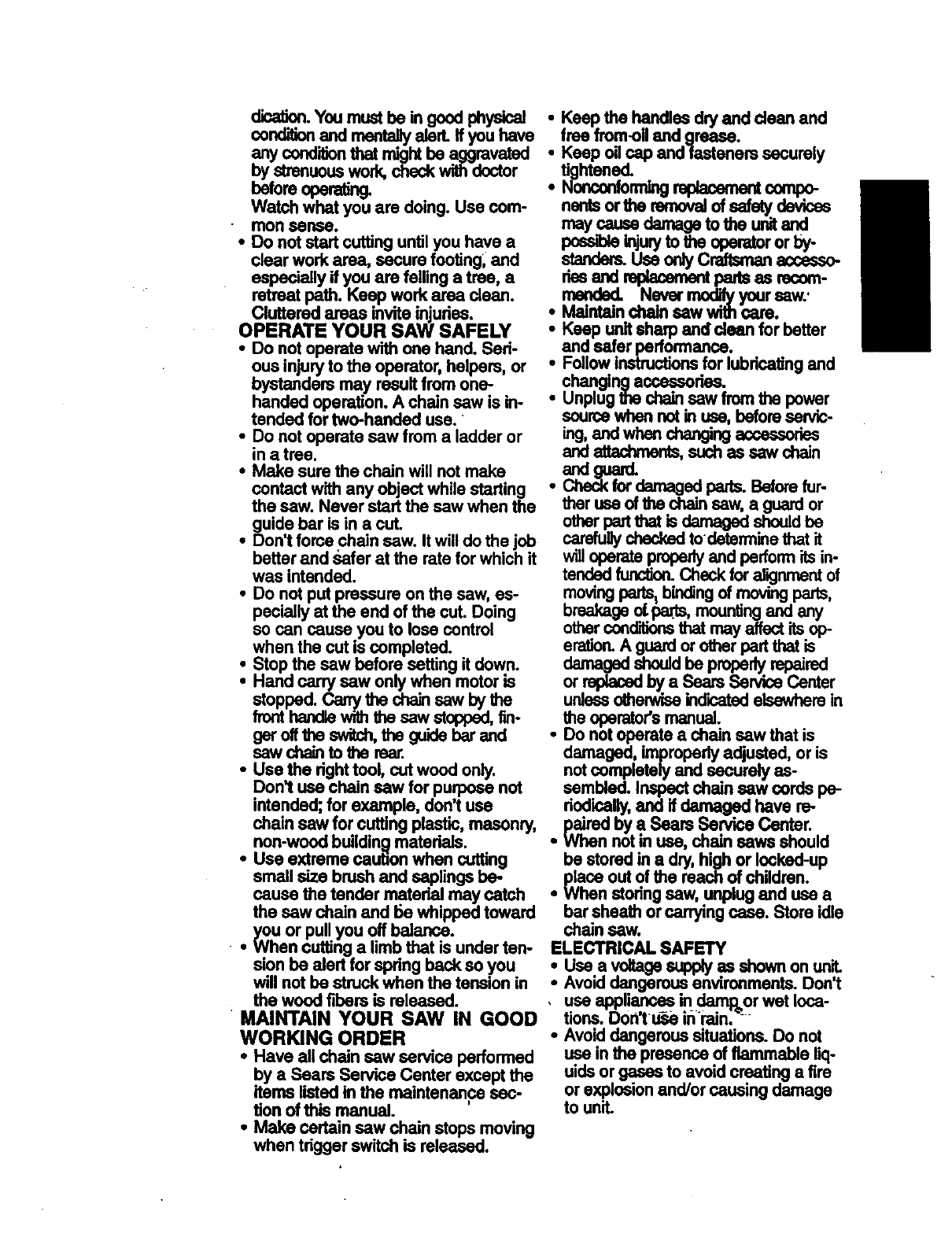 Craftsman 358341240 User Manual ELECTRIC CHAIN SAW Manuals And Guides 98110061