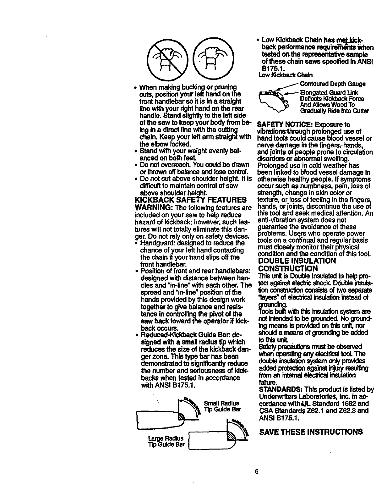 Reduced Kickback Guide Bar - A bucldngto pivotthe saw and maintain