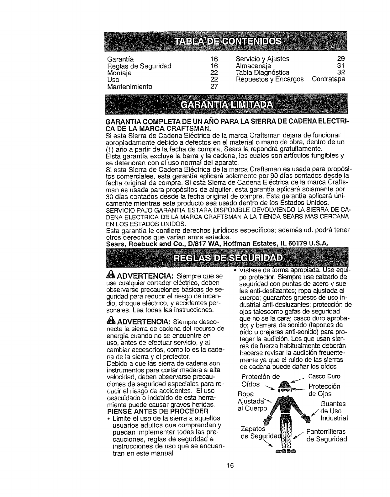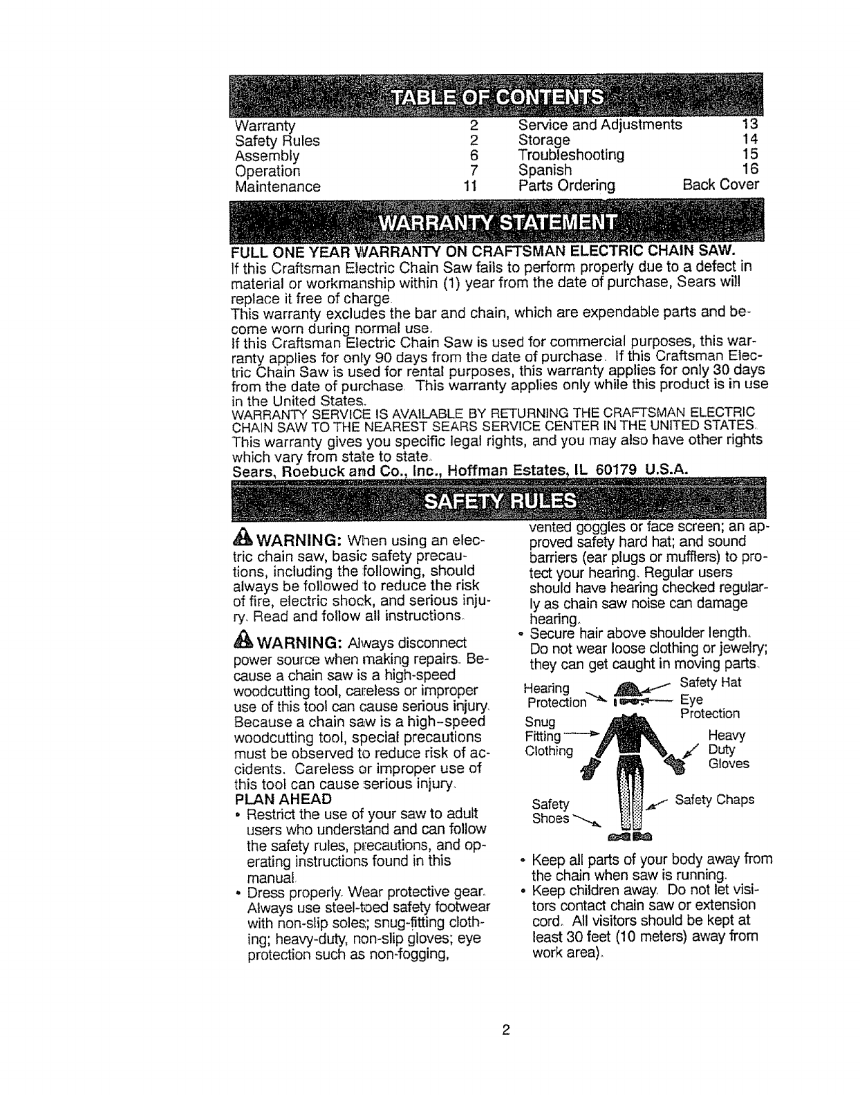 FULL ONE YEAR WARRANTY ON CRAFTSMAN ELECTRIC CHAIN SAW.
