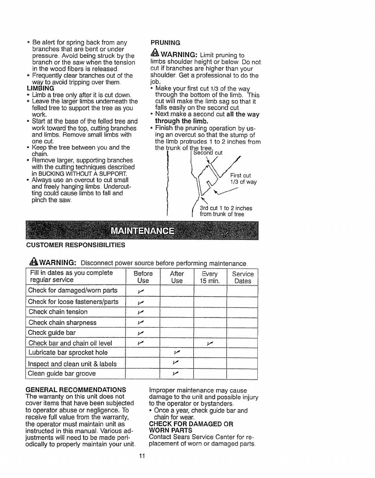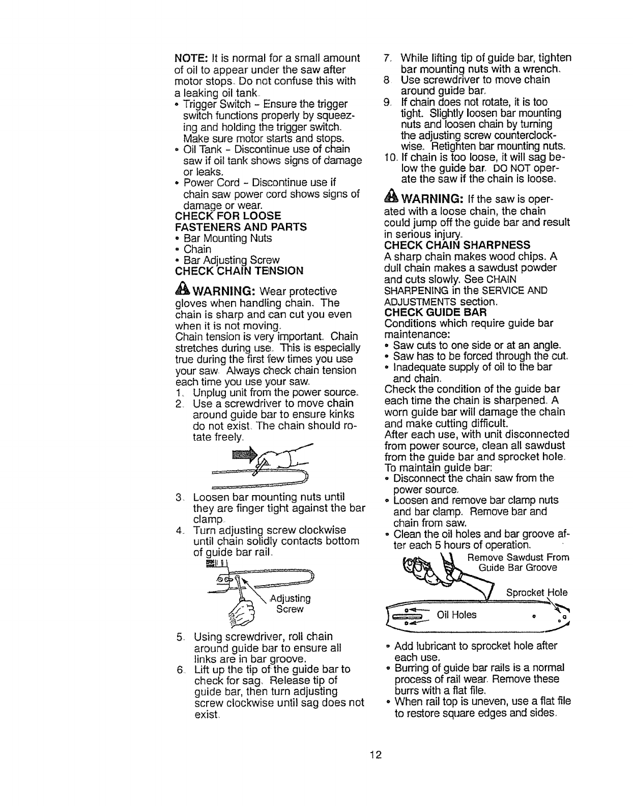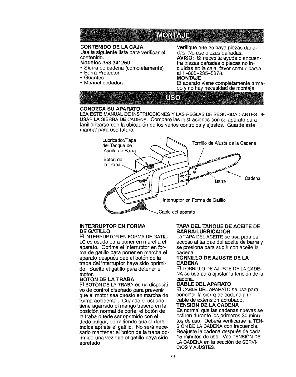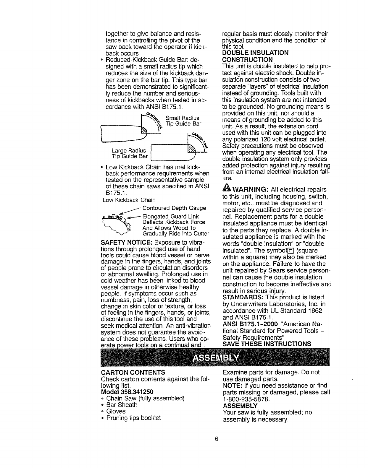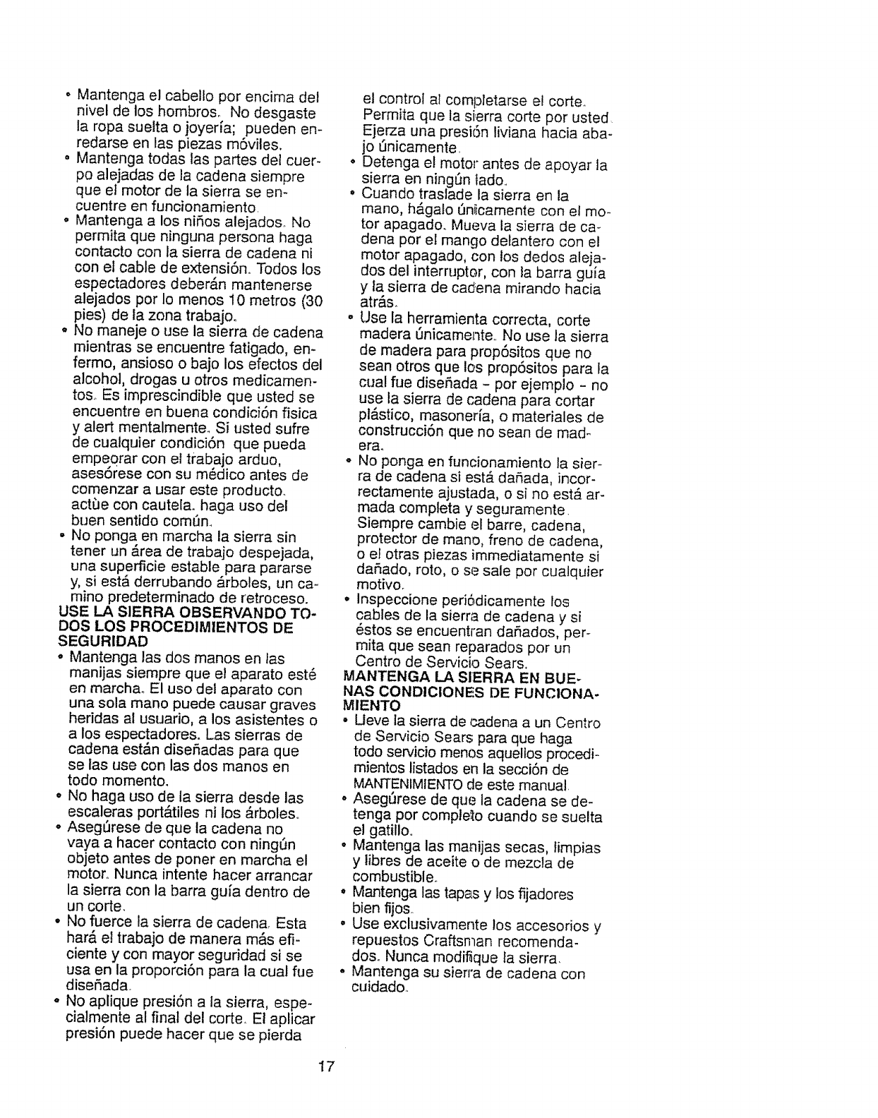 Craftsman 358341250 User Manual CHAINSAW Manuals And Guides L0910177