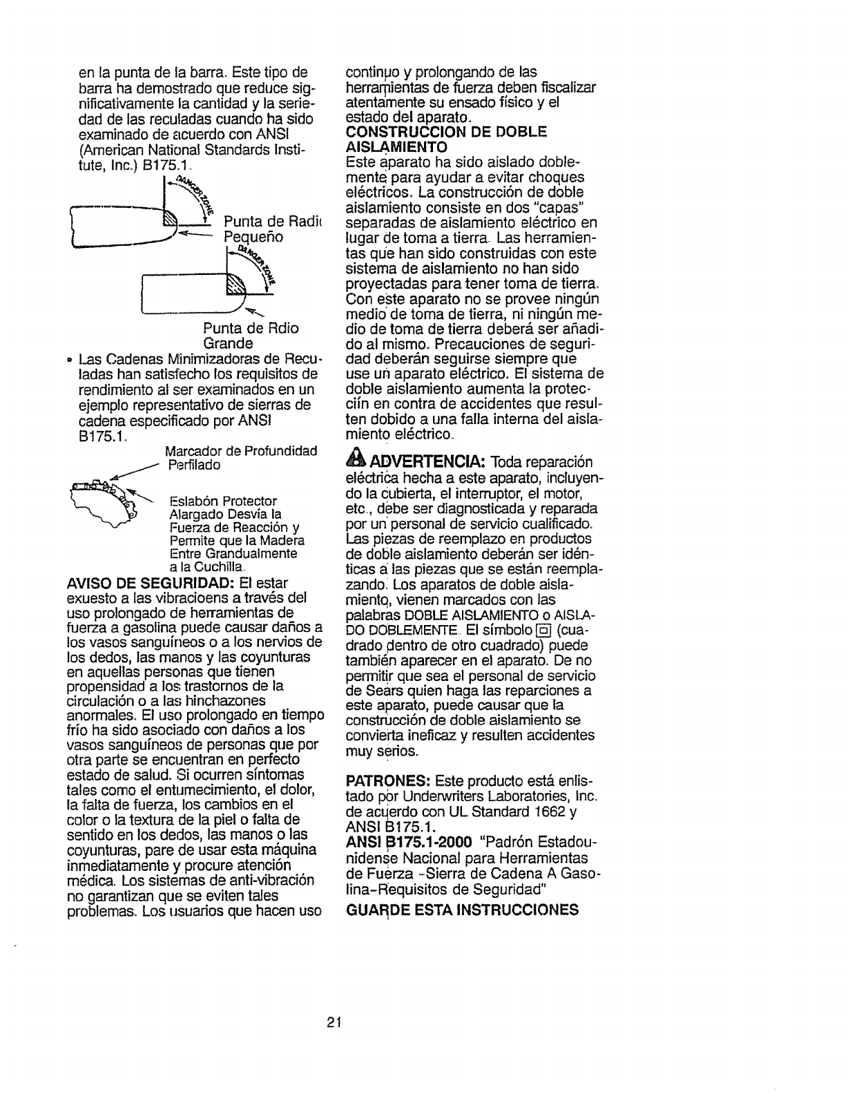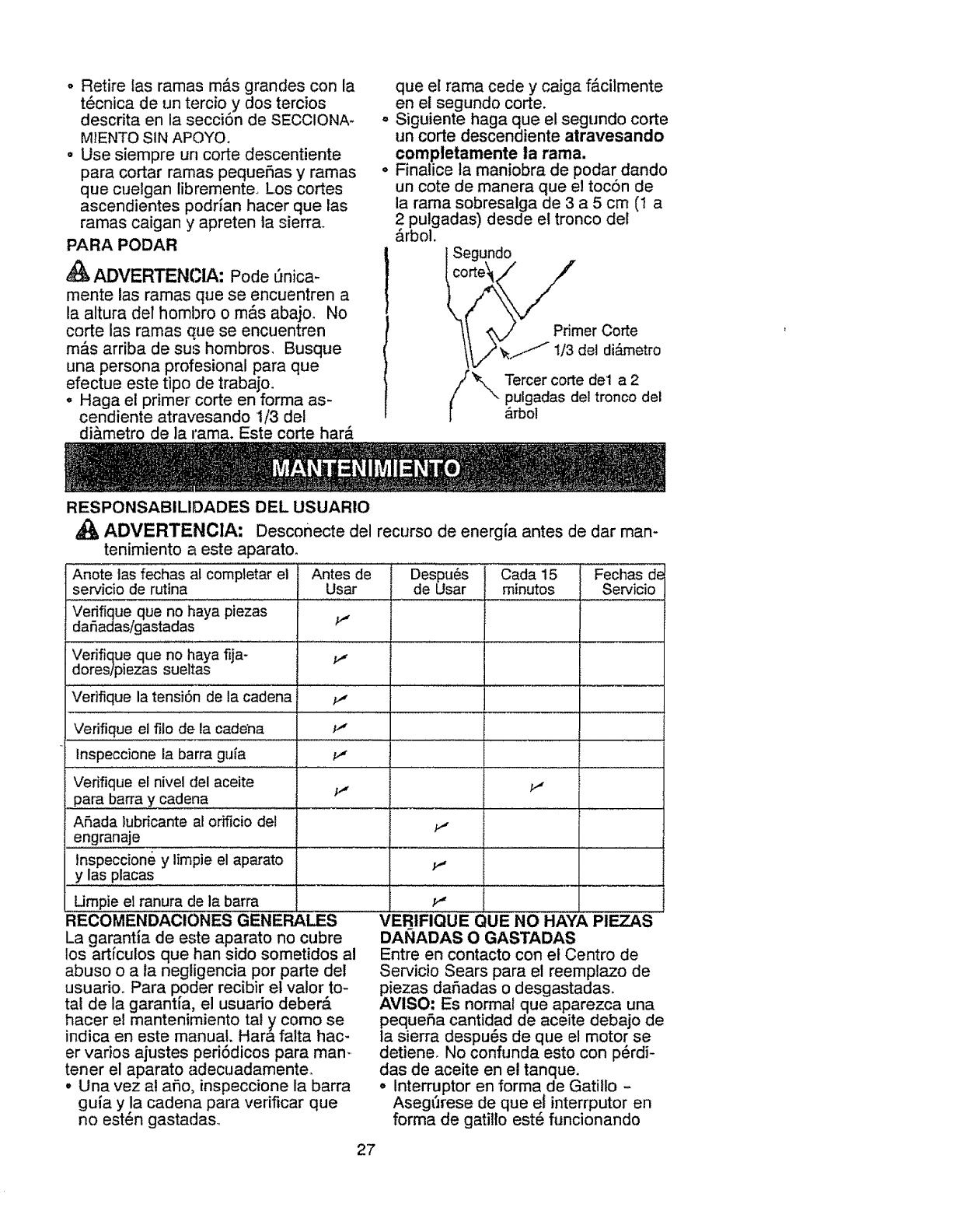 _.ngulo. 2. Cadena no esta afilada. 2.