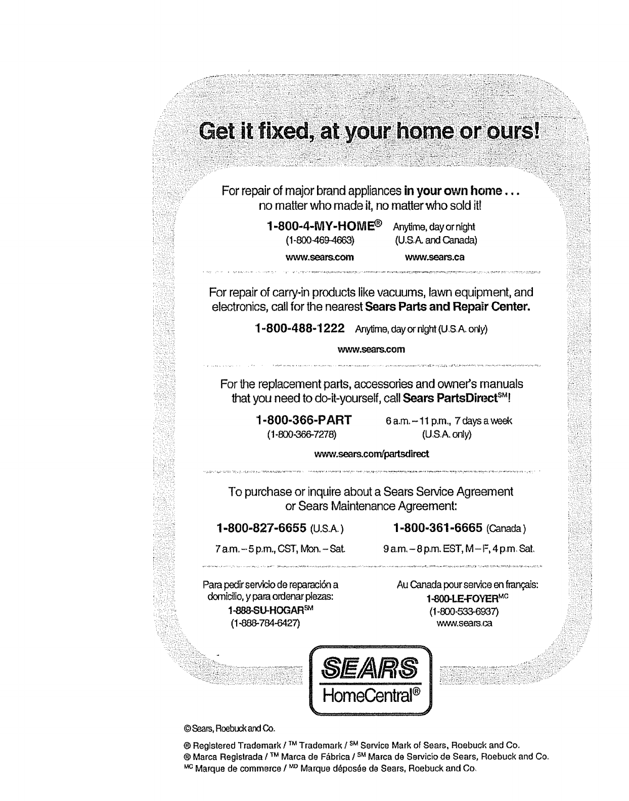 (9 Registered Trademark I_MTrademark /sMService Mark of Sears, Roebuck and Coo