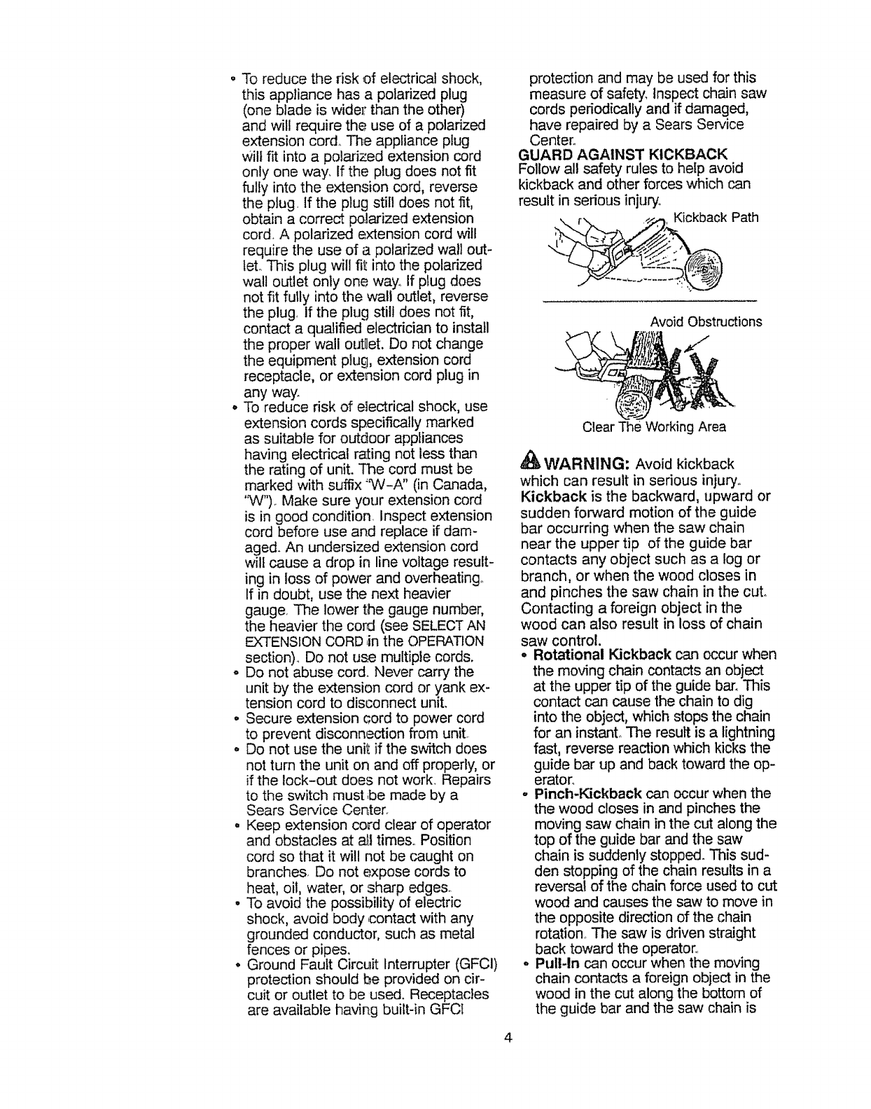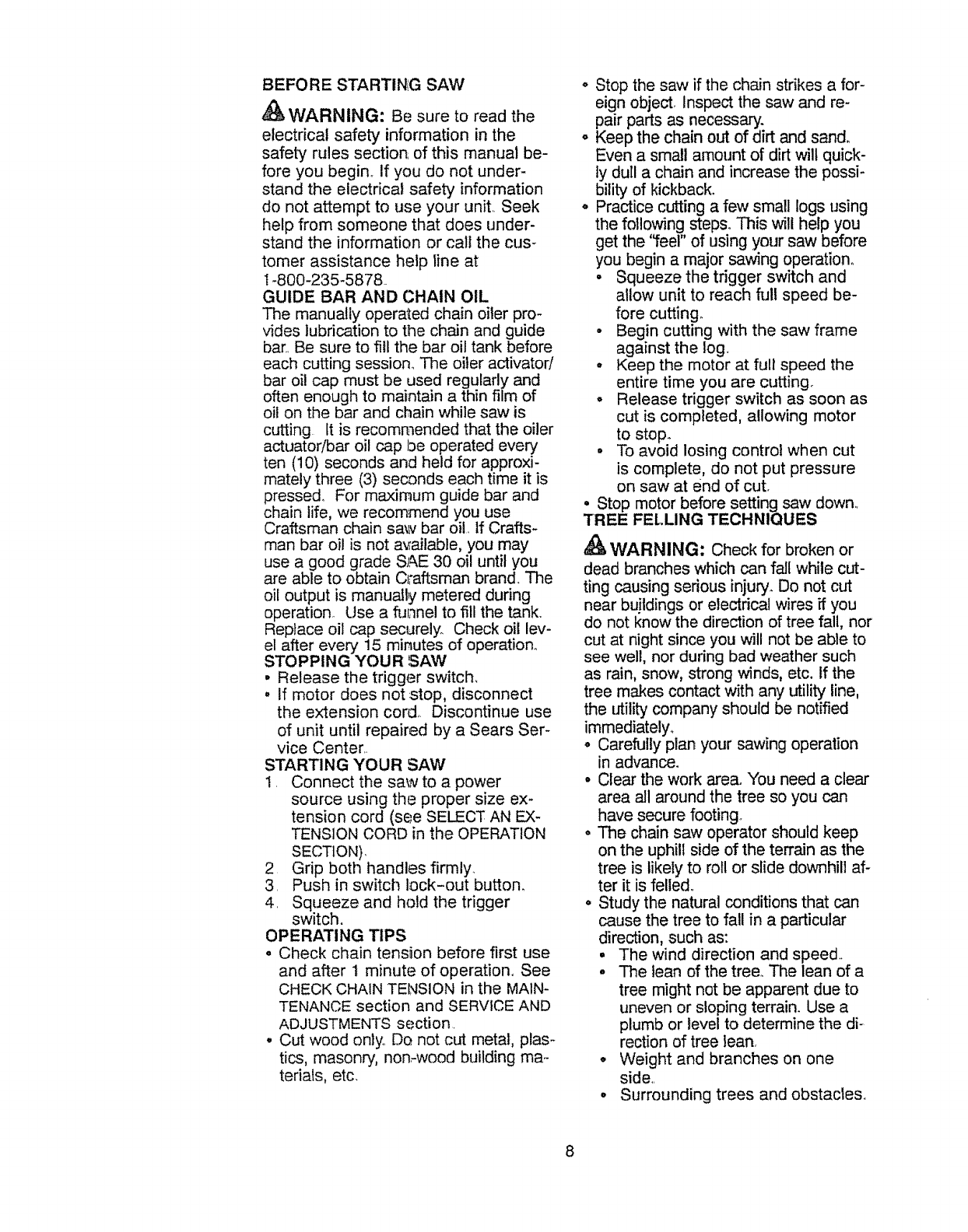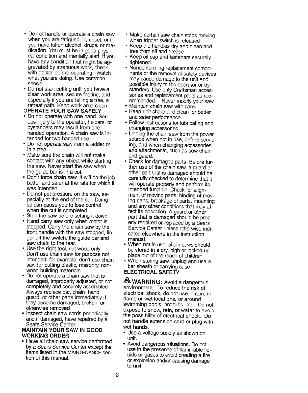 CRAFTSMAN Chainsaw, Electric Manual L0910177 CRAFTSMAN Chainsaw, Electric Owner's Manual, CRAFTSMAN Chainsaw, Electric installation guides