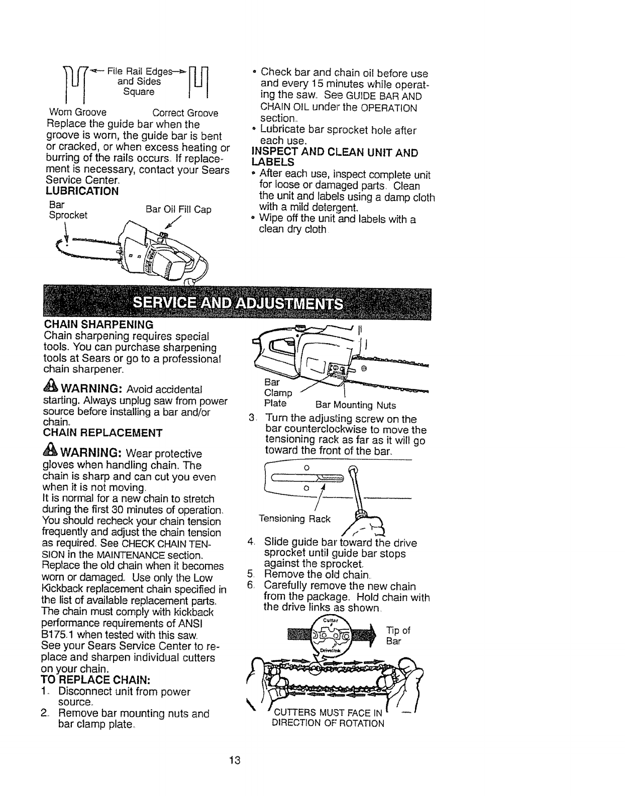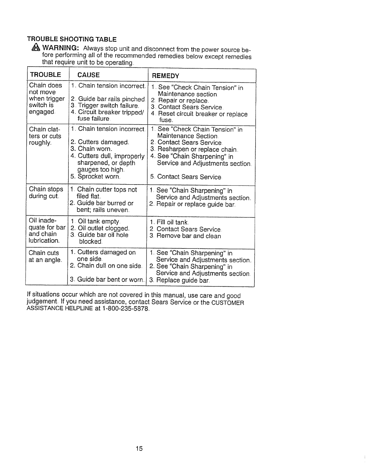 CHAIN SAW TO THE NEAREST SEARS SERVICE CENTER iN THE UNITED STATES,
