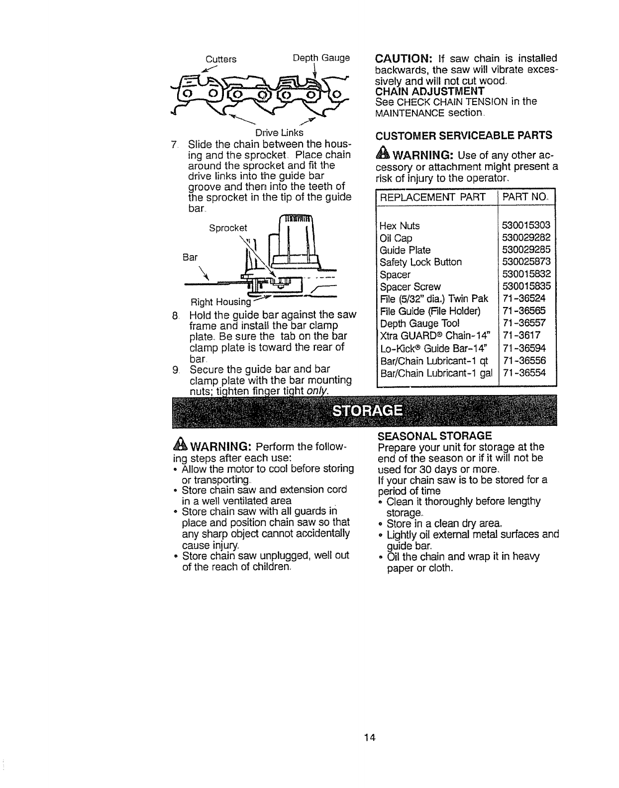 This warranty excludes the bar and chain, which are expendable parts and be-