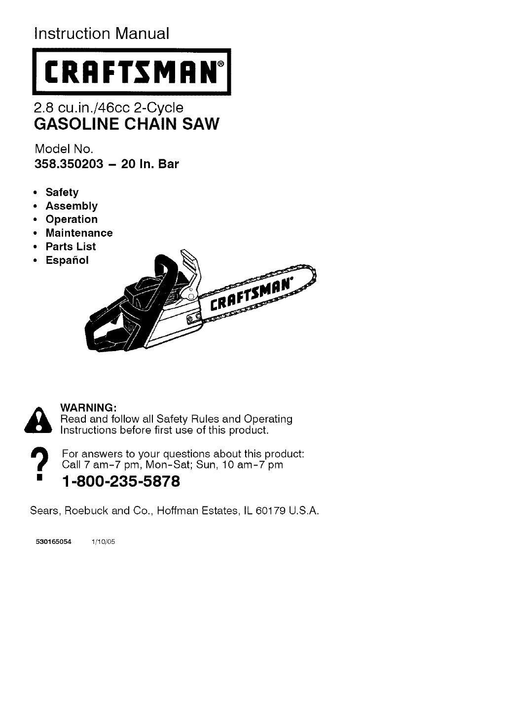User Manual: Craftsman 358350203 358350203 CRAFTSMAN CHAINSAW - Manuals and Guides View the owners manual for your CRAFTSMAN CHAINSAW #358350203. Home:Lawn & Garden Parts:Craftsman Parts:Craftsman CHAINSAW Manual